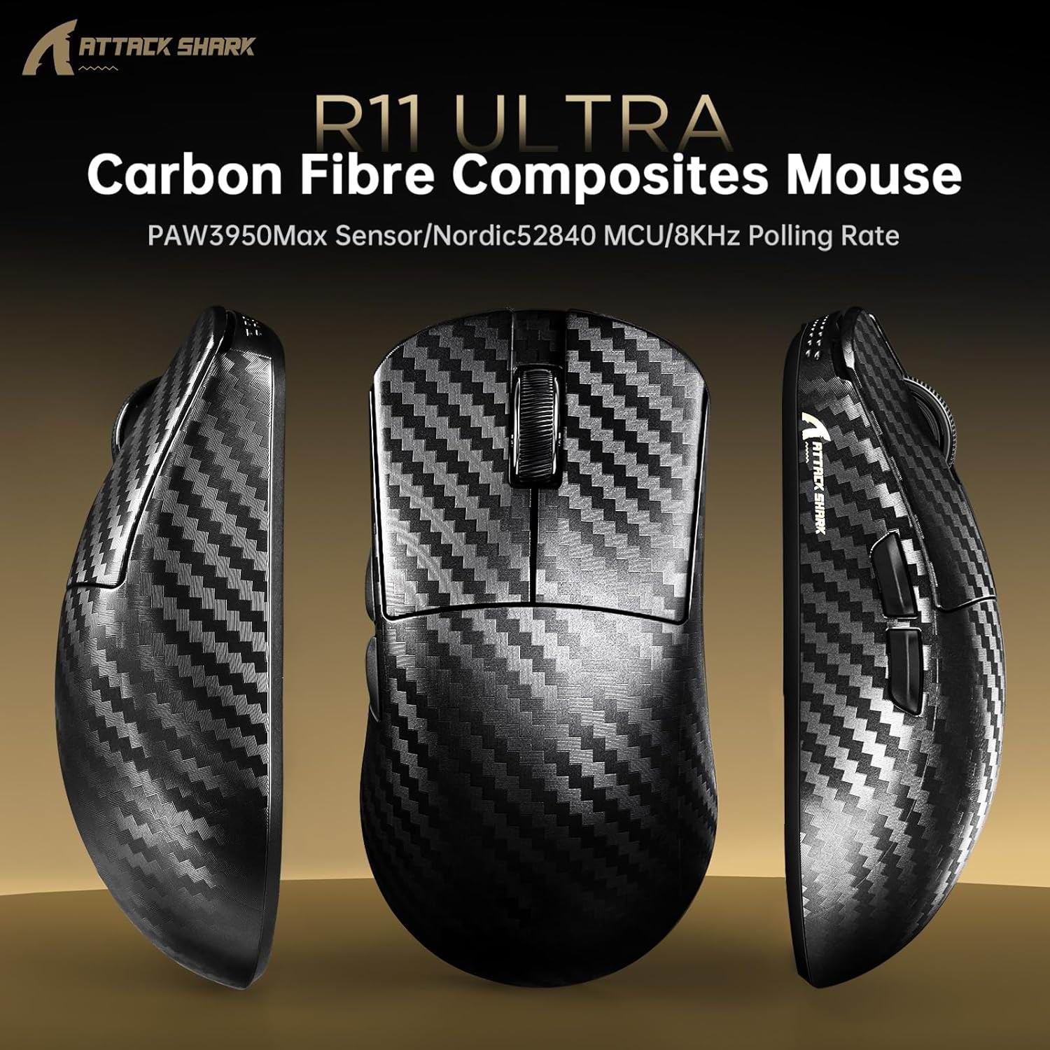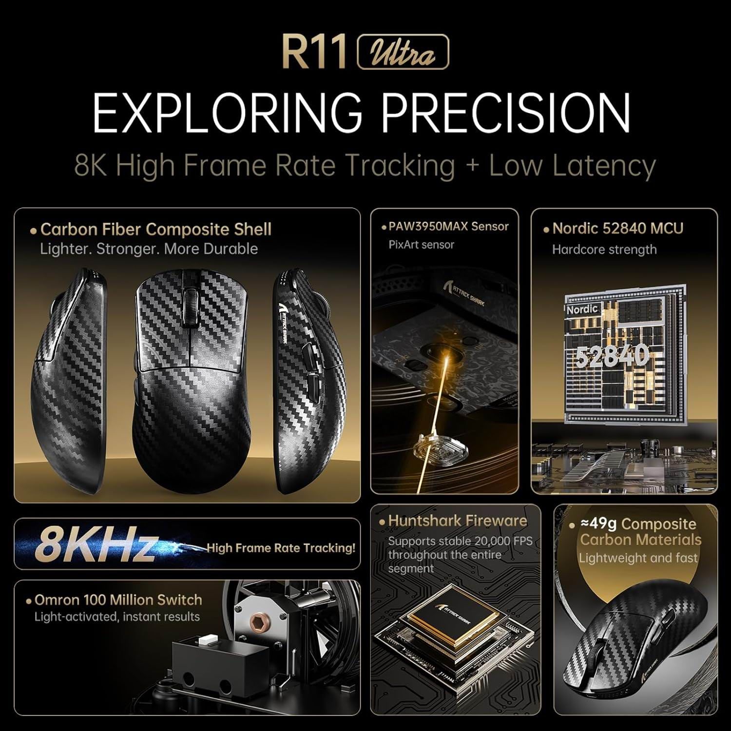 Бездротова миша ATTACK SHARK R11 ULTRA 42000 DPI, PAW3950 MAX, Carbon Shark, 8K,Чорна