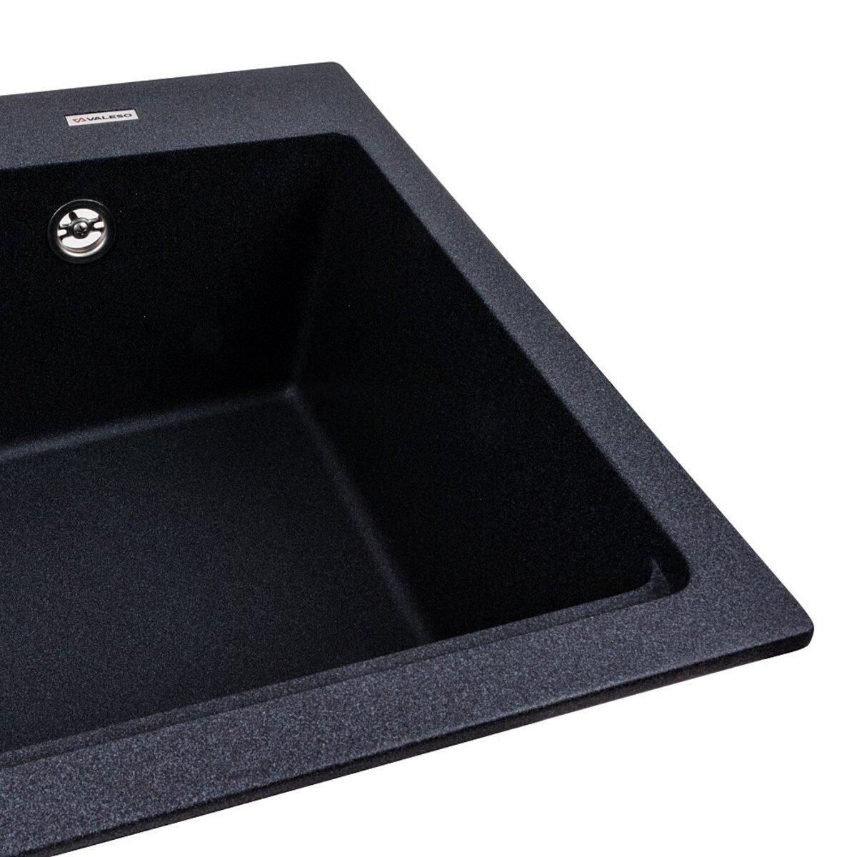 Гранітна мийка для кухні 7545 NIKA Карбон українського бренду VALESO - це стильна, врізна, прямокутна мийка, яка своїм виглядом чудово доповнить дизайн вашої кухні. Мийка на 80% складається з кварцу та на 20% з надзвичайно твердої акрилової смоли, завдяки чому невибаглива у догляді, а також має великий запас міцності.