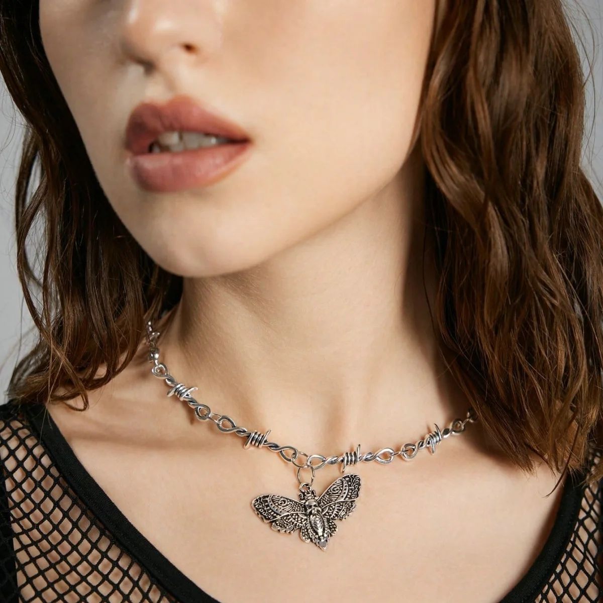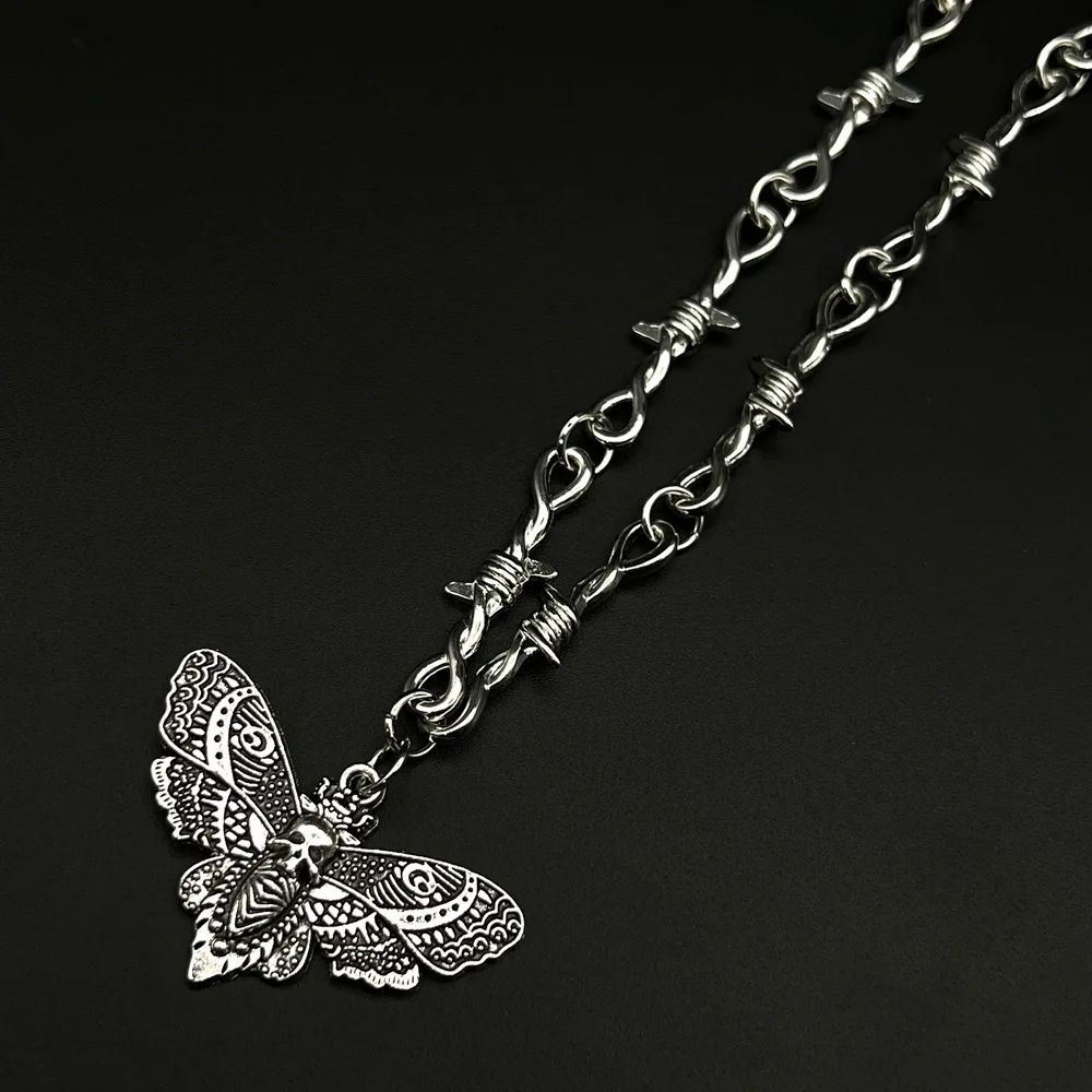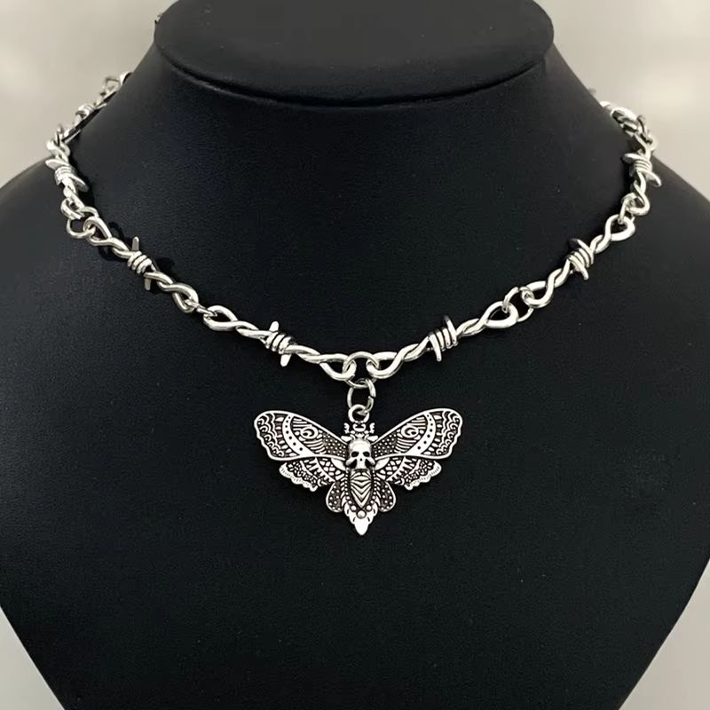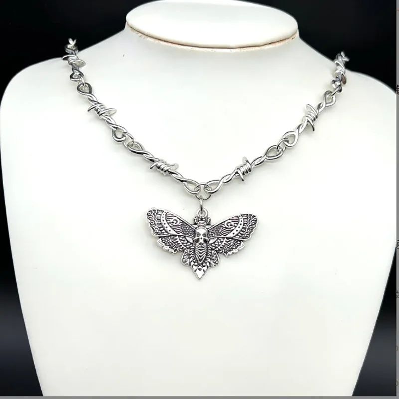 Підвіска Гот міль у вигляді молі череп і колючого дроту кулон кольє з черепом