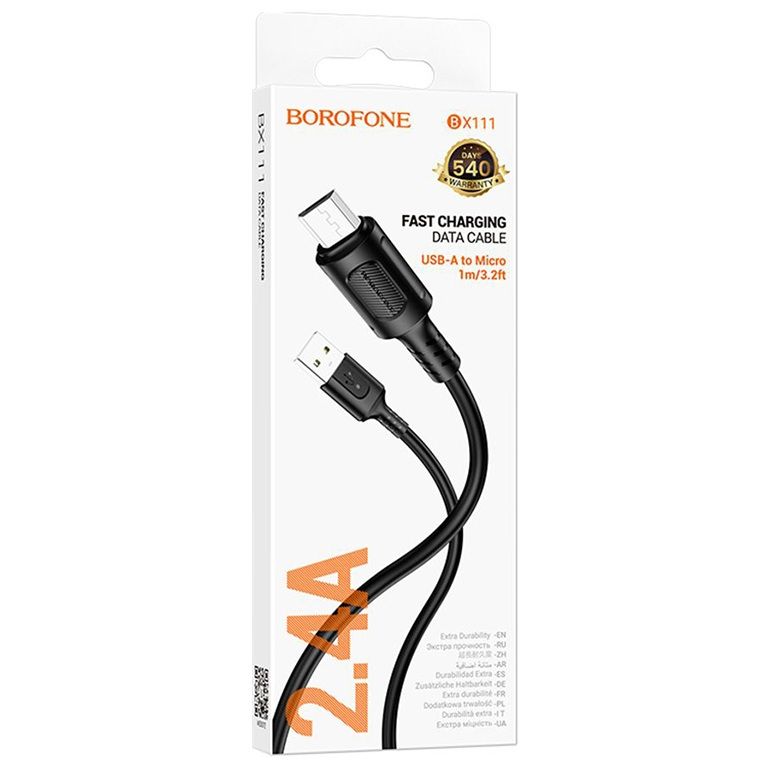 Кабель USB Borofone BX111, MicroUSB, 2.4A, 1m, Чорний