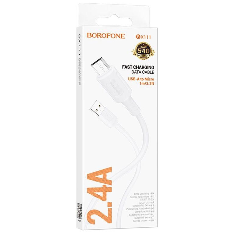 Кабель USB Borofone BX111, MicroUSB, 2.4A, 1m, Білий