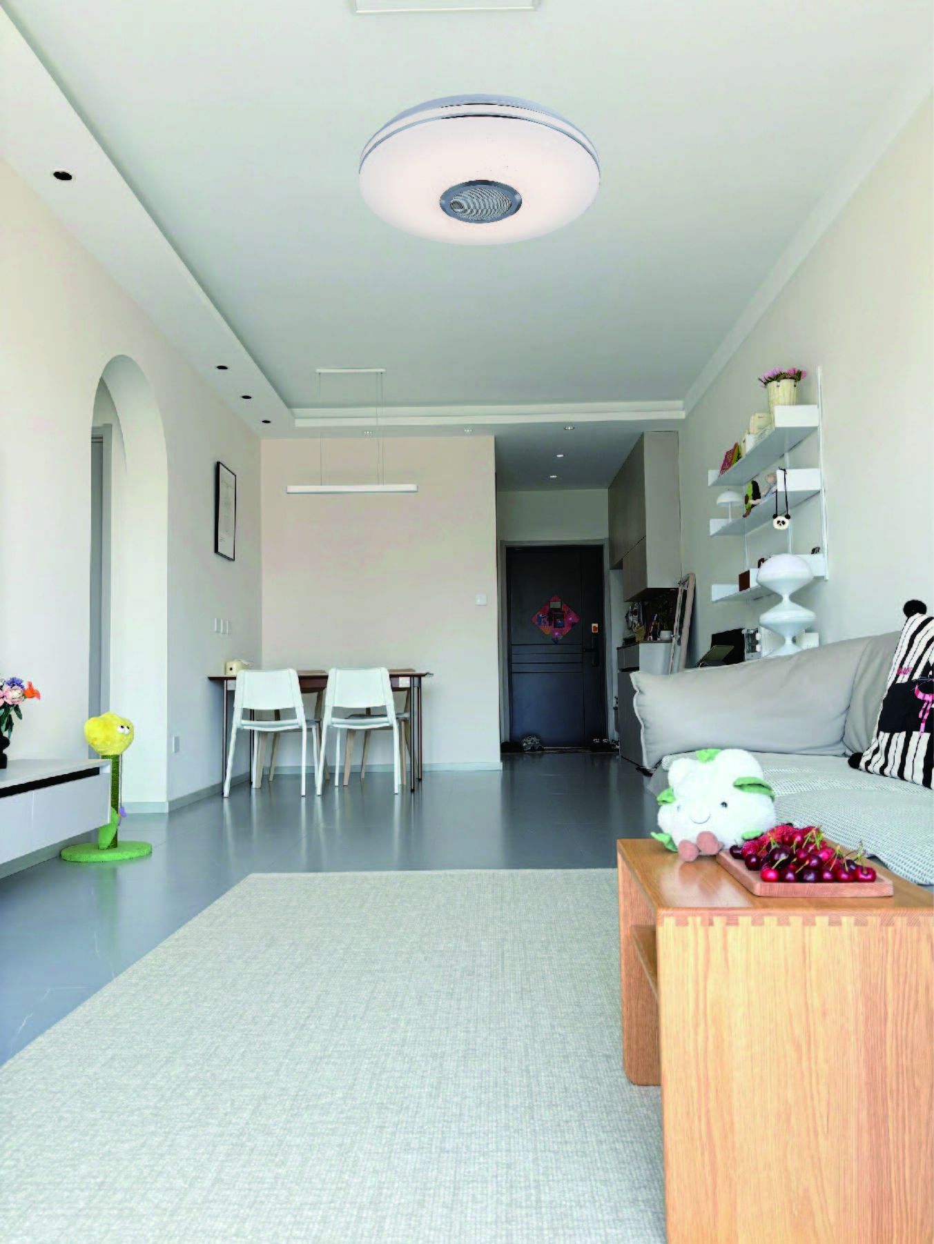 Керування здійснюється максимально зручно: за допомогою пульта дистанційного керування або через мобільний застосунок по Bluetooth. Ви можете регулювати колірну температуру від теплого до холодного світла (3000K-6500K), змінювати яскравість (функція затемнення) та транслювати улюблену музику безпосередньо через світильник.