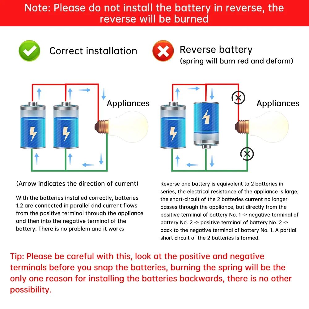 - Строго дотримуйтесь полярності при встановленні: пружина — до мінуса, мідна пластина — до плюса.
