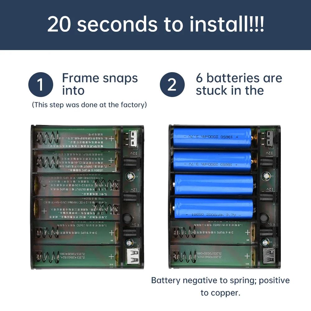 - Тип акумуляторів: 18650, 3.7V, з плоскою головкою