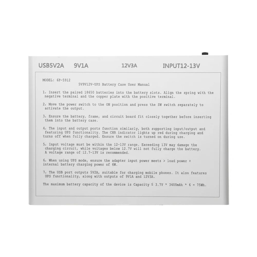 Ця модель розрахована на встановлення шести акумуляторів формату 18650 та забезпечує автоматичне перемикання в режим резервного живлення без ручного втручання. Завдяки вбудованій системі захисту та функції ДБЖ цей пристрій гарантує стабільну роботу підключеного обладнання.