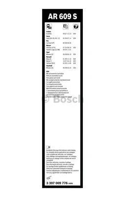 Щітка склоочисника 600/600 AEROTWIN AR609S, IVECO DAILY III, IVECO DAILY V, BOSCH (3397009776)