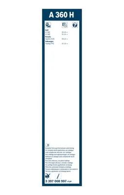 Щітка склоочисника задня 380мм, VOLKSWAGEN 7P6955427, AUDI 8W9955425, BOSCH (3397008997)