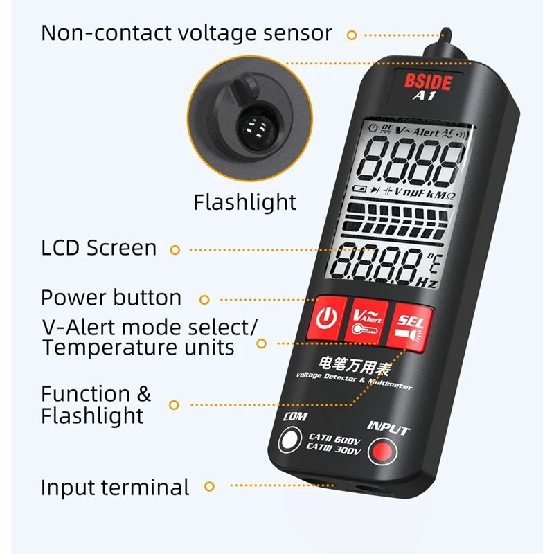 Багатофункціональний мультиметр + безконтактний індикатор напруги 2 в 1 BSIDE A1