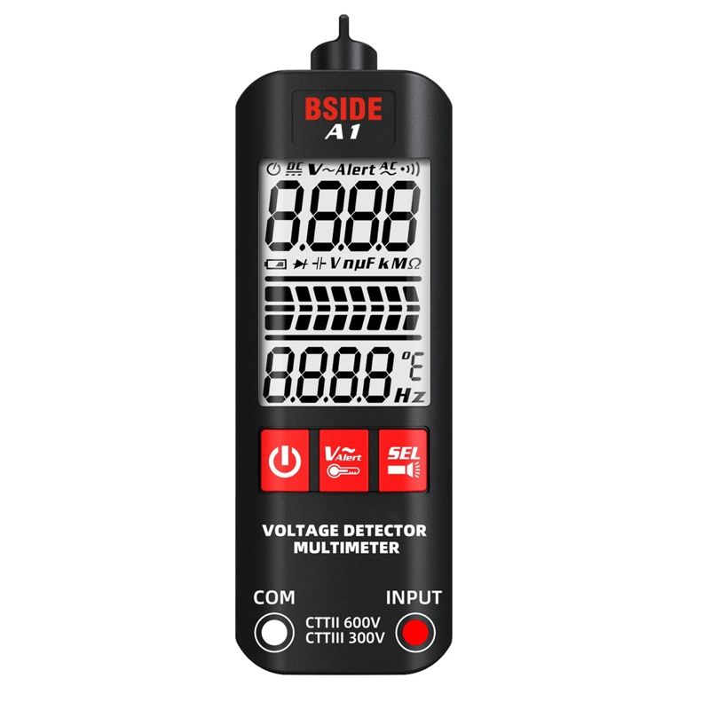 BSIDE A1 - це мініатюрний сучасний прилад з великим дисплеєм, що поєднує функції мультиметра і детектора напруги.