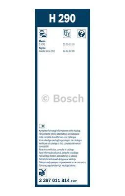 Щітка склоочисника 300 скла заднього H290, TOYOTA 852420F010, MAZDA C24767330, BOSCH (3397011814)