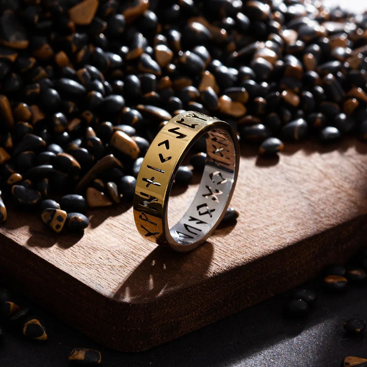 Перстень Одина из рунами викингов кольцо скандинавские руны символикой мужское 3 цвета