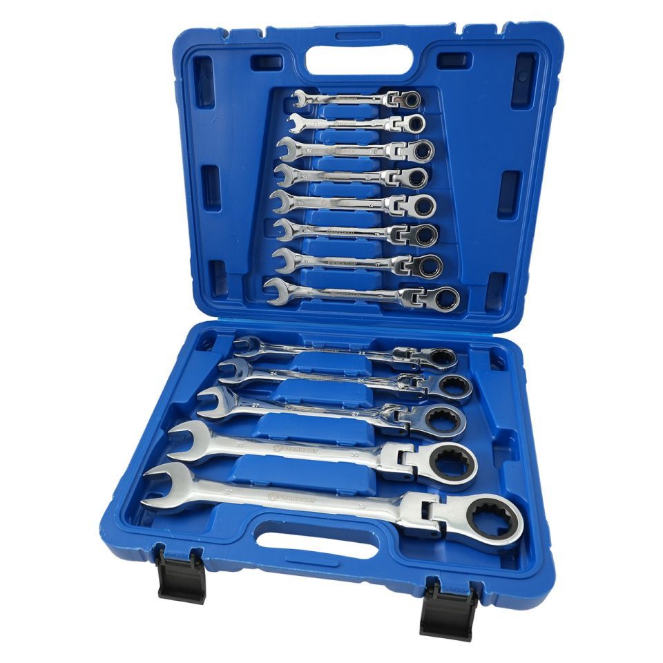 Набір комбінованих ключів з тріскачкою та шарніром СТАНДАРТ NFGW1301ST-C призначений для виконання ремонтних та монтажних робіт будь-якого рівня складності. Завдяки шарнірній головці та тріскачковому механізму, ключі забезпечують зручність, швидкість та ефективність роботи.