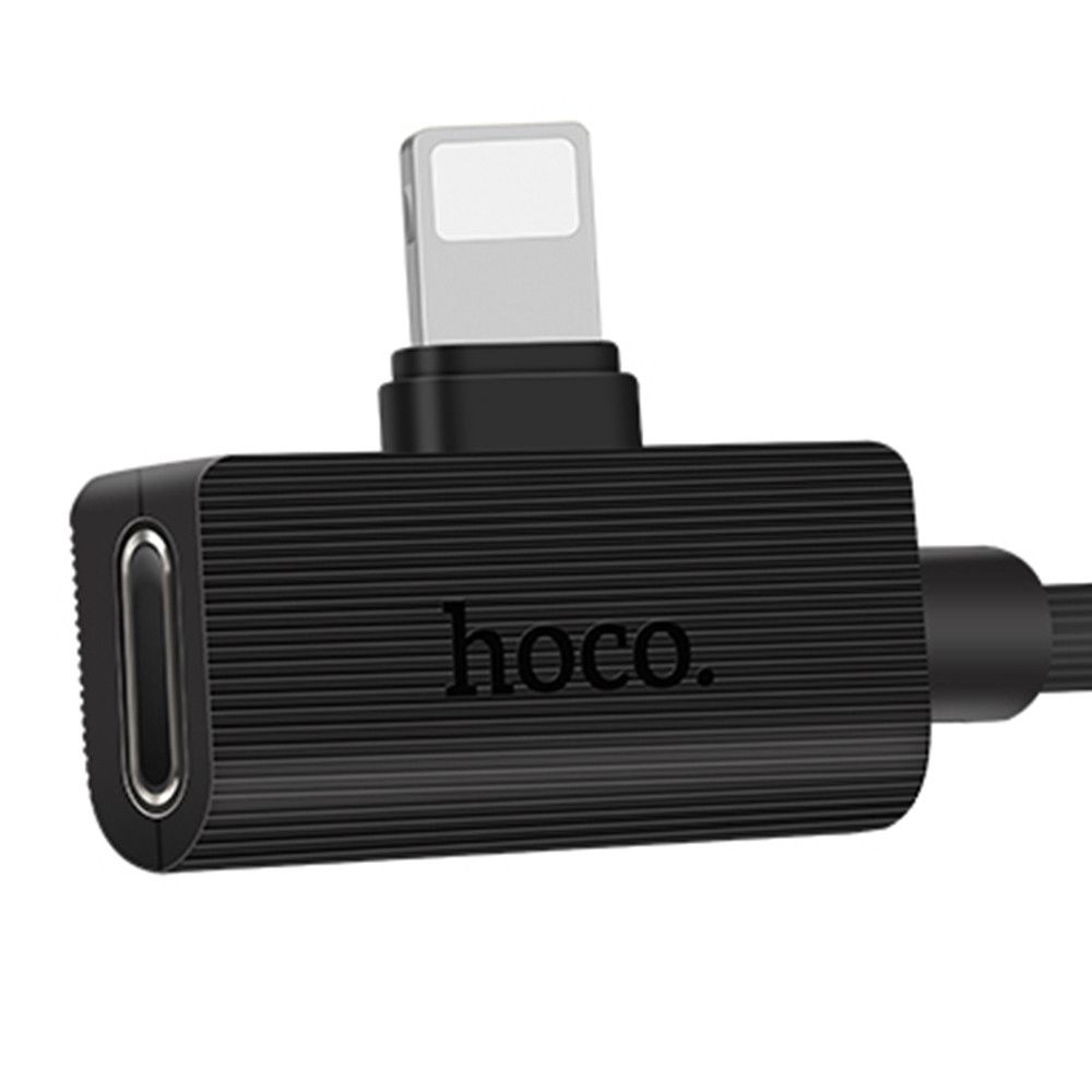 USB Кабель HOCO LS9 2in1 + перехідник USB - Lightning + Lightning Audio (1.2M) черный