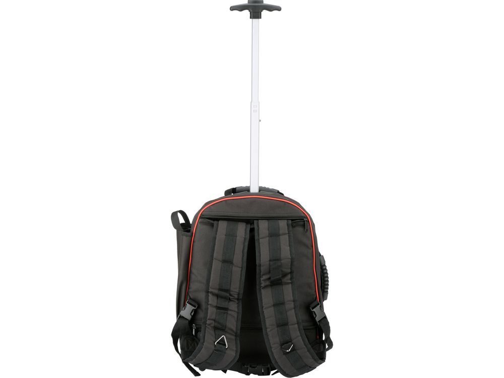 - телескопічна, висувна ручка дозволяє використовувати рюкзак як валізу на колесах.