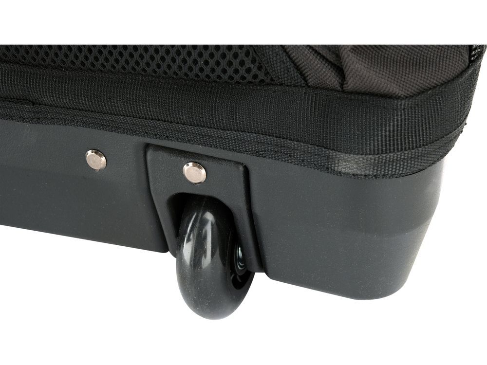 В основі використовуються два колеса і телескопічна висувна ручка зверху, що дозволяє швидко трансформувати рюкзак у зручний транспортний чемодан.