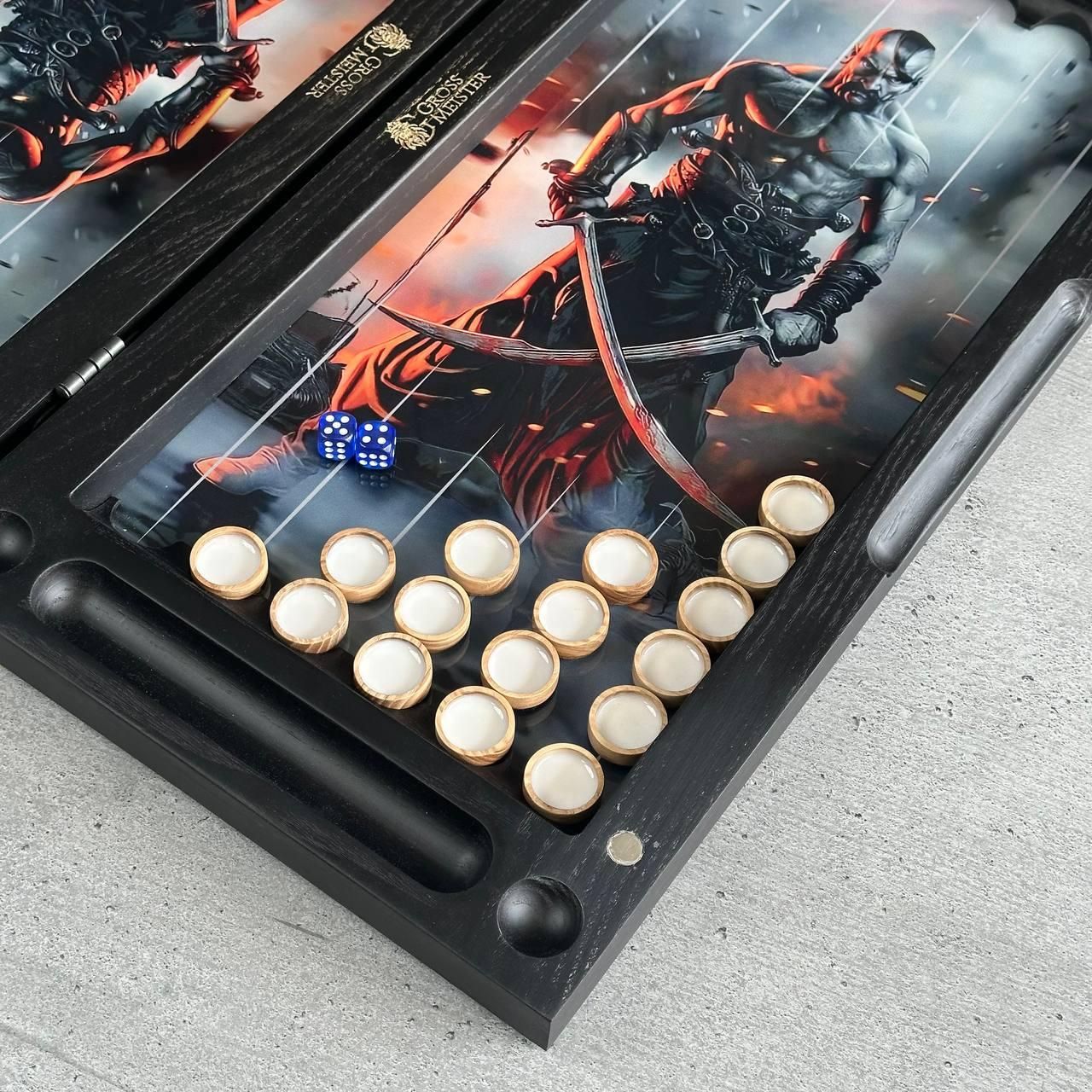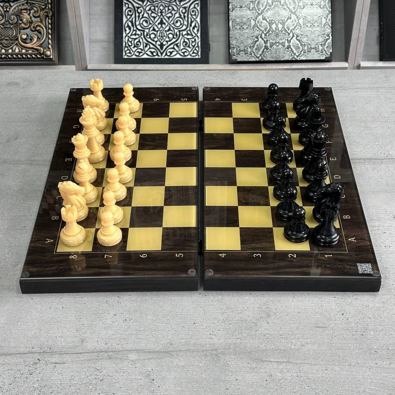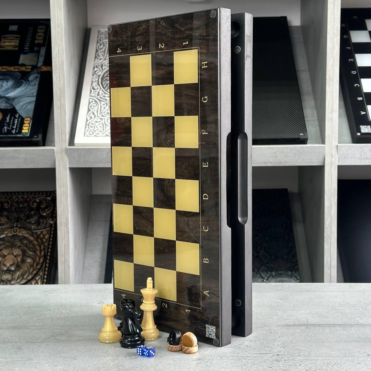 Шахи та нарди 2в1 з індивідуальним дизайном - ідеальний подарунок для справжніх цінителів Ігрове поле зі скла, каркас з дерева, можливість персоналізації Детальний опис 1 Шахи та нарди 2в1 — це елегантне поєднання двох класичних настільних ігор, які сподобаються як досвідченим гравцям, так і новачкам. Це стильне та функціональне рішення для будь-якої оселі або офісу. Ігрове поле виготовлене зі скла, що надає йому не лише естетичний вигляд, а й забезпечує довговічність та легкість у догляді. Зовні розмітка для шахів, а всередині — зображення козака, яке додає унікальності та національного колориту. Розмір поля 50х23 см робить гру зручнішою та комфортнішою для гри вдома або в офісі. Каркас з дерева додає міцності та елегантності, а фігури для шахів виготовлені з епоксидної смоли у кольорі, що відповідає кольору шахового поля. Фішки для нард виконані з дерева та дизайнерської смоли, що створює гармонійний вигляд. Особливості товару Ігрове поле 2в1: поєднує шахи та нарди, що робить гру ще цікавішою. Матеріал поля: скло, яке легко чистити і воно не втрачає вигляд з часом. Індивідуальний дизайн: можливість нанесення індивідуального дизайну за допомогою УФ-печатки (фото, колір, надпис, ініціали). Каркас з дерева: міцний і стійкий, додає вишуканості. Фігури з епоксидної смоли: шахові фігури підібрані в кольорах, що відповідають дизайну поля. Фішки з дерева та смоли: стильний дизайн для гри в нарди. Розмір ідеальний для комфортної гри: 50х23 см — не надто великий, але достатньо просторий для зручності. Це чудова модель для тих, хто цінує не лише класичні ігри, але й хоче мати унікальний виріб, який можна персоналізувати. Завдяки індивідуальному дизайну ви можете нанести на поле своє ім’я, фотографію або важливу дату. Такий аксесуар стане чудовим подарунком на будь-яке свято чи особливу подію. Ігрове поле виготовлене зі скла, що додає не тільки візуальної краси, але й практичності. Легке очищення та стійкість до механічних пошкоджень забезпечують довговічність використання. Каркас поля виготовлений з високоякісного дерева, яке надає виробу елегантності та витонченості. Фігури з епоксидної смоли у кольорі, що відповідає шаховому полю, створюють чудову гармонію і забезпечують комфорт під час гри. Технічні характеристики Розмір ігрового поля: 50х23 см Матеріал поля: скло Каркас: дерево Фігури шахові: епоксидна смола, колір відповідний шаховому полю Фішки нард: дерево і дизайнерська смола Можливість індивідуального дизайну: нанесення за допомогою УФ-печати (фото, текст, ініціали) Стиль: класичний з національними елементами (зображення козака) Подаруйте собі або своїм близьким елегантний набір для шахів та нард, який додає вишуканості та унікальності. Замовте цей розкішний набір вже зараз і отримайте можливість персоналізувати його на ваш смак! Не чекайте — натискайте "Купити" і зробіть гру ще цікавішою! Залишилися питання? Телефонуйте нам. Наші менеджери завжди на зв'язку і готові відповісти на всі ваші запитання Адреса: Україна м. Стрий, вул. Заньковецької, буд. 2, другий поверх