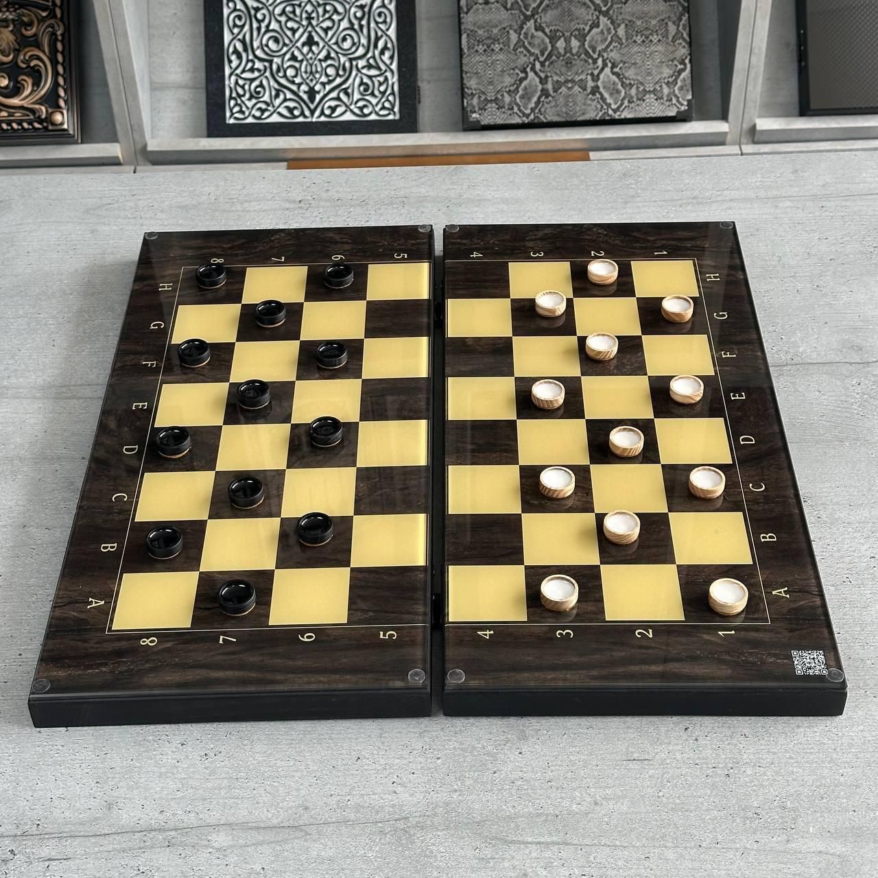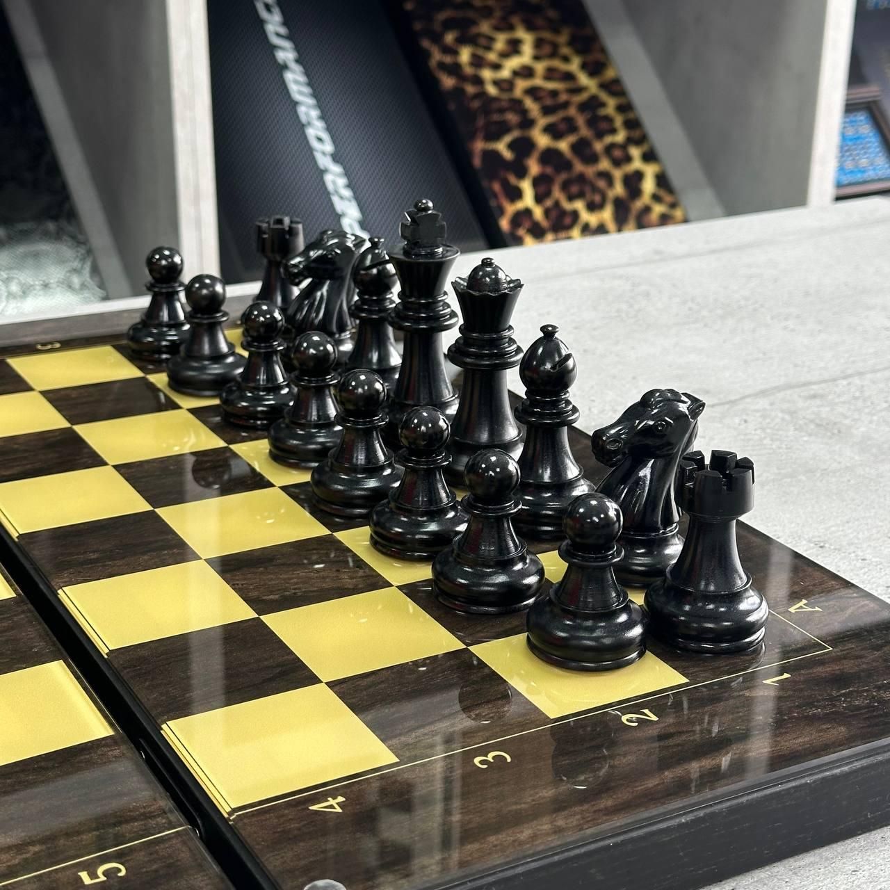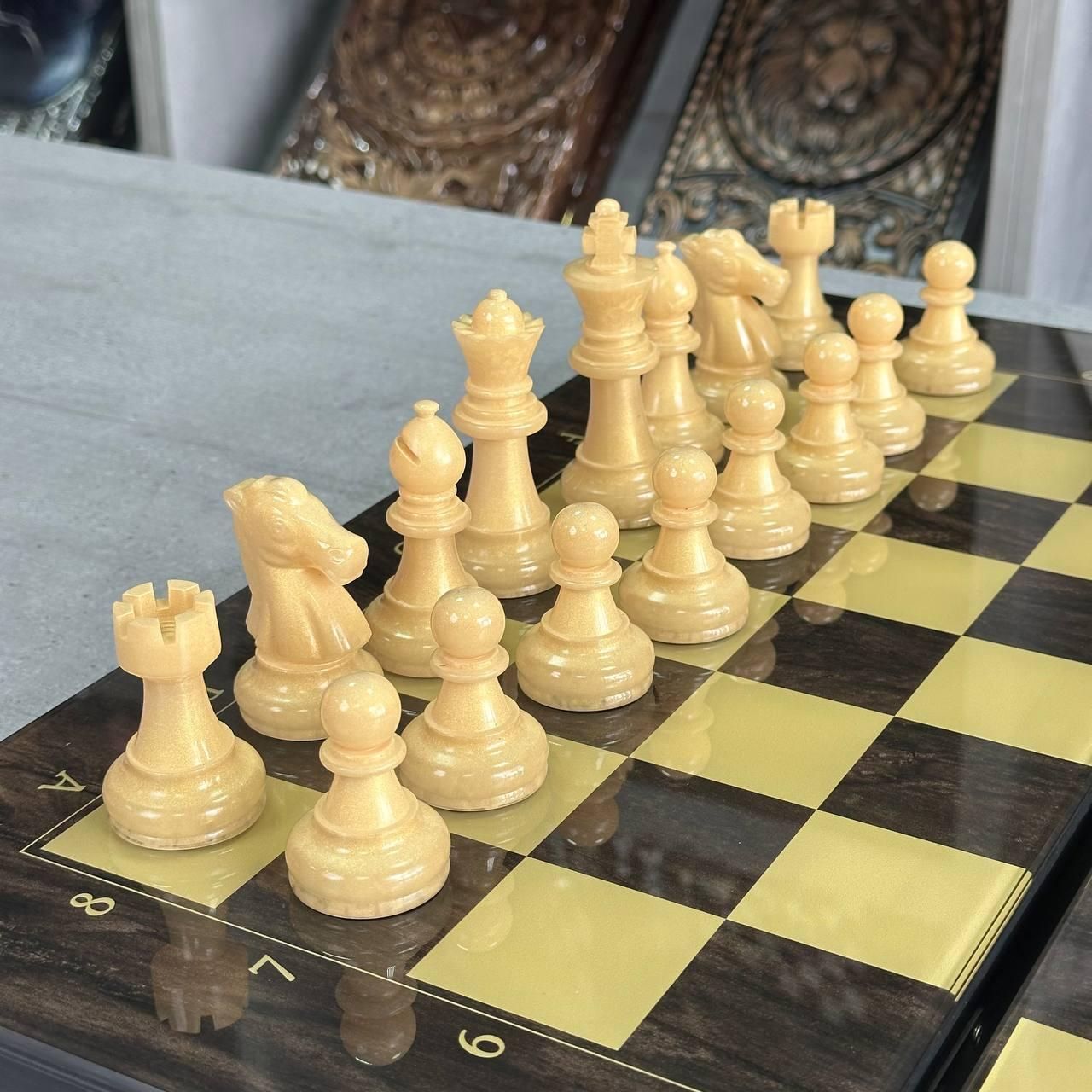 Шахи та нарди 2в1 з індивідуальним дизайном - ідеальний подарунок для справжніх цінителів Ігрове поле зі скла, каркас з дерева, можливість персоналізації Детальний опис 1 Шахи та нарди 2в1 — це елегантне поєднання двох класичних настільних ігор, які сподобаються як досвідченим гравцям, так і новачкам. Це стильне та функціональне рішення для будь-якої оселі або офісу. Ігрове поле виготовлене зі скла, що надає йому не лише естетичний вигляд, а й забезпечує довговічність та легкість у догляді. Зовні розмітка для шахів, а всередині — зображення козака, яке додає унікальності та національного колориту. Розмір поля 50х23 см робить гру зручнішою та комфортнішою для гри вдома або в офісі. Каркас з дерева додає міцності та елегантності, а фігури для шахів виготовлені з епоксидної смоли у кольорі, що відповідає кольору шахового поля. Фішки для нард виконані з дерева та дизайнерської смоли, що створює гармонійний вигляд. Особливості товару Ігрове поле 2в1: поєднує шахи та нарди, що робить гру ще цікавішою. Матеріал поля: скло, яке легко чистити і воно не втрачає вигляд з часом. Індивідуальний дизайн: можливість нанесення індивідуального дизайну за допомогою УФ-печатки (фото, колір, надпис, ініціали). Каркас з дерева: міцний і стійкий, додає вишуканості. Фігури з епоксидної смоли: шахові фігури підібрані в кольорах, що відповідають дизайну поля. Фішки з дерева та смоли: стильний дизайн для гри в нарди. Розмір ідеальний для комфортної гри: 50х23 см — не надто великий, але достатньо просторий для зручності. Це чудова модель для тих, хто цінує не лише класичні ігри, але й хоче мати унікальний виріб, який можна персоналізувати. Завдяки індивідуальному дизайну ви можете нанести на поле своє ім’я, фотографію або важливу дату. Такий аксесуар стане чудовим подарунком на будь-яке свято чи особливу подію. Ігрове поле виготовлене зі скла, що додає не тільки візуальної краси, але й практичності. Легке очищення та стійкість до механічних пошкоджень забезпечують довговічність використання. Каркас поля виготовлений з високоякісного дерева, яке надає виробу елегантності та витонченості. Фігури з епоксидної смоли у кольорі, що відповідає шаховому полю, створюють чудову гармонію і забезпечують комфорт під час гри. Технічні характеристики Розмір ігрового поля: 50х23 см Матеріал поля: скло Каркас: дерево Фігури шахові: епоксидна смола, колір відповідний шаховому полю Фішки нард: дерево і дизайнерська смола Можливість індивідуального дизайну: нанесення за допомогою УФ-печати (фото, текст, ініціали) Стиль: класичний з національними елементами (зображення козака) Подаруйте собі або своїм близьким елегантний набір для шахів та нард, який додає вишуканості та унікальності. Замовте цей розкішний набір вже зараз і отримайте можливість персоналізувати його на ваш смак! Не чекайте — натискайте "Купити" і зробіть гру ще цікавішою! Залишилися питання? Телефонуйте нам. Наші менеджери завжди на зв'язку і готові відповісти на всі ваші запитання Адреса: Україна м. Стрий, вул. Заньковецької, буд. 2, другий поверх