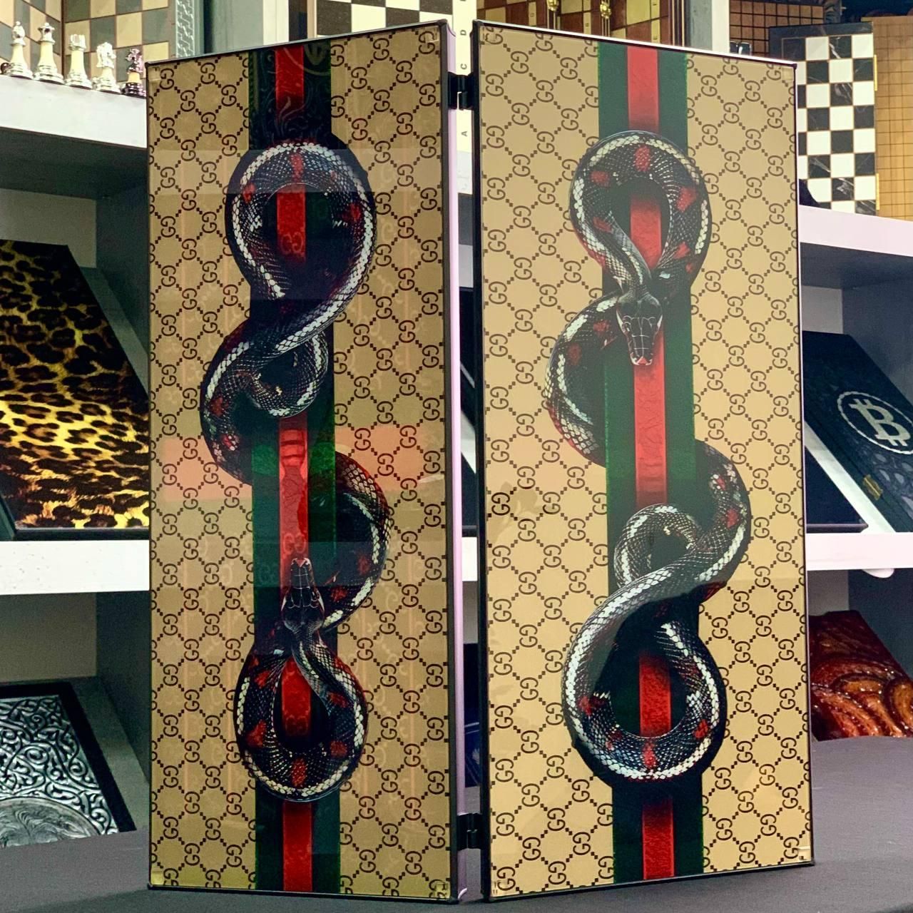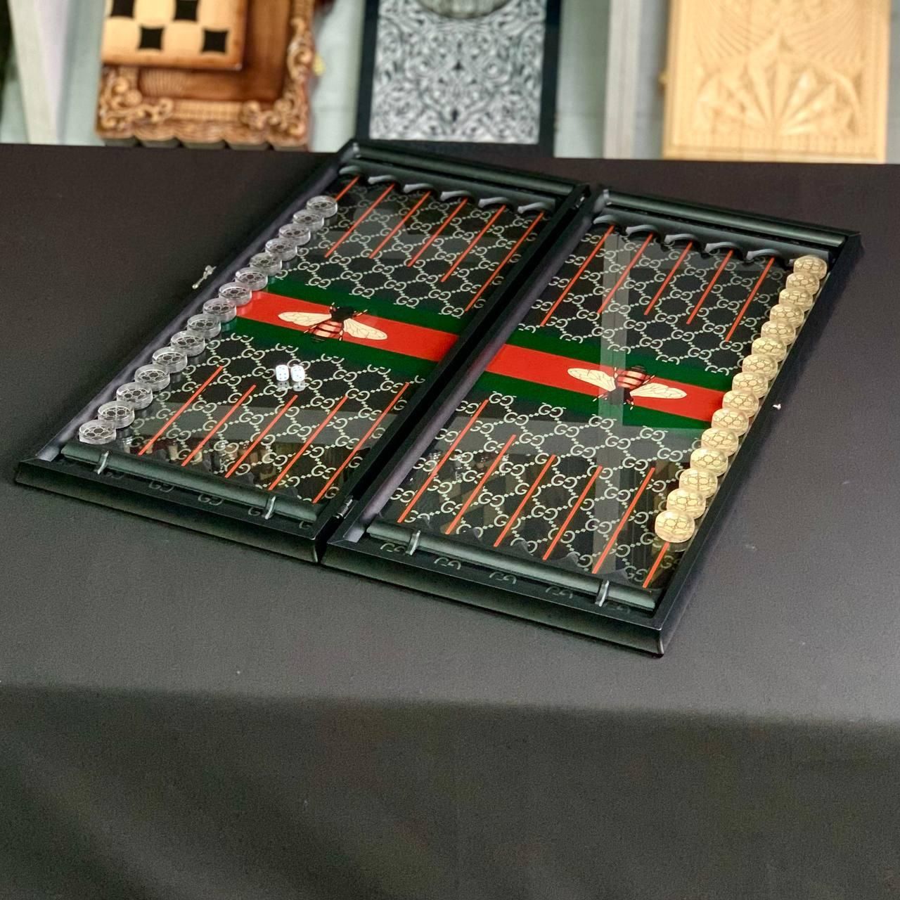 Нарди Gucci — ексклюзивні скляні нарди преміум-класу Нарди Gucci — це поєднання класичної настільної гри та розкішного дизайнерського стилю. Завдяки унікальному оформленню з логотипом Gucci вони стануть не лише захопливою грою, але й престижним подарунком для колекціонерів, бізнесменів та справжніх поціновувачів ексклюзиву. Виконані з міцного скла та алюмінієвого композиту, нарди відзначаються довговічністю та вишуканим виглядом. Зовнішня частина прикрашена УФ-друком, а внутрішнє ігрове поле зі скла має стильний малюнок, що підкреслює преміальний характер гри. Особливості нард Gucci Ексклюзивний дизайн у стилі Gucci Можливість гри у короткі та довгі нарди Зовнішнє оформлення: алюмінієвий композит з малюнком УФ-друком Внутрішнє оформлення: скло з якісним друком Фішки з епоксидної смоли або латуні (срібні та золоті) Ідеально підходять як подарунок для керівників, друзів, колекціонерів Детальний опис У складеному вигляді набір має розмір 61×27×5 см, що зручно для зберігання та транспортування. У розкладеному вигляді ігрове поле сягає 61×54×2,5 см, забезпечуючи комфортну гру. Фішки діаметром 27 мм виготовлені з епоксидної смоли або латуні (VIP-версія: золотий та срібний колір). У комплект входять також пластикові кубики розміром 9 мм. Це чудовий вибір для тих, хто хоче купити нарди в Україні, підкреслити свій статус та подарувати незабутні емоції. Технічні характеристики Гра: нарди (короткі та довгі) Зовнішнє оформлення: алюмінієвий композит з УФ-друком Внутрішнє оформлення: скло з УФ-друком Розміри (складені): 61×27×5 см Розміри (розкладені): 61×54×2,5 см Матеріали: скло, алюмінієвий композит Колір: чорний, мультиколор Фішки: епоксидна смола або латунь, діаметр 27 мм Кубики: пластик, 9 мм Комплектація: нарди (1 шт), фішки (15+15), кубики (2 шт) ???? Замовте нарди Gucci прямо зараз — це найкращий подарунок для справжніх цінителів стилю та класики! Ви можете персоналізувати нарди, замовивши гравірування на ігровому полі або змінити малюнок. Це відмінний спосіб зробити нарди унікальними та неповторними (для уточнення деталей звяжіться з нами у зручний для Вас спосіб ) Не зупиняйтеся на досягнутому! На нашому сайті представлені й , які зможуть задовольнити будь-які ваші смаки та вподобання. : Це класична гра, яка протягом століть розважає людей всіх віків. : Інтелектуальна гра, яка кине виклик вашому розуму. Аксесуари для настільних ігор: , , та багато іншого, що зробить ваші ігри ще більш комфортними та приємними. Завітайте до нашого і знайдіть ту гру, яка стане вашим новим улюбленим дозвіллям! Залишилися питання? Телефонуйте нам. Наші менеджери завжди на зв'язку і готові відповісти на всі ваші запитання Адреса: Україна м. Стрий, вул. Заньковецької, буд. 2, другий поверх