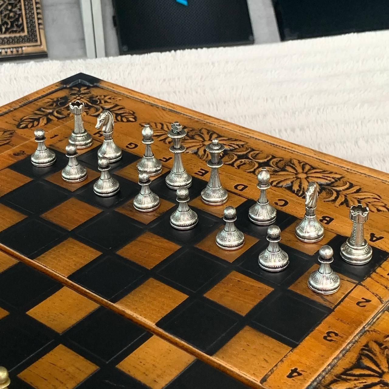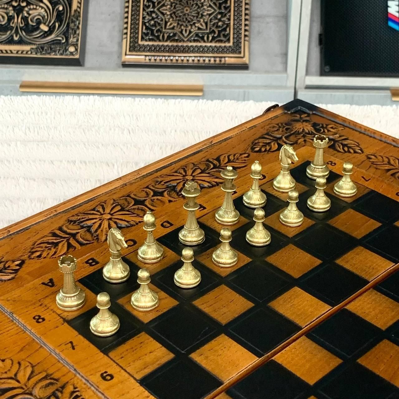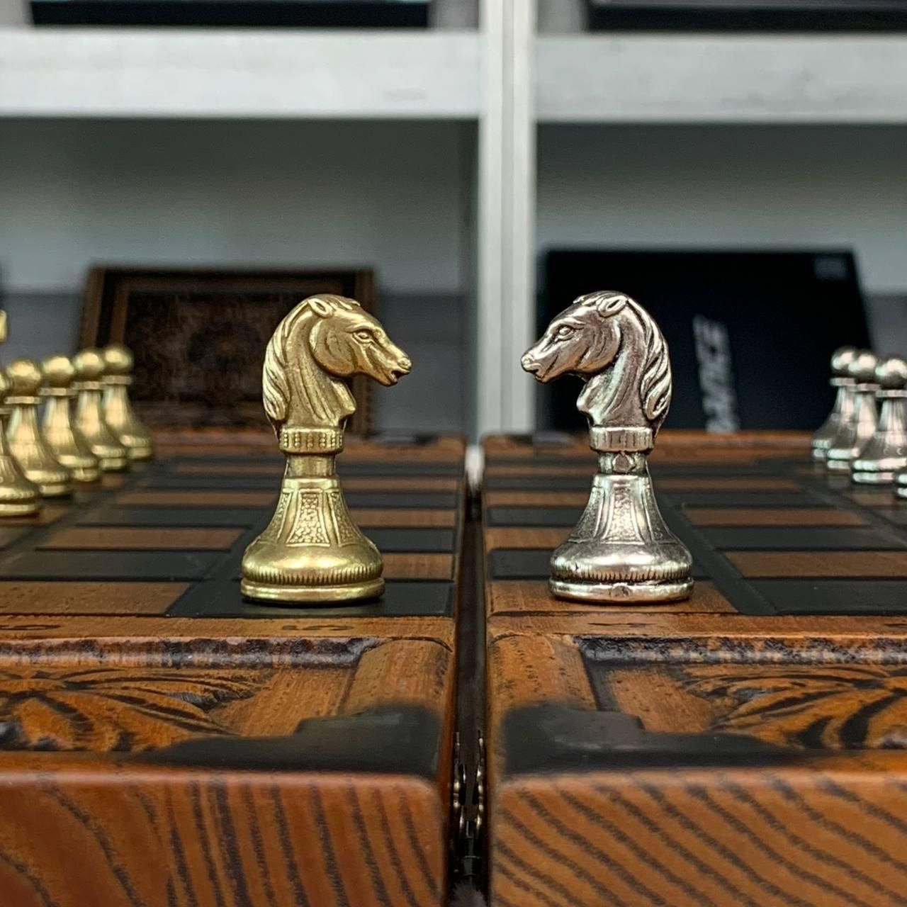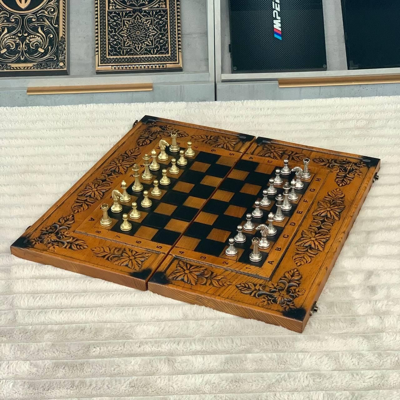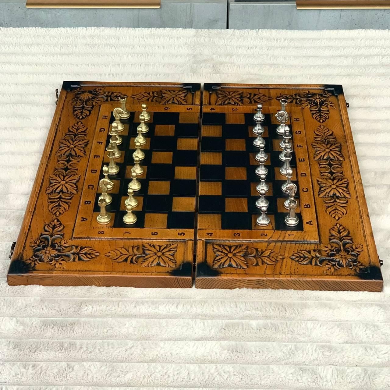 Шахи з дерев'яними та металевими фігурами 46×23×4 см