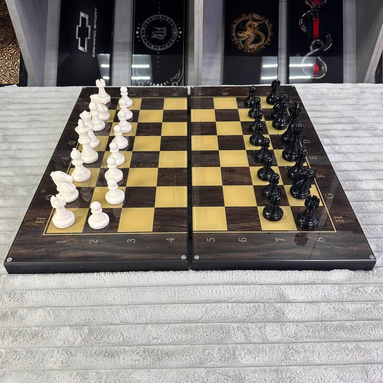 Шахи з дерев'яним каркасом та скляним ігровим полем – стильний подарунок для інтелектуалів Шахи – це не просто гра, а поєднання стратегії, логіки та естетики. Представляємо ексклюзивний шаховий набір з дерев'яним каркасом і скляним ігровим полем, який стане ідеальним подарунком для поціновувачів настільних ігор. Завдяки можливості персоналізації – зміни кольору, нанесення написів або малюнків – ви можете створити унікальний набір, що підкреслить індивідуальність власника. Особливості шахового набору ✔ Елегантний дизайн – поєднання натурального дерева та скла створює розкішний вигляд ✔ Фігури з епоксидної смоли – можливість виготовлення у кольорі шахового поля ✔ Персоналізація – нанесення гравіювання, написів або малюнків ✔ Висока якість матеріалів – довговічність та стійкість до пошкоджень ✔ Оптимальні розміри – комфортні для гри та зберігання Детальний опис Цей набір шахів – це чудове поєднання класичного стилю та сучасних матеріалів. Каркас виготовлений з натурального дерева, що додає набору вишуканості та міцності. Ігрове поле зі скла надає елегантності та робить процес гри ще приємнішим. Фігури з епоксидної смоли мають детальне опрацювання, а їх розміри забезпечують зручність у грі. Набір чудово підійде як для домашнього використання, так і для подарунка шаховим ентузіастам або колекціонерам. Технічні характеристики Матеріал каркасу: дерево Матеріал ігрового поля: скло Матеріал фігур: епоксидна смола (можливе виконання у кольорі шахового поля) Розмір шахівниці: 64×30 см Розмір фігур: Король – 99 мм Пішак – 48 мм Діаметр фігур – 37 мм Придбайте вже сьогодні! Подаруйте собі або близьким унікальний шаховий набір, який стане не лише чудовою розвагою, а й елегантним аксесуаром! Оформлюйте замовлення зараз і отримайте швидку доставку по всій Україні. Залишилися питання? Телефонуйте нам. Наші менеджери завжди на зв'язку і готові відповісти на всі ваші запитання Адреса: Україна м. Стрий, вул. Заньковецької, буд. 2, другий поверх
