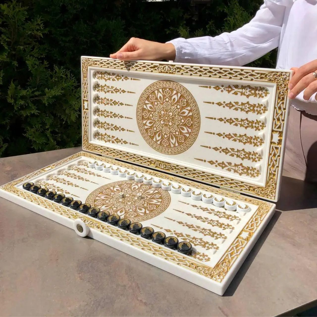 Нарди з білого акрилового каменю "Чорний вовк": подарунок, який підкорить серця, 58×28×5 см, арт. 190612 Ці нарди з акрилового каменю поєднують в собі мистецтво та функціональність, стаючи ідеальним подарунком та прикрасою будь-якого інтер’єру. Ви можете обрати камінь білого або чорного кольору, що підкреслить ваш стиль і статус. Грайте у довгі або короткі нарди на просторому ігровому полі, яке можна персоналізувати — вибрати класичний орнамент або створити власний дизайн на замовлення. Особливості та технічні характеристики Матеріал: акриловий камінь, доступний у білому або чорному варіанті () Оформлення: витончене різьблення з класичним або індивідуальним орнаментом Декор: антикварна фарба золота, срібна або за вашим бажанням Розмір: 58х28х5 см Вага: оптимальна для комфортної гри та зручного транспортування Ігрове поле: просторе та зручне для гри у довгі й короткі нарди Фішки та кубики: виготовлені з акрилового каменю, що підкреслює цілісність дизайну Комплектація: набір включає нарди, 15 світлих та 15 темних фішок, 2 кубики Можливість повної персоналізації — створення унікального дизайну під замовлення Нарди з акрилового каменю — це поєднання вишуканої естетики і високої якості. Акриловий камінь, білого або чорного кольору, надає виробу благородного вигляду, а антикварне фарбування золотом або сріблом робить дизайн особливим та елегантним. Завдяки різьбленню по камню, орнамент може бути як класичним, так і виконаним за індивідуальним замовленням. Це робить кожен набір унікальним і неповторним. Такий комплект нард стане відмінним подарунком, а також оригінальним доповненням інтер’єру будинку, офісу або ресторану. Обирайте і замовляйте нарди з акрилового каменю з унікальним різьбленням прямо зараз! Створіть свій персональний дизайн або оберіть класичний орнамент. ???? Телефонуйте: ???? Оперативна доставка по Україні та за кордон ???? Зручна оплата онлайн або при отриманні Залишилися питання? Телефонуйте нам. Наші менеджери завжди на зв'язку і готові відповісти на всі ваші запитання Адреса: Україна м. Стрий, вул. Заньковецької, буд. 2, другий поверх