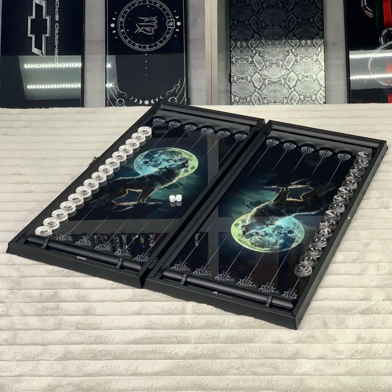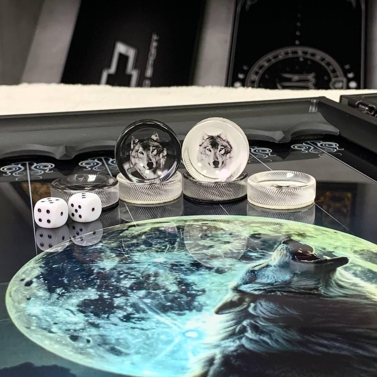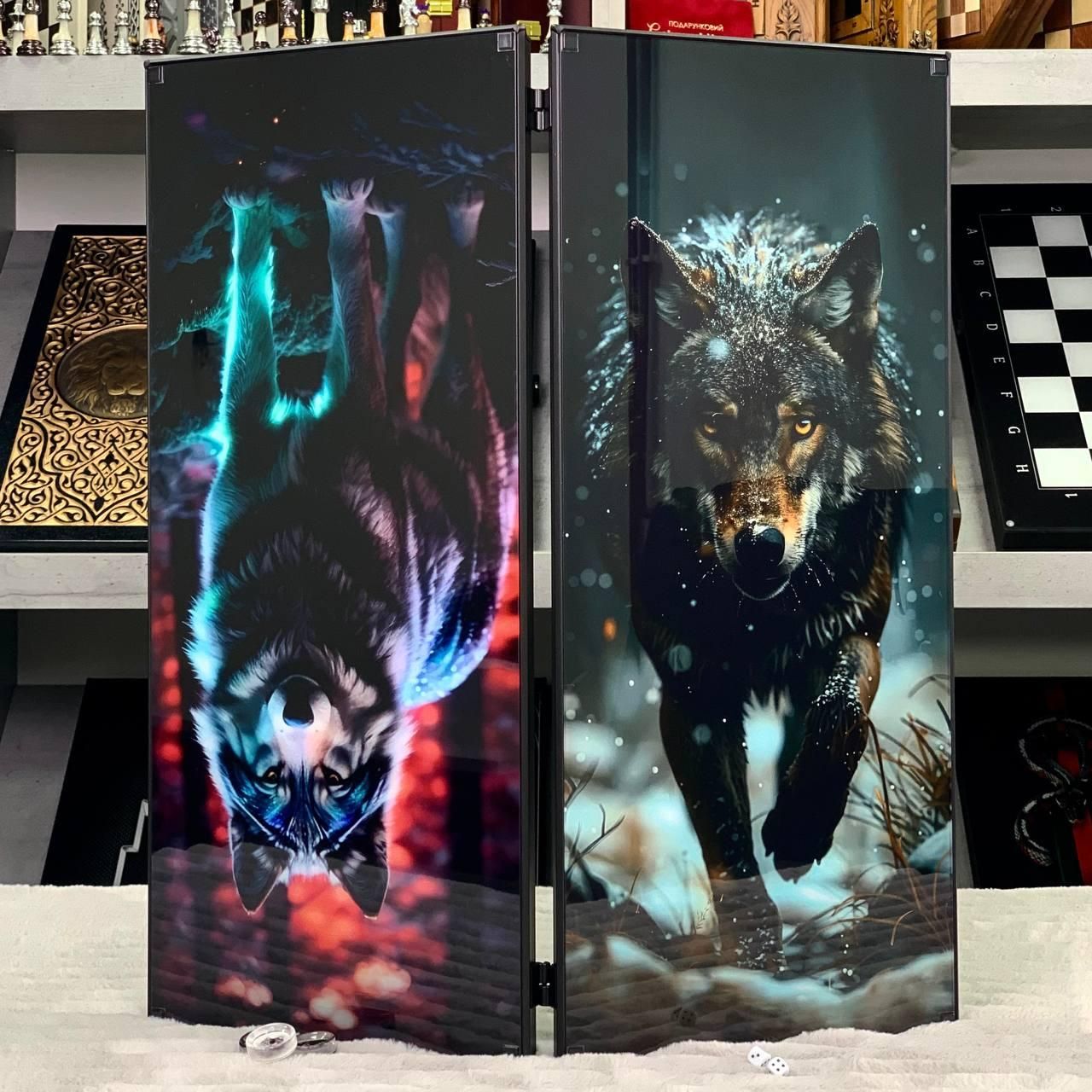 Нарди зі скла в алюмінієвому корпусі Вовк 61×27×5см