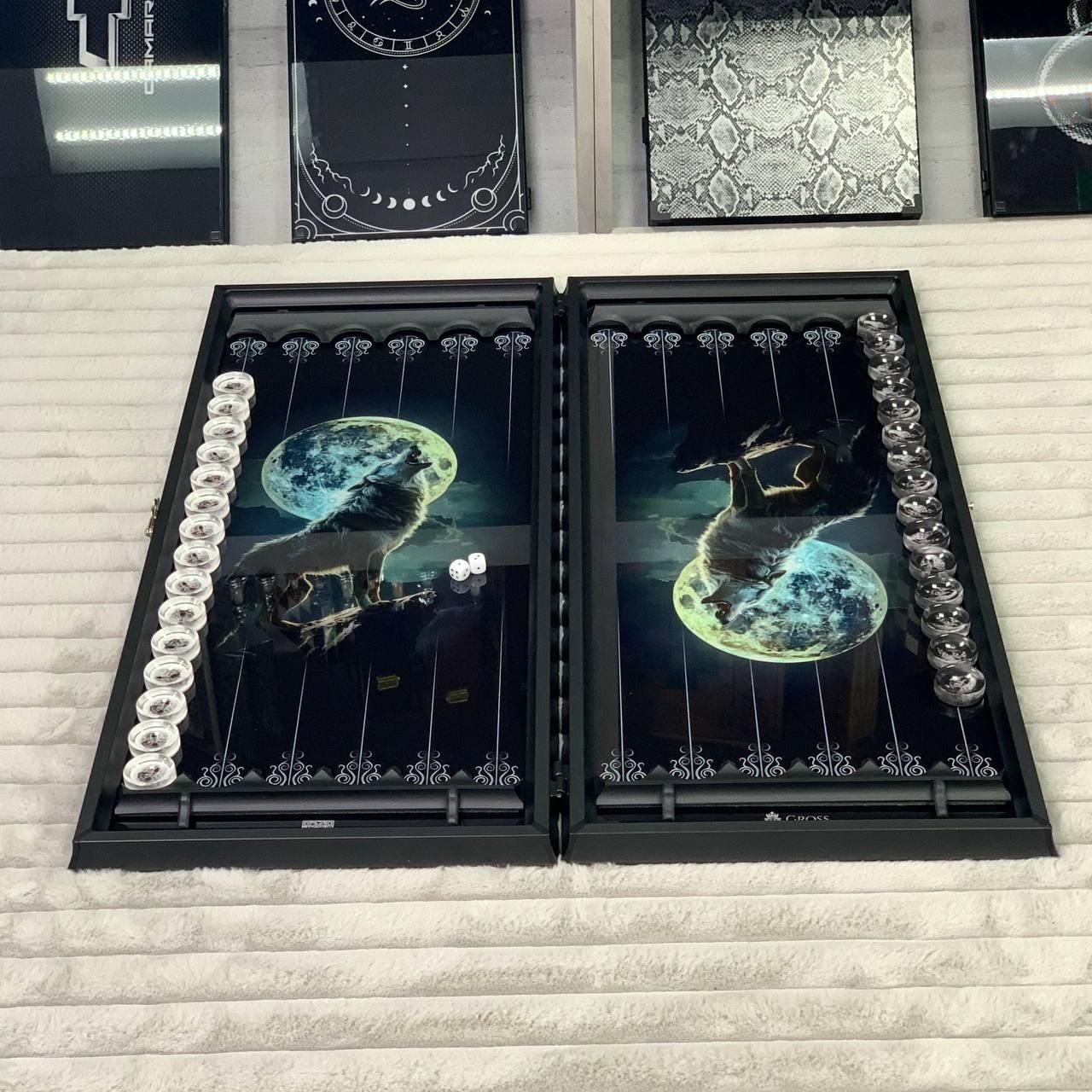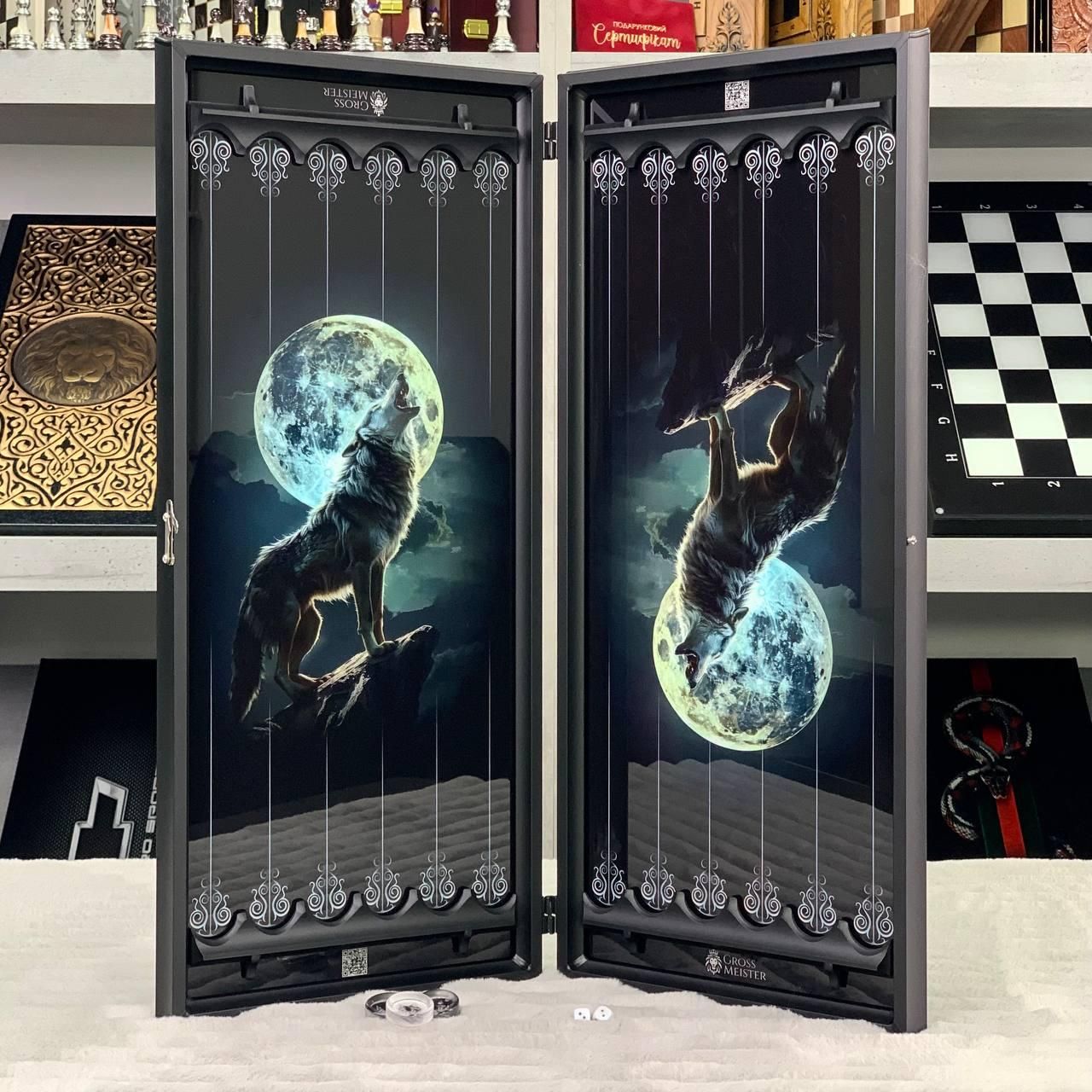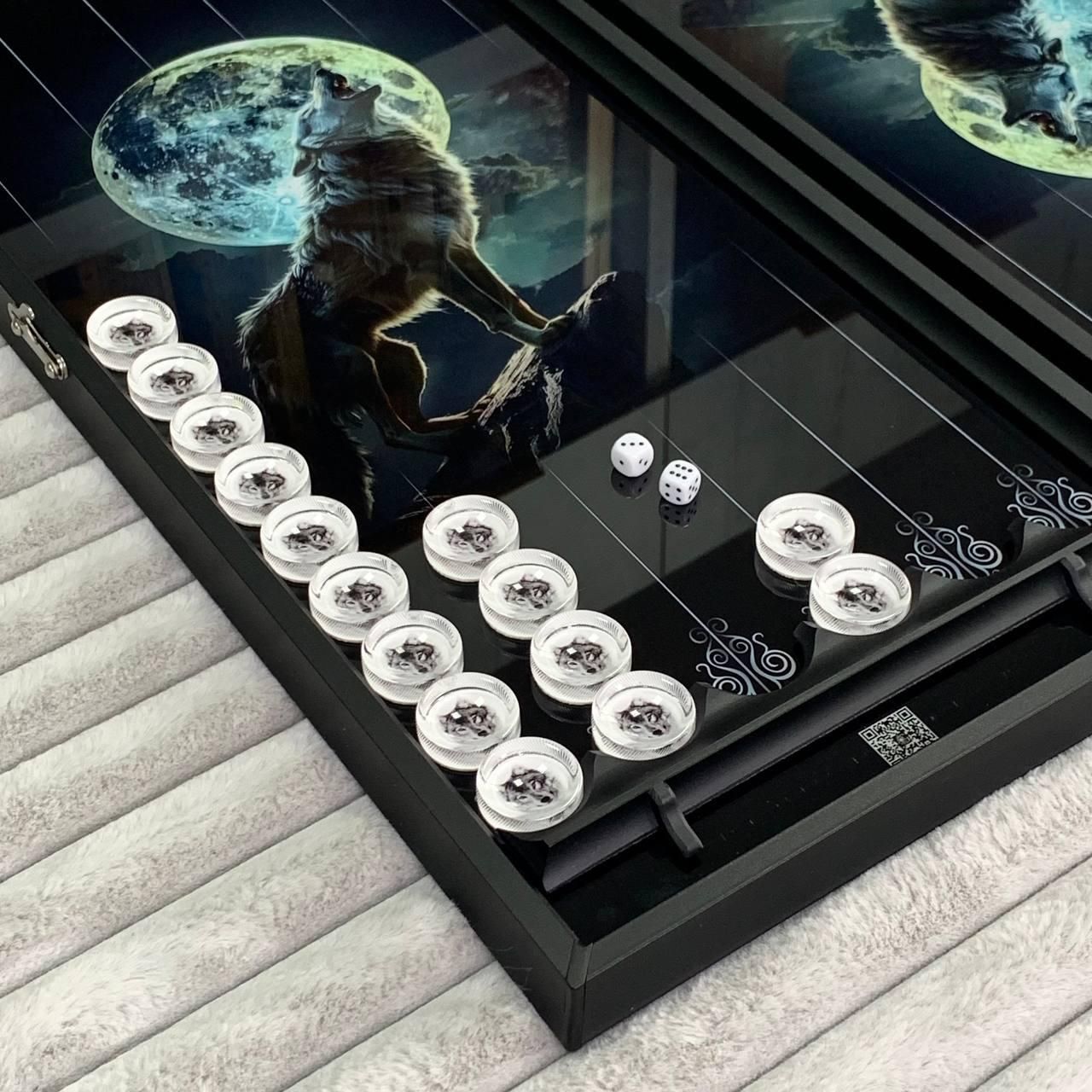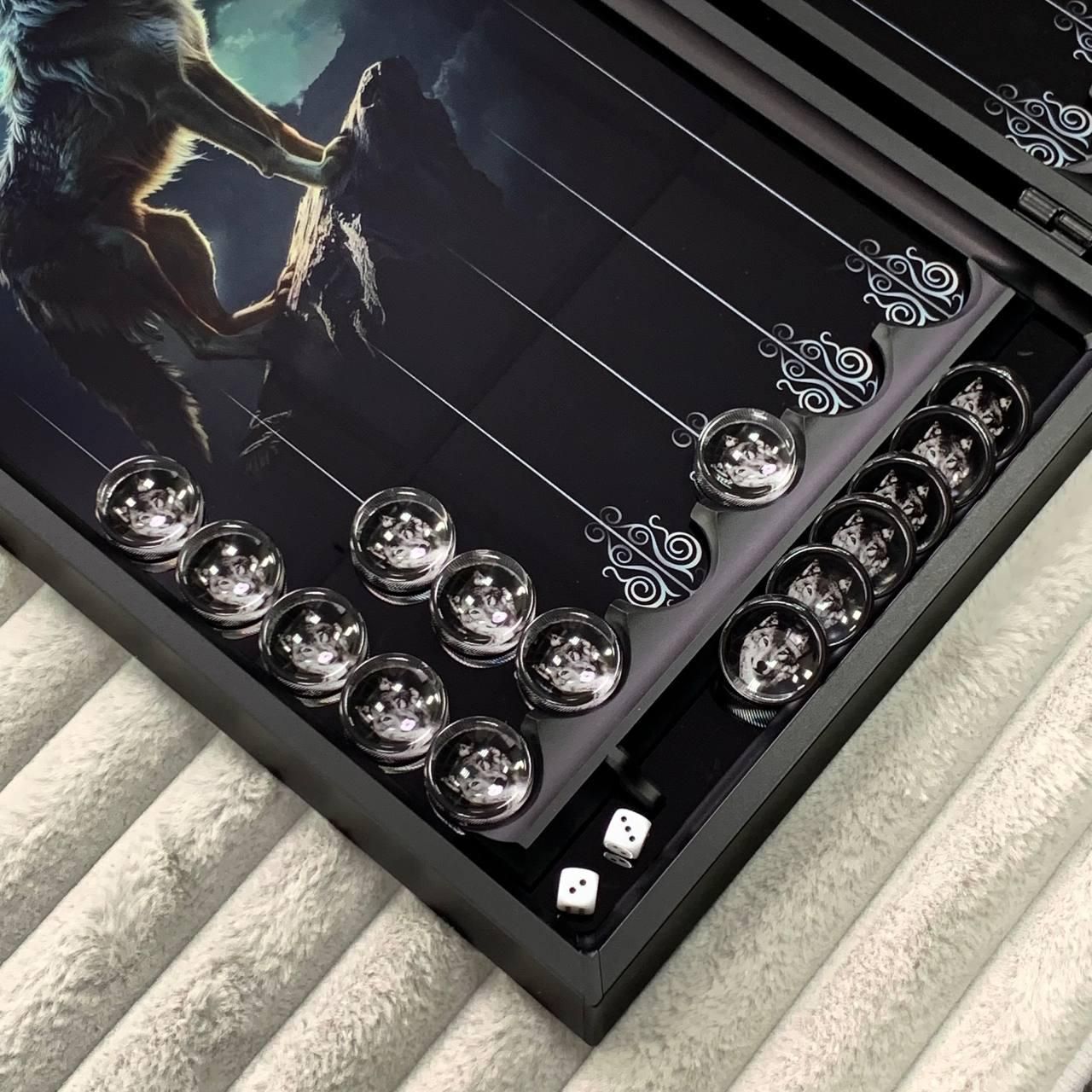 Нарди зі скла в алюмінієвому корпусі Вовк 61×27×5см