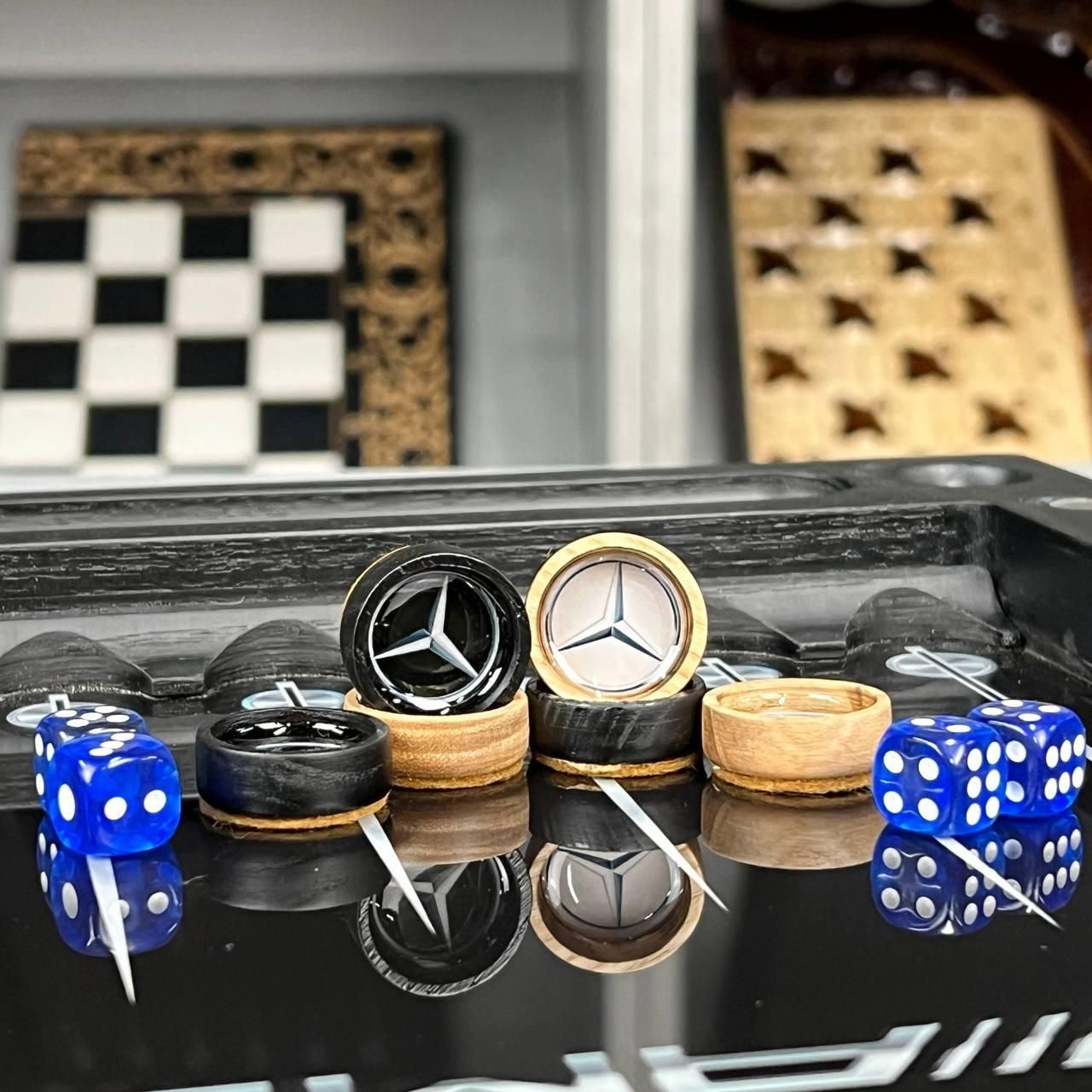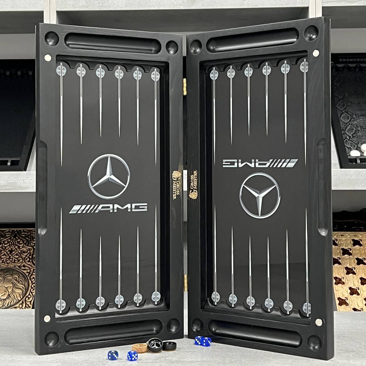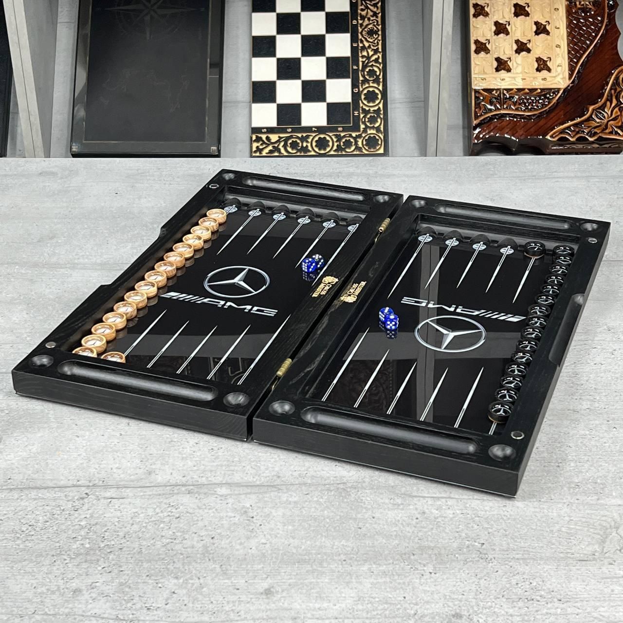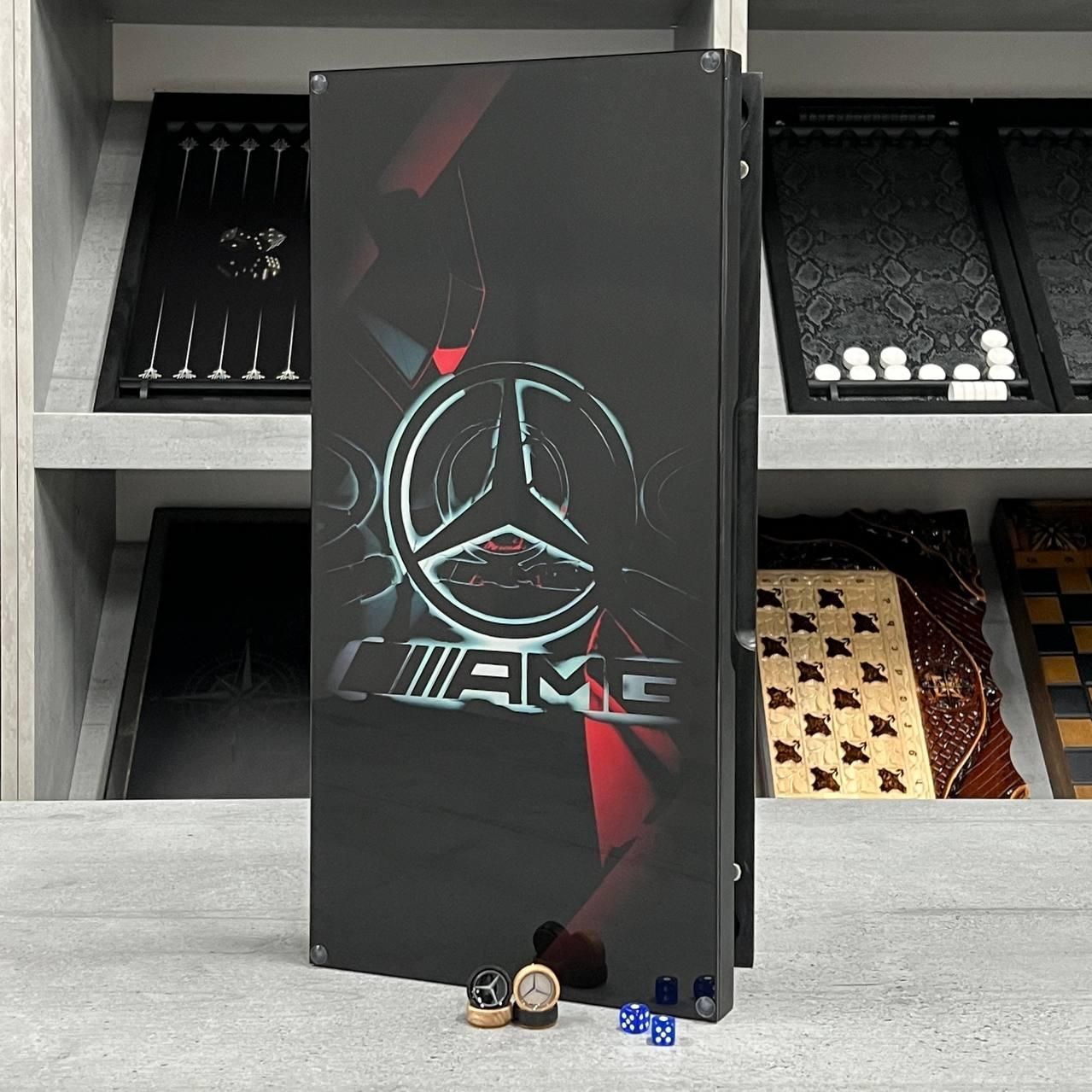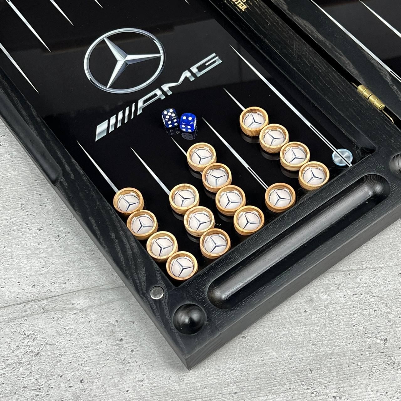 Нарди зі скла та дерава з логотипом Mercedes AMG 50х25см