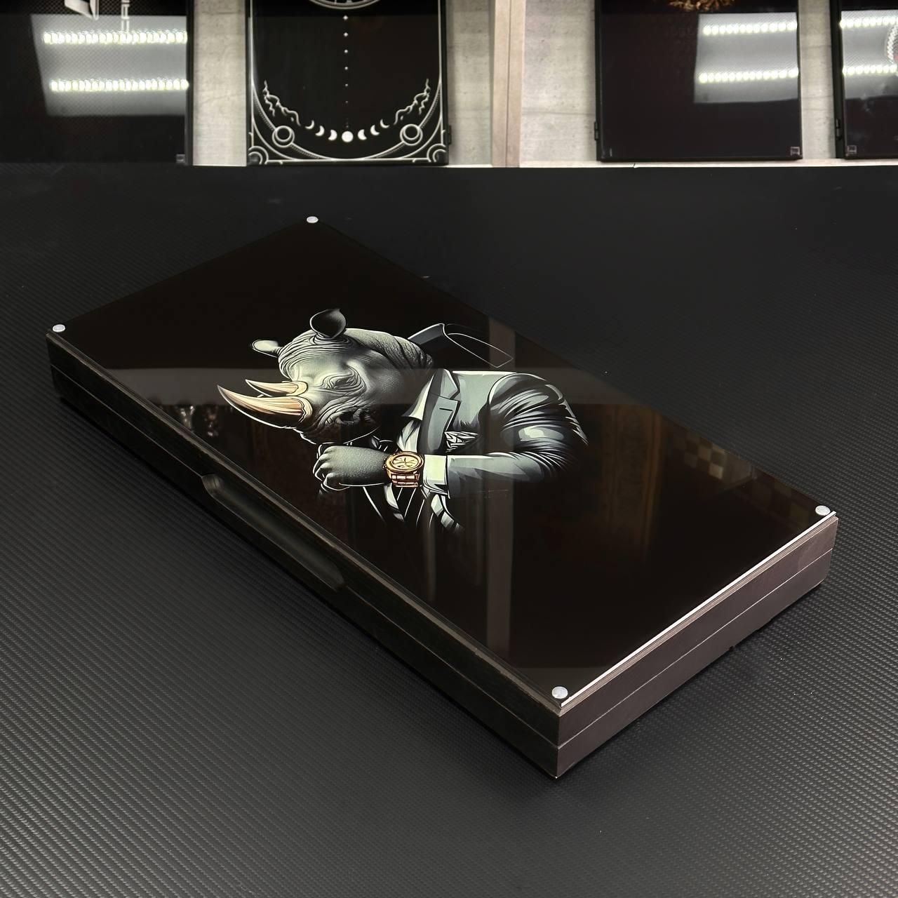 Ексклюзивні нарди зі скла та дерева з можливістю персоналізації, 50х24см, Носоріг, арт 270011 Ці нарди — не просто настільна гра, а справжній витвір мистецтва, що поєднує класичний дизайн та сучасні матеріали. Виконані з дерева, зі скляним ігровим полем, нарди підходять для тих, хто цінує естетику, стиль та якість. Унікальний малюнок, нанесений за допомогою УФ-друку, додає виробу особливого шарму, а можливість персоналізації дозволяє зробити його абсолютно індивідуальним. Це ідеальний подарунок для близьких або елегантний елемент декору для вашого інтер'єру. Особливості товару: Матеріали преміум-класу: каркас виготовлений з високоякісного дерева, а ігрове поле — зі скла, що надає гри особливої витонченості. Унікальний дизайн: малюнок на поверхні наноситься за допомогою УФ-друку, що гарантує його стійкість до зношування та вигорання. Можливість персоналізації: ви можете додати будь-який малюнок на зовнішню або внутрішню поверхню нард, зробивши цей виріб унікальним. Фішки зі смоли: дерев'яні фішки залиті смолою, що додає їм міцності та збереження естетики на довгі роки. Ідеальний подарунок: нарди стануть чудовим подарунком на будь-яке свято або чудовим доповненням до інтер'єру офісу чи будинку. Вага та розмір: цей набір легко транспортувати завдяки компактним розмірам, а його вага свідчить про надійність і якість використаних матеріалів. Ці нарди — це не тільки настільна гра, але й предмет розкоші, який вражає з першого погляду. Гладке скляне ігрове поле забезпечує комфорт під час гри, а міцні дерев'яні фішки зі смолою створюють приємний тактильний досвід. Завдяки можливості нанесення індивідуального дизайну, цей набір може стати унікальним подарунком або частиною колекції настільних ігор. Технічні характеристики: Параметр Опис Розмір 50х23х6 см Матеріал каркасу Дерево Матеріал ігрового поля Скло Фішки Дерево, залиті смолою Тип друку УФ-друк Вага 5,2 кг Можливість персоналізації Так Не втрачайте можливість придбати ексклюзивний набір нард з можливістю персоналізації! Замовляйте прямо зараз і подаруйте собі або близьким справжній витвір мистецтва, який даруватиме радість та естетичне задоволення на довгі роки. Залишилися питання? Телефонуйте нам. Наші менеджери завжди на зв'язку і готові відповісти на всі ваші запитання Адреса: Україна м. Стрий, вул. Заньковецької, буд. 2, другий поверх