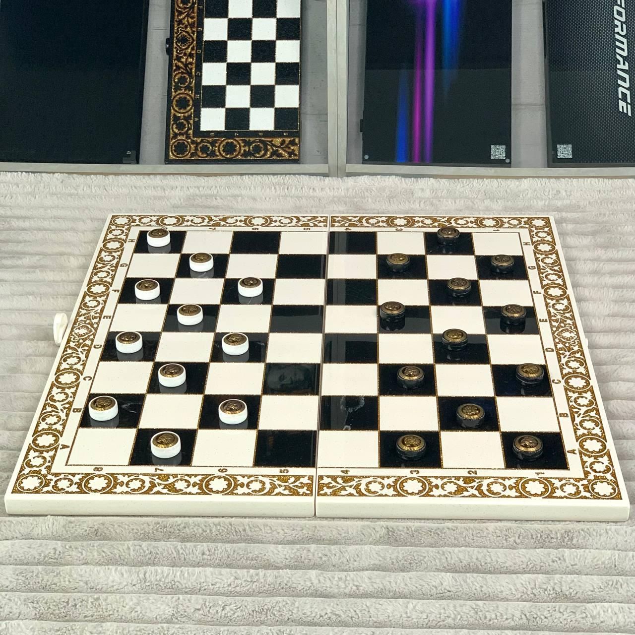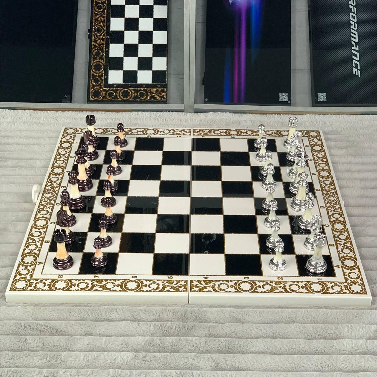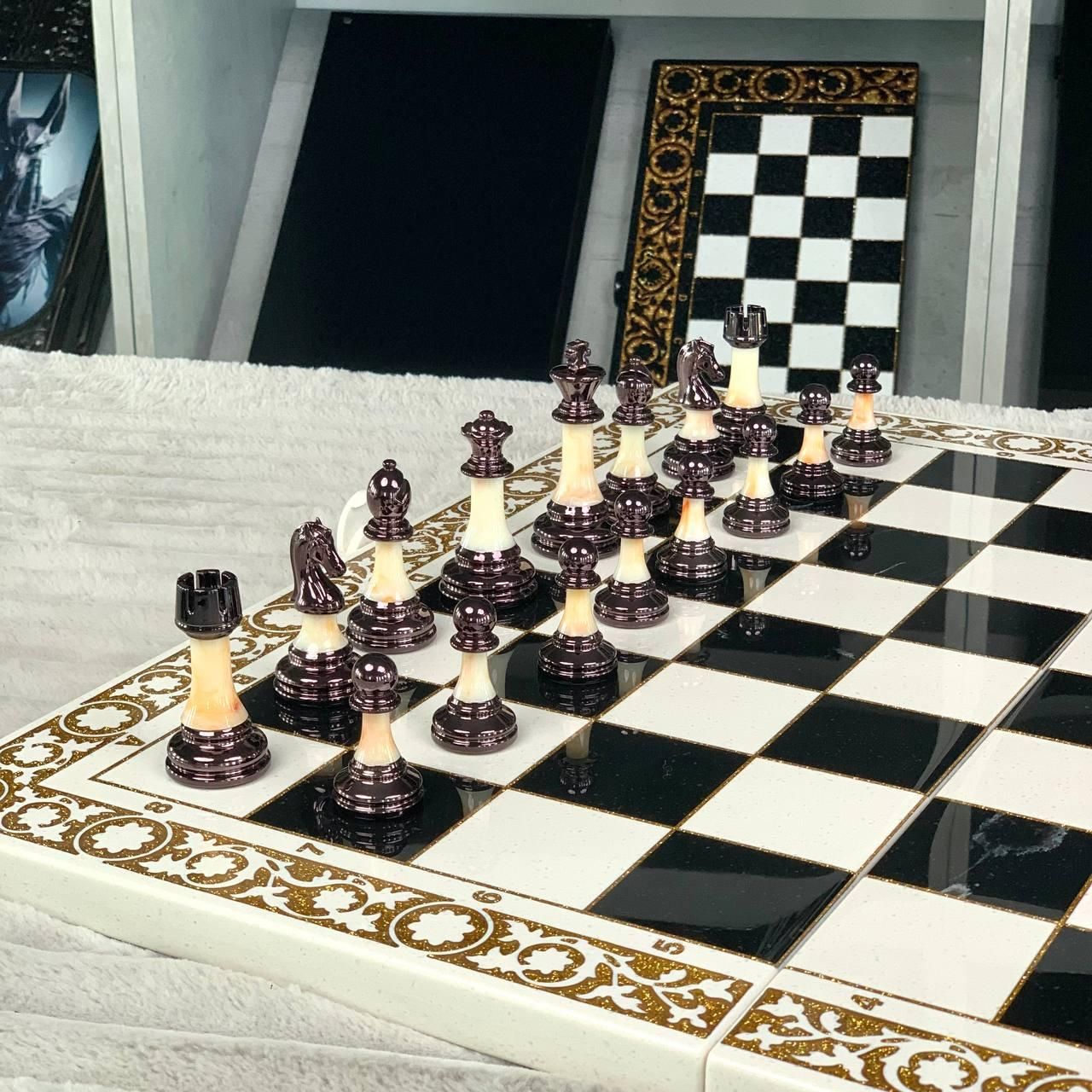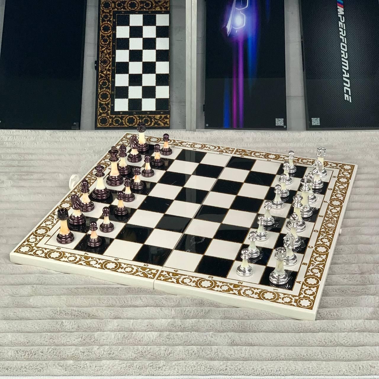 ???? Шаховий набір з білого акрилового каменю з ігровим полем для нард «Лев» – елегантність, що вражає Універсальний шаховий набір преміумкласу поєднує в собі класичні шахи та нарди в одному естетичному виконанні. Виготовлений з білого акрилового каменю, набір має приголомшливу глянцеву фактуру, а всередині приховує ігрове поле для нард, залите ювелірною смолою з зображенням величного лева – символу сили, честі й перемоги. Це не просто гра – це витвір мистецтва, що прикрасить будь-який інтер’єр і стане чудовим подарунком для цінителів інтелектуальних розваг. Особливості товару ???? 2-в-1: шахи та нарди в одному наборі ???? Унікальний дизайн – зображення лева на полі нард, залите ювелірною смолою ???? Фішки з металевими вставками – преміальне виконання для справжніх гурманів ???? Матеріал – акриловий камінь: довговічний, гігієнічний та розкішний ???? Шахові фігури з акрилу – витончені, зручні у грі ???? Ідеальний подарунок – стильне упакування, елітний вигляд Детальний опис Завдяки використанню акрилового каменю цей набір не тільки має розкішний зовнішній вигляд, а й високу стійкість до зношування. Гладка текстура приємна на дотик, а важкість матеріалу надає відчуття солідності кожній деталі. Фішки для нард мають унікальні металеві вставки із зображенням лева, що підкреслюють силу та благородство гри. Ігрове поле захищене прозорою ювелірною смолою, яка надає блиску й глибини зображенню, водночас захищаючи його від подряпин. Технічні характеристики Тип набору: шахи + нарди Розмір у складеному вигляді: 58×28×4 см Матеріал корпусу: акриловий камінь Ігрове поле нард: скло + ювелірна смола, малюнок – Лев Шахові фігури: акрил Фішки для нард: акриловий камінь з металевою вставкою Кількість фішок: 15 світлих + 15 темних Замовляйте зараз! Обирайте елітний шахово-нардовий набір з білим акриловим каменем – і даруйте справжні емоції собі чи близьким. Цей набір стане естетичною окрасою кабінету, подарунком бізнес-партнеру або коштовним сувеніром. ???? Доставка по Україні: Новою Поштою – 1-3 дні ???? Оплата: готівкою при отриманні, переказ на картку, безготівковий розрахунок ???? Для індивідуального оформлення або консультації телефонуйте: Залишилися питання? Телефонуйте нам. Наші менеджери завжди на зв'язку і готові відповісти на всі ваші запитання Адреса: Україна м. Стрий вул. Заньковецької, 2 (другий поверх)