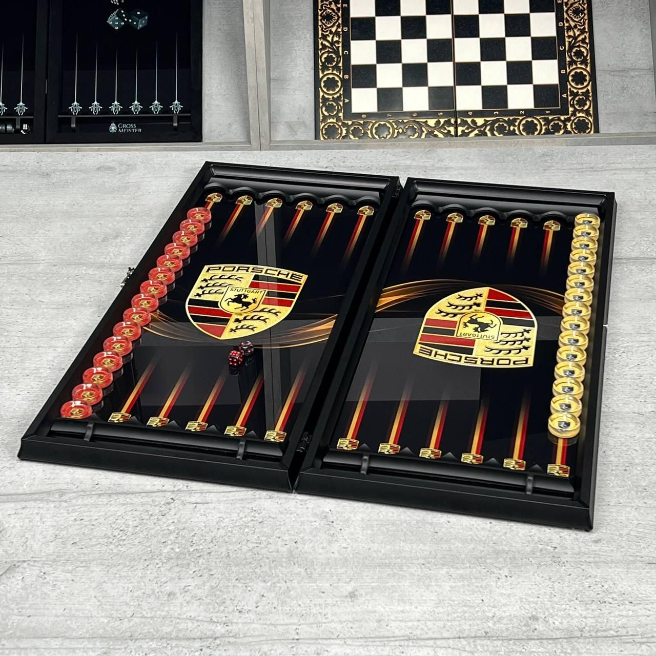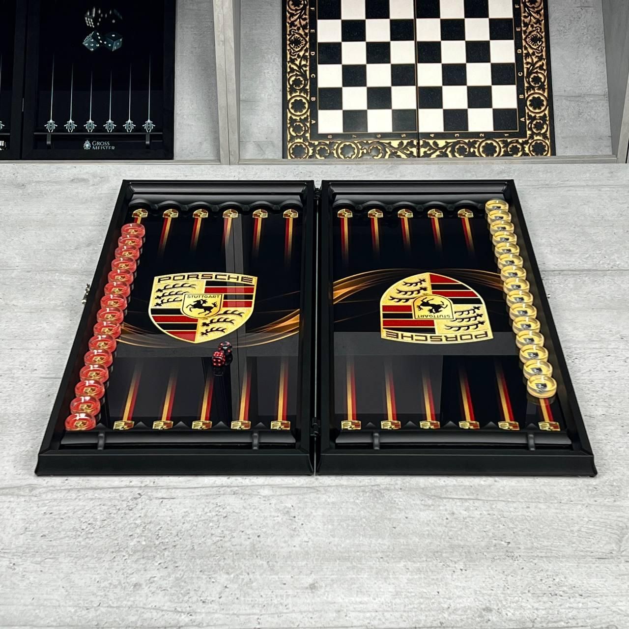 Нарди скляні 61х27см в металевому корпусі Porsche (Порше)