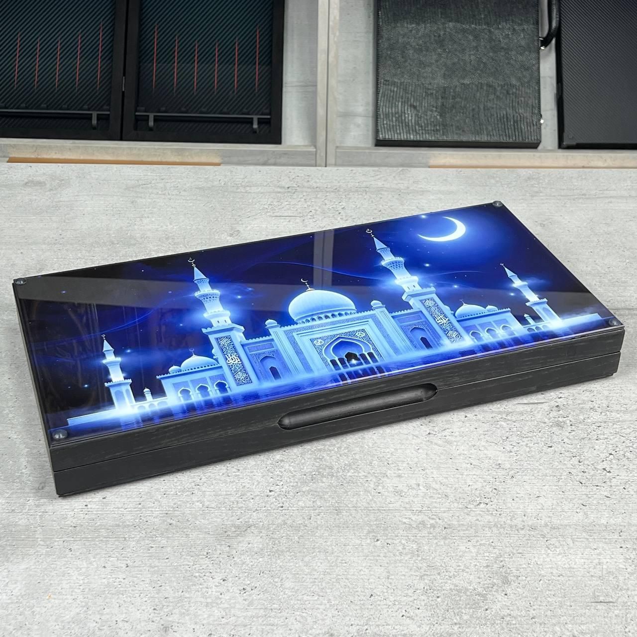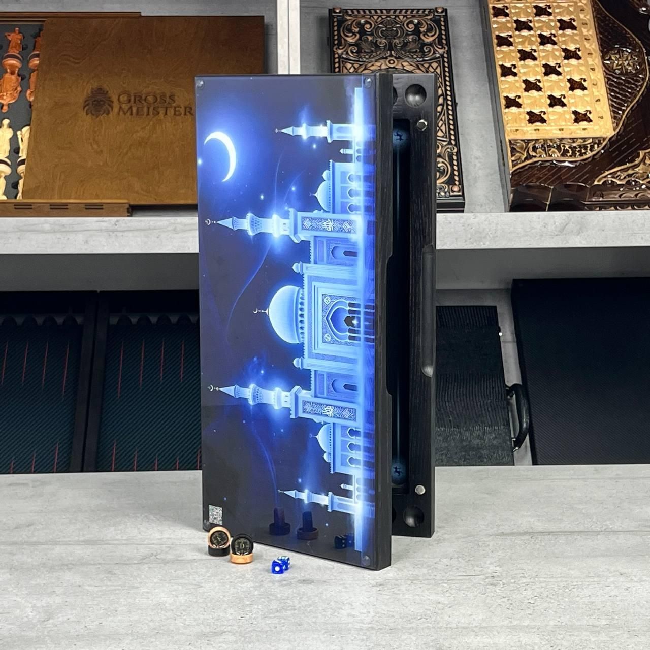 Нарди скляні з кримськотатарською символікою Мечеть та Тамга 50х25 см Ексклюзивні настільні нарди зі скляним ігровим полем — це поєднання преміальної якості, національних традицій та сучасних технологій. Даний набір створений для тих, хто шукає цінний подарунок з глибоким змістом. Центр композиції прикрашає золота Тамга (родова емблема Гераїв) на фоні величної мечеті, що робить гру символом віри, незламності та поваги до культури кримськотатарського народу. Основні переваги нард із гартованого скла Міцність та довговічність. Ігрове поле виготовлене з ударостійкого гартованого скла. Каркас набору виконаний з натурального дерева твердих порід, що забезпечує зносостійкість конструкції. УФ-друк високої чіткості. Зображення нанесено з внутрішньої сторони скла за допомогою ультрафіолетового друку. Малюнок не контактує з фішками, не стирається з часом і не вигорає на сонці. Преміальні ігрові фішки. У комплект входять фішки з натурального дерева, оздоблені ювелірною епоксидною смолою. Вони мають ідеальну вагу для комфортної гри та легко ковзають по скляній поверхні. Масивність та статус. Вага набору становить 5 кг, що підкреслює солідність виробу та забезпечує його стійкість на будь-якій поверхні під час гри. Технічні характеристики виробу Параметр Значення Розмір у складеному вигляді 50х25х6 см Розмір у розкладеному вигляді 60х60 см Матеріал ігрового поля Гартоване скло Матеріал корпусу Натуральне дерево Оздоблення фішок Дерево та епоксидна смола Технологія малюнка УФ-друк під склом Загальна вага 5 кг Країна виробництва Україна Кому варто купити подарункові нарди Цей набір стане ідеальним вибором для подарунка керівнику, бізнес-партнеру, батькові або близькому другу. Нарди з національною символікою часто купують як сімейну реліквію, що передається від батька до сина. За вашим бажанням ми виконуємо індивідуальну персоналізацію: гравіювання імені, пам'ятної дати або привітання на дерев'яному борту набору. Доставка та замовлення Ми приділяємо особливу увагу пакуванню, щоб скляний виріб було доставлено поштою у цілісності. Кожен комплект ретельно перевіряється перед відправкою. Для отримання детальної консультації або обговорення гравіювання звертайтесь за телефоном: +380732670070 Залишилися питання? Телефонуйте нам. Наші менеджери завжди на зв'язку і готові відповісти на всі ваші запитання Адреса: Україна м. Стрий, вул. Заньковецької, буд. 2, другий поверх