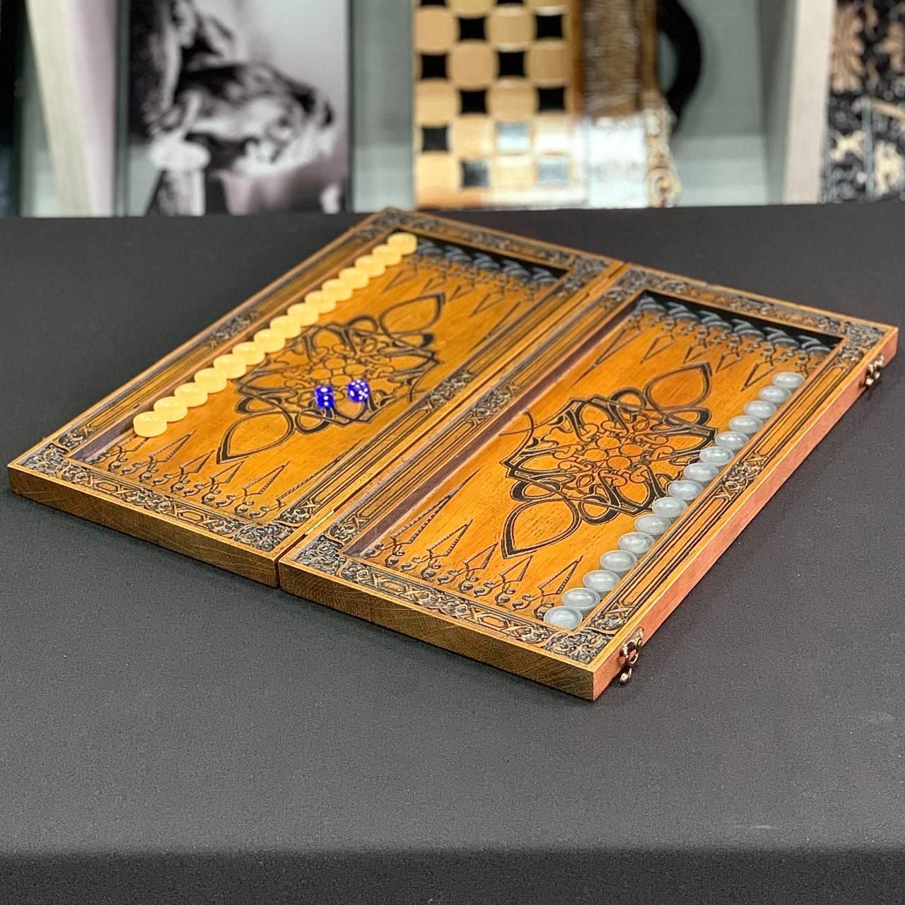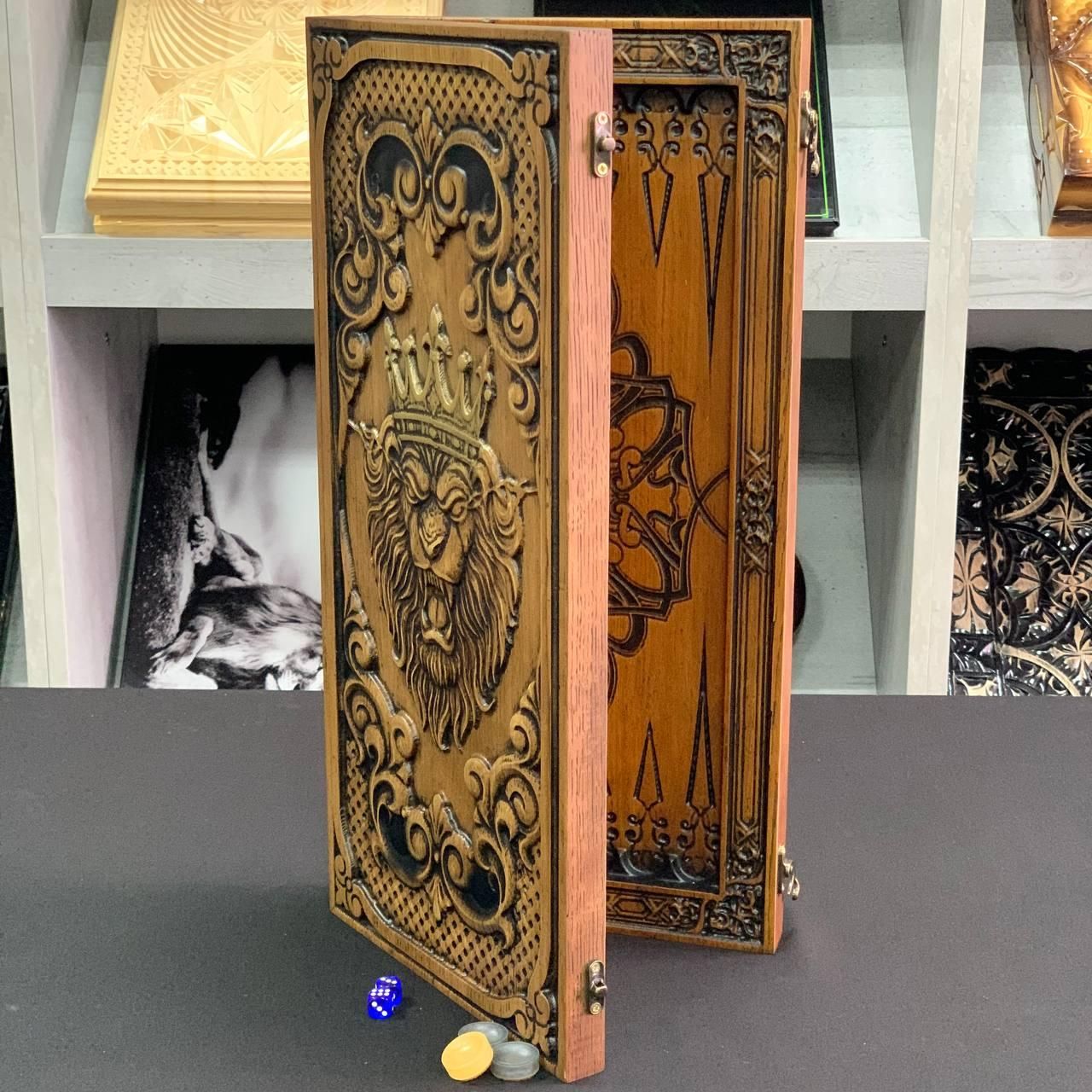 Нарди «Лев з короною»: Подарунок для справжніх переможців Шукаєте презент, який підкреслить силу та статус отримувача? Нарди ручної роботи «Лев з короною» — це втілення шляхетності та майстерності. Зображення лева, увінчаного короною, символізує мудрість, захист та лідерство, що робить цей набір бездоганним вибором для особливого подарунка. Чому варто обрати саме цю модель: Художнє різьблення: Зовнішня панель прикрашена глибоким різьбленням по дереву. Лев у короні виконаний з високою деталізацією, що перетворює звичайну ігрову дошку на елемент розкішного декору. Матеріал — благородний ясен: Нарди виготовлені з масиву ясеня, який цінується за свою міцність та чудову природну текстуру. Це дерево гарантує виробу довговічність та стійкість до зовнішніх впливів. Техніка випалювання: Внутрішнє поле оформлене методом пірографії (випалювання). Витончений орнамент не стирається з часом, зберігаючи естетичний вигляд гри на багато років. Зручність та компактність: Завдяки розміру 46х23 см та вазі близько 2 кг, нарди зручно зберігати на полиці або брати з собою в дорогу, при цьому ігрове поле залишається комфортним для повноцінної партії. Кому підійде цей подарунок: Це ідеальний варіант для батька, чоловіка, керівника чи бізнес-партнера. Такий сюрприз виділить Вас серед інших та продемонструє Ваш досконалий смак у виборі цінних речей. Технічні характеристики (арт. 190187): Матеріал: Натуральний ясен. Тип оформлення: Різьблення по дереву (зовні) та випалювання (всередині). Розміри у складеному вигляді: 46×23 см. Розміри у розкладеному вигляді: 46×46 см. Вага: 1,950 кг. Фішки: Натуральна липа, діаметр 23 мм. Зари (кубики): 12 мм. Комплектація: Нарди, 30 фішок, 2 кубики. ???? Рекомендуємо додати до замовлення: Захисний чохол: Спеціальна сумка або чохол допоможуть захистити різьблення від випадкових подряпин та пилу. Набір преміальних кубиків: Зари з більярдної кулі забезпечать професійну якість гри та приємний звук відскоку. ???? Замовте нарди для переможця вже зараз: +380732670070 Не зупиняйтеся на досягнутому! На нашому сайті представлені й , які зможуть задовольнити будь-які ваші смаки та вподобання. : Це класична гра, яка протягом століть розважає людей всіх віків. : Інтелектуальна гра, яка кине виклик вашому розуму. Аксесуари для настільних ігор: , , та багато іншого, що зробить ваші ігри ще більш комфортними та приємними. Завітайте до нашого і знайдіть ту гру, яка стане вашим новим улюбленим дозвіллям! Залишилися питання? Телефонуйте нам. Наші менеджери завжди на зв'язку і готові відповісти на всі ваші запитання Адреса: Україна м. Стрий, вул. Заньковецької, буд. 2, другий поверх