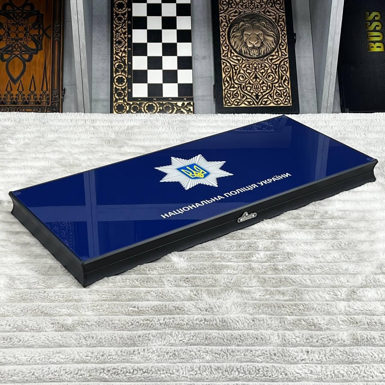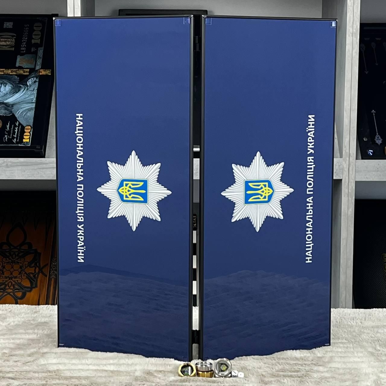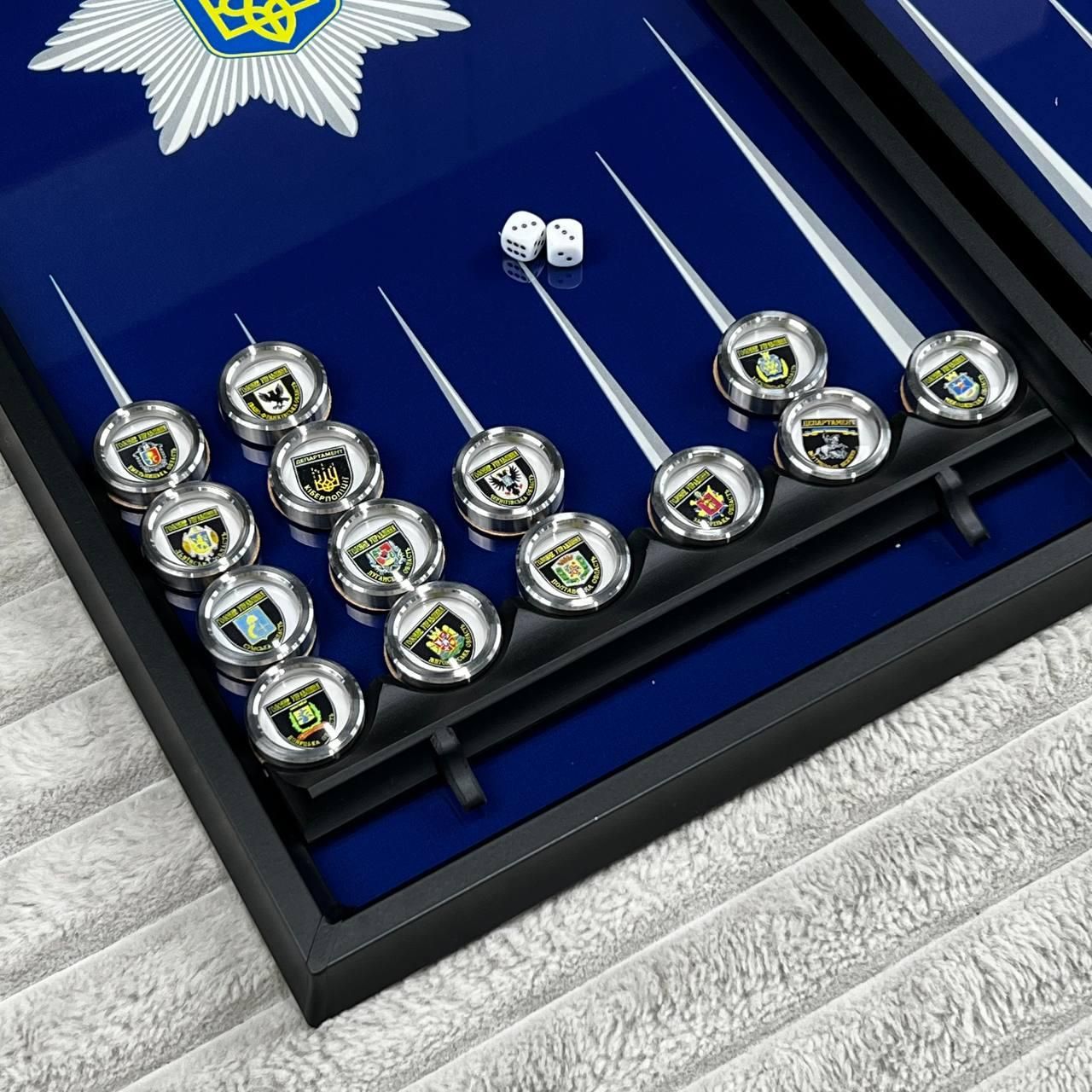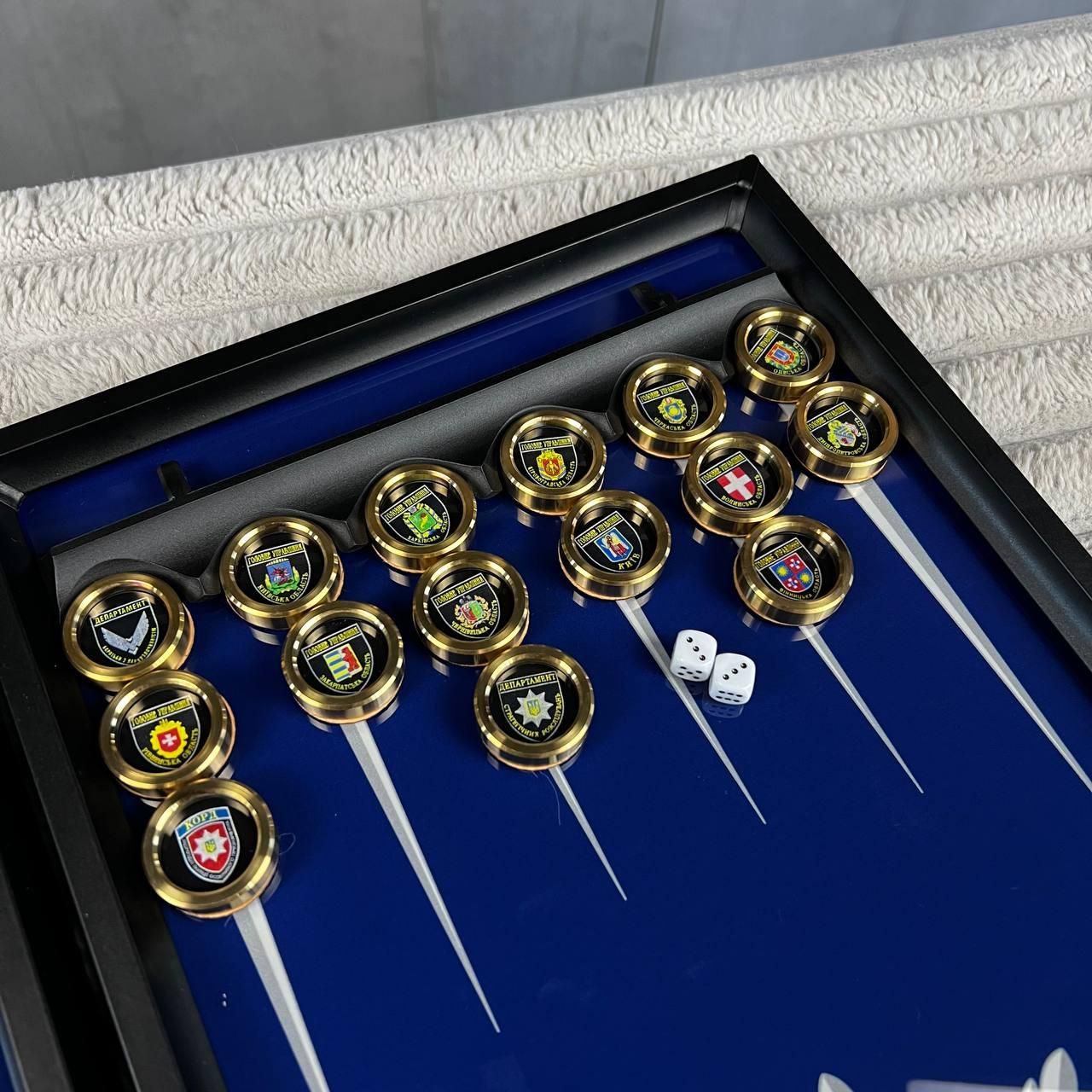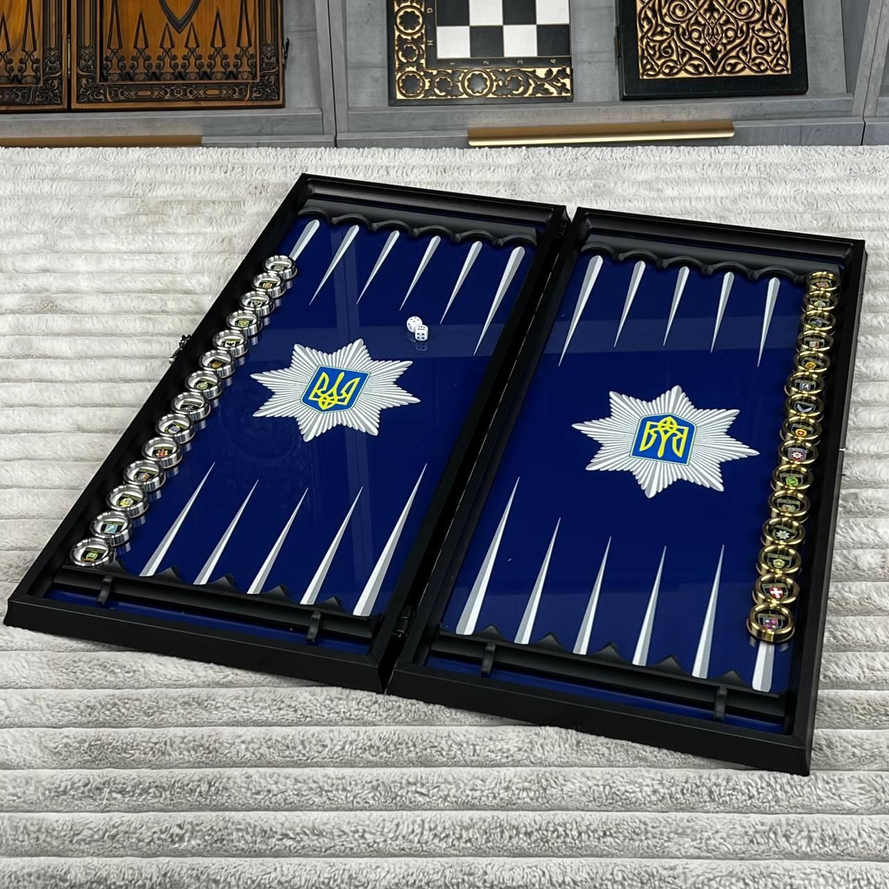 Нарди зі скла з латунними фішками Шеврон 61×27×5см