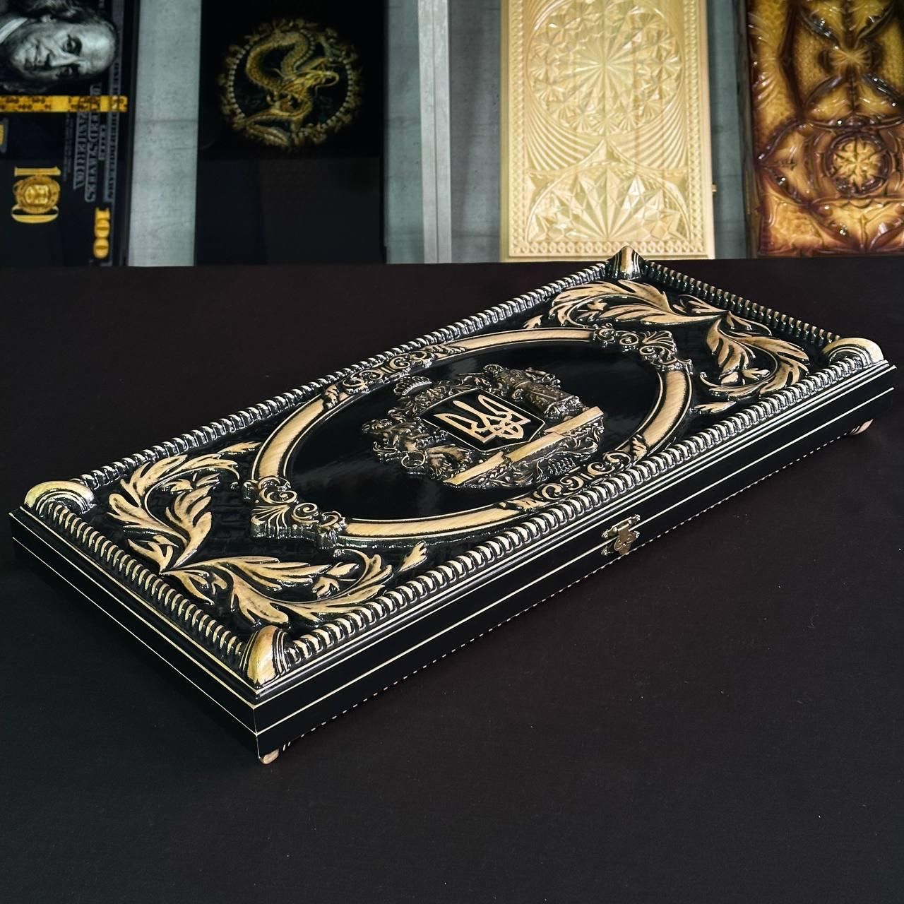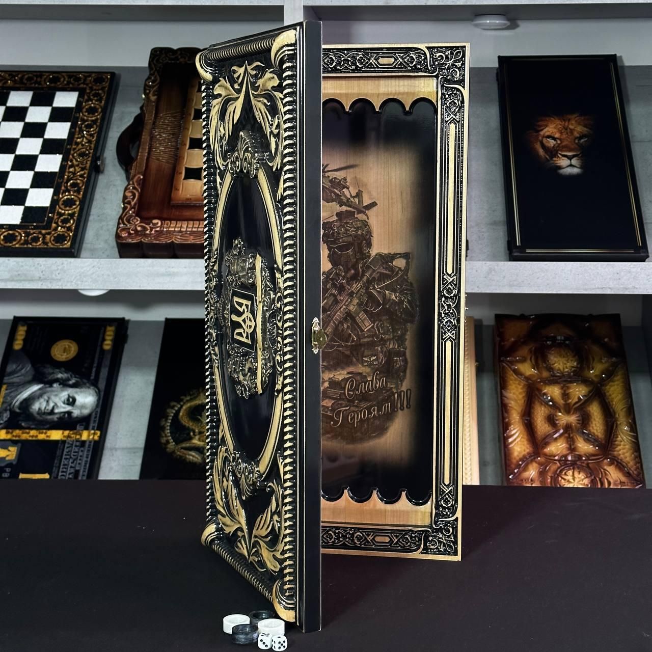 Нарди дерев'яні 60×28 см, арт.193013, оформлені різьбленням, Герб Відкрийте для себе світ захоплюючої гри з цими вишуканими дерев'яними нардами "Герб"! Особливості: Виготовлені з високоякісного дерева клен: міцна дошка та гладкі фішки гарантують довгі роки насолоди від гри. Унікальний дизайн "Герб": елегантний малюнок на дошці та фішках створить атмосферу таємниці та азарту. Стандартний розмір: 60х28 см - зручний для зберігання та транспортування. Комплект на все готове: дошка, 30 фішок (15 чорних та 15 білих) та 2 кубика. Ідеальний подарунок: ці нарди стануть чудовим подарунком для будь-якого любителя настільних ігор, а також для тих, хто цінує вишукані речі. Персоналізація: Ви можете персоналізувати нарди, замовивши гравірування на ігровому полі або змінити малюнок. Це відмінний спосіб зробити нарди унікальними та неповторними (для уточнення деталей звяжіться з нами у зручний для Вас спосіб ) Характеристики: Матеріал: клен Розмір: 60х28 см Комплектація: дошка, 30 фішок, 2 кубика Замовте нарди дерев'яні "Герб" 60х28 см вже і подаруйте собі та своїм близьким години захоплюючого дозвілля! Переваги: Розвиває стратегічне мислення та логіку. Тренує уважність та концентрацію. Підходить для будь-якого віку. Зближує людей та дарує емоції. Стане чудовим доповненням до вашого інтер'єру. Ця гра не просто розвага, це цілий світ, де кожен хід може стати ключовим до перемоги. Не зупиняйтеся на досягнутому! На нашому сайті представлені й , які зможуть задовольнити будь-які ваші смаки та вподобання. : Це класична гра, яка протягом століть розважає людей всіх віків. : Інтелектуальна гра, яка кине виклик вашому розуму. Аксесуари для настільних ігор: , , та багато іншого, що зробить ваші ігри ще більш комфортними та приємними. Завітайте до нашого і знайдіть ту гру, яка стане вашим новим улюбленим дозвіллям! Залишилися питання? Телефонуйте нам. Наші менеджери завжди на зв'язку і готові відповісти на всі ваші запитання Адреса: Україна м. Стрий, вул. Заньковецької, буд. 2, другий поверх