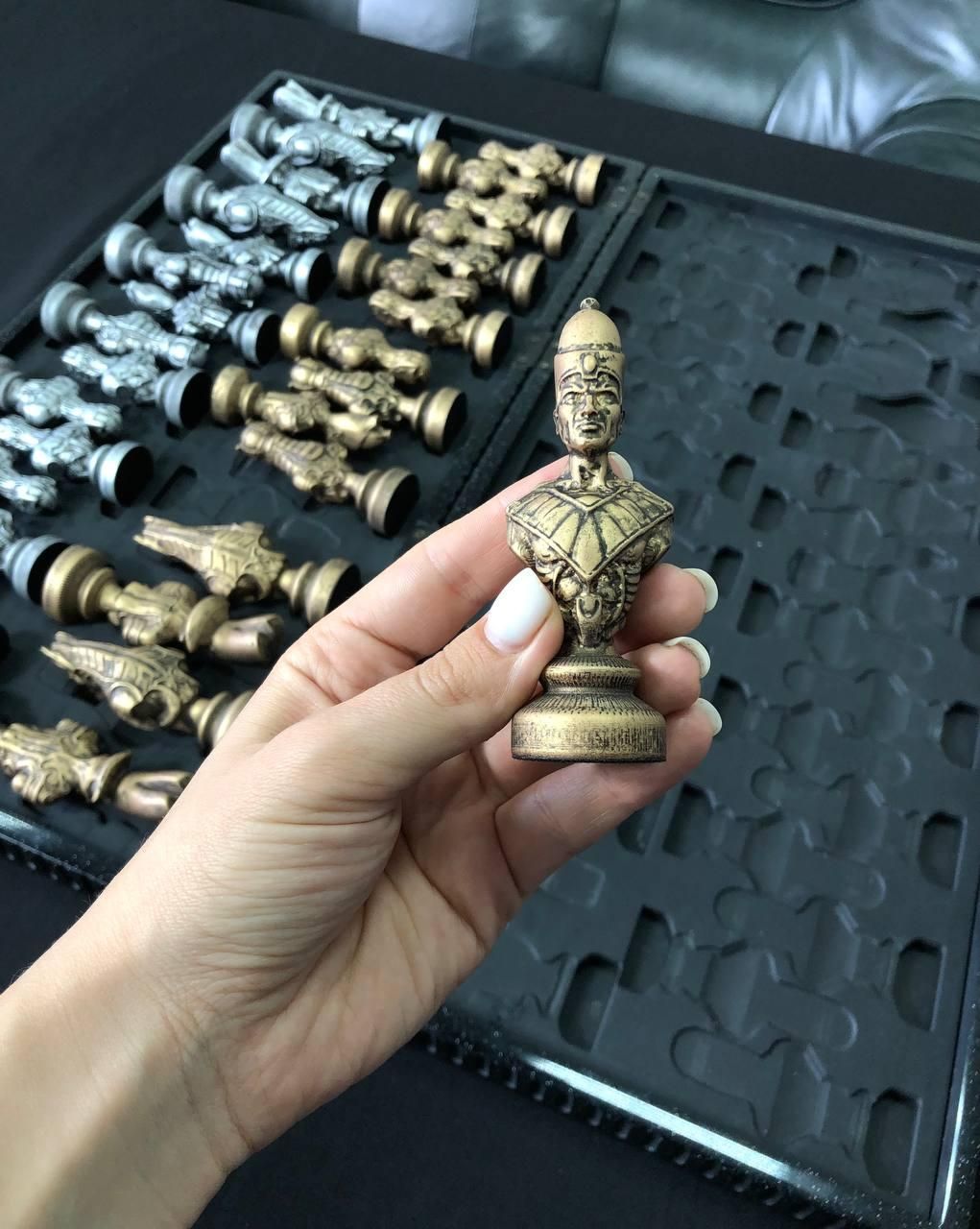 Шахи з акрилового каменю «Єгипет»: Магія мармуру та велич фараонів (55х28 см) Ці шахи — не просто гра, це статусний елемент інтер'єру та справжній витвір мистецтва. Виготовлені з високотехнологічного акрилового каменю з унікальною текстурою мармуру, вони поєднують у собі холодну естетику натурального каменю та неймовірну довговічність. Унікальність у кожній деталі Головна особливість набору — неповторність. Завдяки специфіці акрилового каменю, візерунок мармурових розводів на кожній дошці та фігурі створюється випадковим чином. Ви стаєте власником єдиного у світі екземпляра, адже дублювати малюнок ліній та відтінків неможливо. Основні переваги набору: Матеріал Premium-класу: Акриловий камінь за своїми властивостями перевершує натуральний мармур — він міцніший, стійкий до подряпин та вологи, але при цьому зберігає благородну прохолоду та приємну гладкість. Витончена деталізація: Кожна фігура — це маленька скульптура єгипетських богів та фараонів. Чіткі риси обличчя, величні пози та ієрогліфи переносять вас у золоту епоху Стародавнього Єгипту. Ексклюзивна дошка: Велике поле (55х28 см) з єгипетськими візерунками по краях ідеально гармонує з фігурами, створюючи атмосферу таємничості та інтелектуальної битви. Тактильний комфорт: Фігури мають ідеальну вагу та приємно лежать у руці, що робить кожну партію особливим ритуалом. Технічні характеристики (арт. 190642): Параметр Опис Матеріал фігур та дошки Акриловий камінь (з ефектом мармуру) Стилістика Стародавній Єгипет Загальний розмір дошки 55 см х 28 см Особливість Унікальний малюнок текстури (Handmade quality) Стійкість Стійкі до зношення та вицвітання Чому цей набір — ідеальний подарунок? Це безпрограшний варіант для колекціонерів, любителів історії та тих, хто цінує дорогі, якісні речі. Шахи в єгипетському стилі підкреслять інтелект та вишуканий смак господаря кабінету чи вітальні. Замовляйте шахи з акрилового каменю «Єгипет» та пориньте у світ величних фараонів та захоплюючих шахових битв! Не зупиняйтеся на досягнутому! На нашому сайті представлені й , які зможуть задовольнити будь-які ваші смаки та вподобання. : Це класична гра, яка протягом століть розважає людей всіх віків. : Інтелектуальна гра, яка кине виклик вашому розуму. Аксесуари для настільних ігор: , , та багато іншого, що зробить ваші ігри ще більш комфортними та приємними. Завітайте до нашого і знайдіть ту гру, яка стане вашим новим улюбленим дозвіллям! Залишилися питання? Телефонуйте нам. Наші менеджери завжди на зв'язку і готові відповісти на всі ваші запитання Адреса: Україна м. Стрий, вул. Заньковецької, буд. 2, другий поверх
