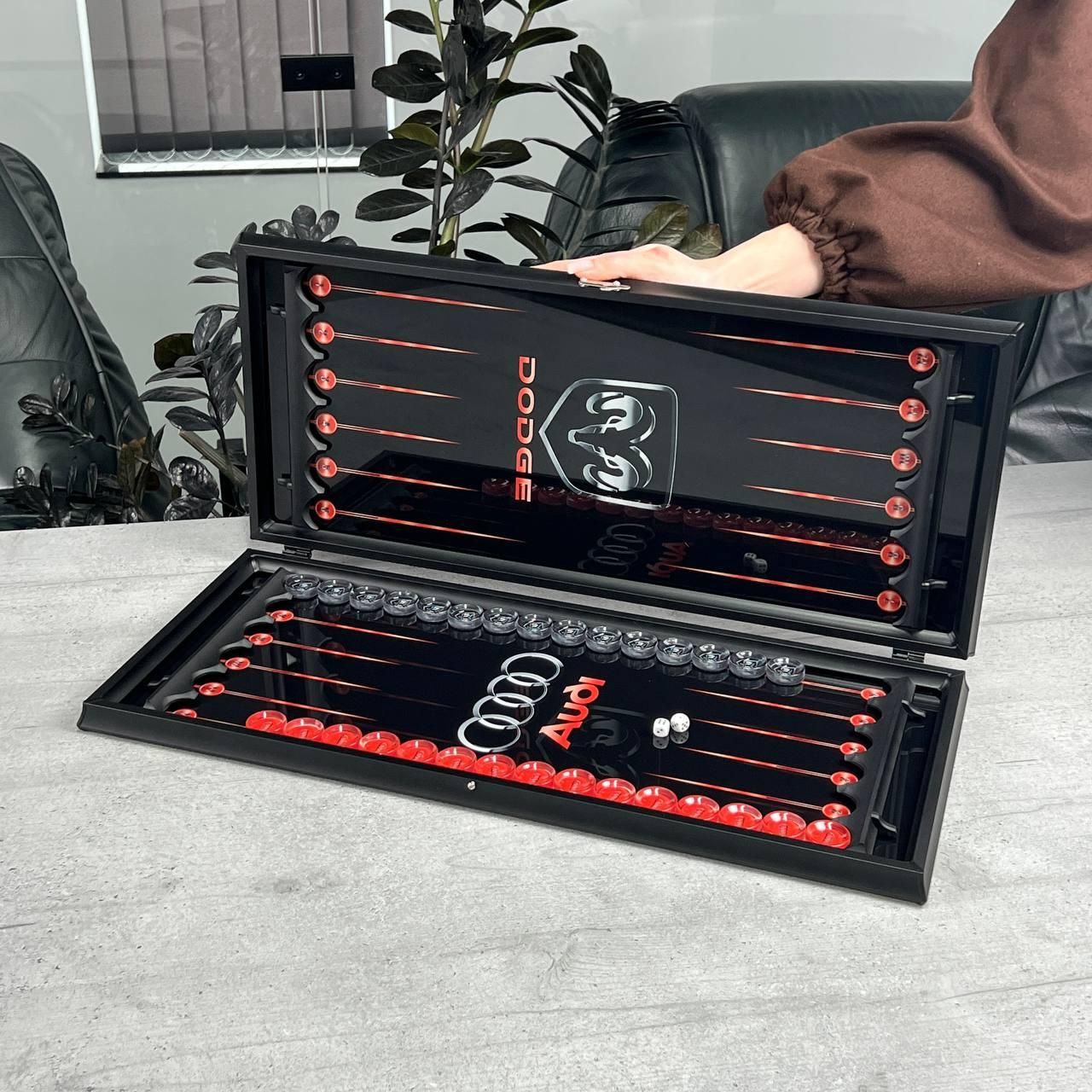 Скляні нарди для автовласників: Логотип та фото вашого авто — Персоналізовані Ексклюзивний аксесуар для справжніх поціновувачів швидкості та стилю від . Шукаєте ідеальний подарунок для чоловіка, чиє серце належить автомобілю? Ці скляні нарди створені спеціально для автомобілістів. Ми пропонуємо унікальну можливість: нанести на ігрове поле логотип вашої марки авто, фото особистого автомобіля або будь-яку іншу символіку, що підкреслить індивідуальність власника. ???? Чому ці нарди — найкращий подарунок для автомобіліста? Автомобільна тематика: На вибір будь-які бренди: Mercedes, BMW, Audi, Porsche, Toyota та інші. Можливість додати фото конкретного авто. Матеріали майбутнього: Міцне загартоване скло та алюмінієвий композит забезпечують довговічність та сучасний Hi-Tech вигляд. Високотехнологічний друк: УФ-чорнила гарантують соковитість кольорів та стійкість малюнка — він не вицвітає та не стирається з часом. Унікальні фішки: Виготовлені з епоксидної смоли, вони приємні на дотик та ідеально ковзають по скляній поверхні. ???? Технічні характеристики: Характеристика Значення Вид гри Нарди (довгі та короткі) Зовнішнє оформлення Алюмінієвий композит (білий фон + золотий візерунок) Ігрове поле Загартоване скло з УФ-друком (логотип/фото авто) Розміри у складеному вигляді 61 × 27 × 5 см Розміри ігрового поля 49 × 50 см Фішки Епоксидна смола (Ø 27 мм), 30 шт. Кубики (зари) Пластик, 2 шт. (9 мм) Вага ~ 5,5 кг Персоналізація Можлива (ініціали, лого авто, індивідуальне фото) Хочете купити елегантні скляні нарди — довгі нарди та короткі нарди? Телефонуйте зараз для консультації або замовлення персоналізації: . Залишилися питання? Телефонуйте нам. Наші менеджери завжди на зв'язку і готові відповісти на всі ваші запитання Адреса: Україна м. Стрий, вул. Заньковецької, буд. 2, другий поверх
