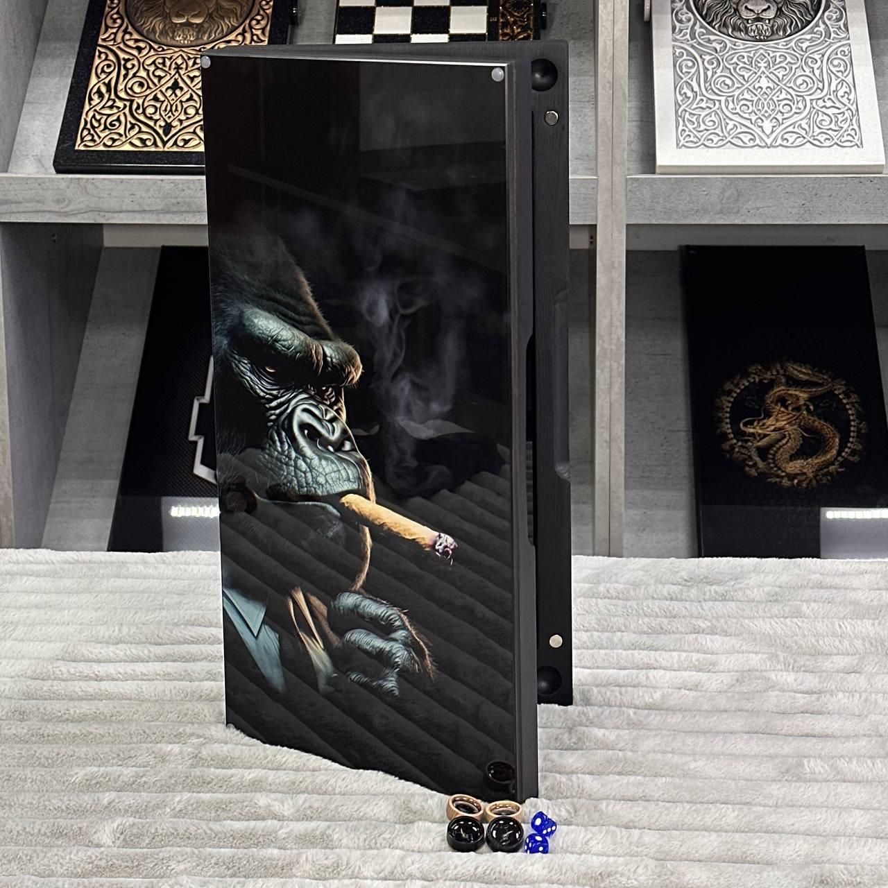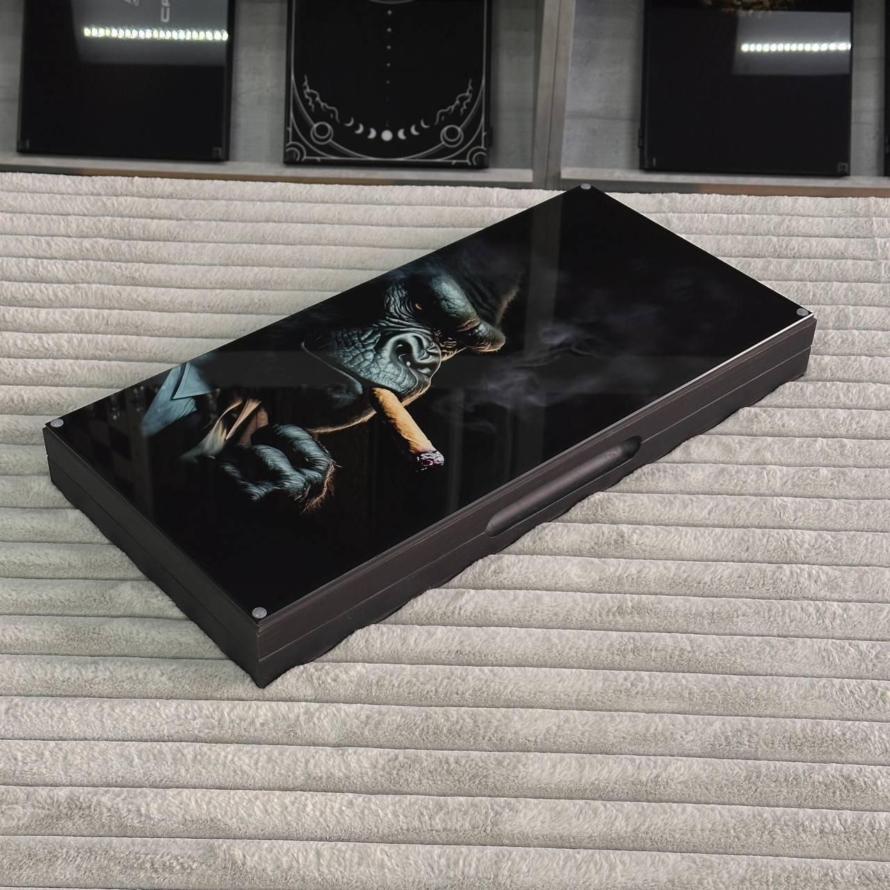 Ексклюзивні нарди зі скла та дерева з можливістю персоналізації, 50х24см, Горила, арт 270008 Ці нарди — не просто настільна гра, а справжній витвір мистецтва, що поєднує класичний дизайн та сучасні матеріали. Виконані з дерева, зі скляним ігровим полем, нарди підходять для тих, хто цінує естетику, стиль та якість. Унікальний малюнок, нанесений за допомогою УФ-друку, додає виробу особливого шарму, а можливість персоналізації дозволяє зробити його абсолютно індивідуальним. Це ідеальний подарунок для близьких або елегантний елемент декору для вашого інтер'єру. Особливості товару: Матеріали преміум-класу: каркас виготовлений з високоякісного дерева, а ігрове поле — зі скла, що надає гри особливої витонченості. Унікальний дизайн: малюнок на поверхні наноситься за допомогою УФ-друку, що гарантує його стійкість до зношування та вигорання. Можливість персоналізації: ви можете додати будь-який малюнок на зовнішню або внутрішню поверхню нард, зробивши цей виріб унікальним. Фішки зі смоли: дерев'яні фішки залиті смолою, що додає їм міцності та збереження естетики на довгі роки. Ідеальний подарунок: нарди стануть чудовим подарунком на будь-яке свято або чудовим доповненням до інтер'єру офісу чи будинку. Вага та розмір: цей набір легко транспортувати завдяки компактним розмірам, а його вага свідчить про надійність і якість використаних матеріалів. Ці нарди — це не тільки настільна гра, але й предмет розкоші, який вражає з першого погляду. Гладке скляне ігрове поле забезпечує комфорт під час гри, а міцні дерев'яні фішки зі смолою створюють приємний тактильний досвід. Завдяки можливості нанесення індивідуального дизайну, цей набір може стати унікальним подарунком або частиною колекції настільних ігор. Технічні характеристики: Параметр Опис Розмір 50х23х6 см Матеріал каркасу Дерево Матеріал ігрового поля Скло Фішки Дерево, залиті смолою Тип друку УФ-друк Вага 5,2 кг Можливість персоналізації Так Ви можете персоналізувати нарди, замовивши гравірування на ігровому полі або змінити малюнок. Це відмінний спосіб зробити нарди унікальними та неповторними (для уточнення деталей звяжіться з нами у зручний для Вас спосіб ) Не упустіть шанс стати володарем цих унікальних нард! Замовте нарди вже і подаруйте собі та своїм близьким незабутні моменти радості та єднання! Не зупиняйтеся на досягнутому! На нашому сайті представлені й , які зможуть задовольнити будь-які ваші смаки та вподобання. : Це класична гра, яка протягом століть розважає людей всіх віків. : Інтелектуальна гра, яка кине виклик вашому розуму. Аксесуари для настільних ігор: , , та багато іншого, що зробить ваші ігри ще більш комфортними та приємними. Завітайте до нашого і знайдіть ту гру, яка стане вашим новим улюбленим дозвіллям! Залишилися питання? Телефонуйте нам. Наші менеджери завжди на зв'язку і готові відповісти на всі ваші запитання Адреса: Україна м. Стрий, вул. Заньковецької, буд. 2, другий поверх