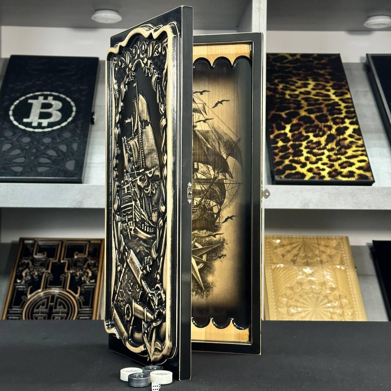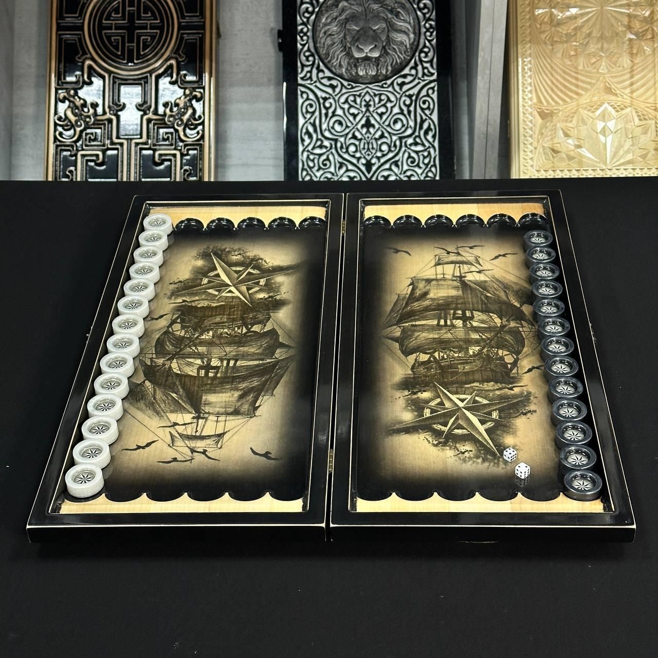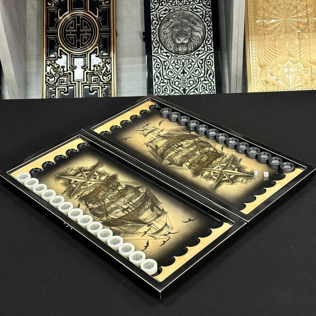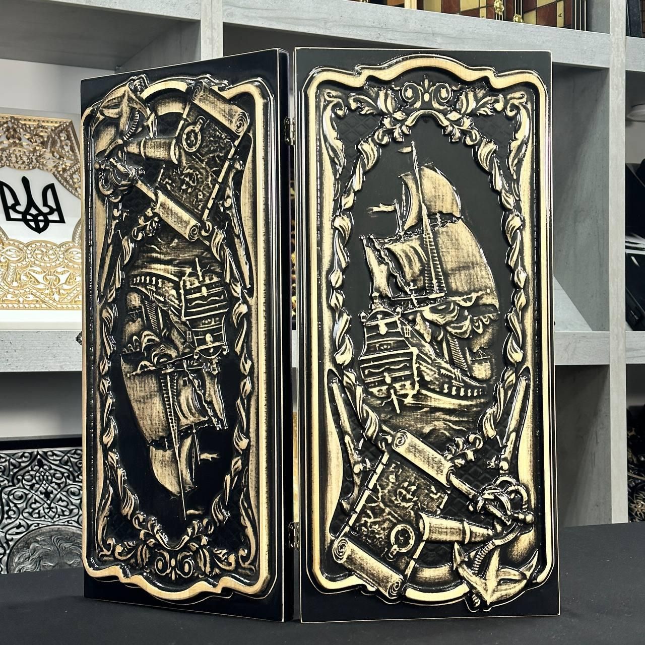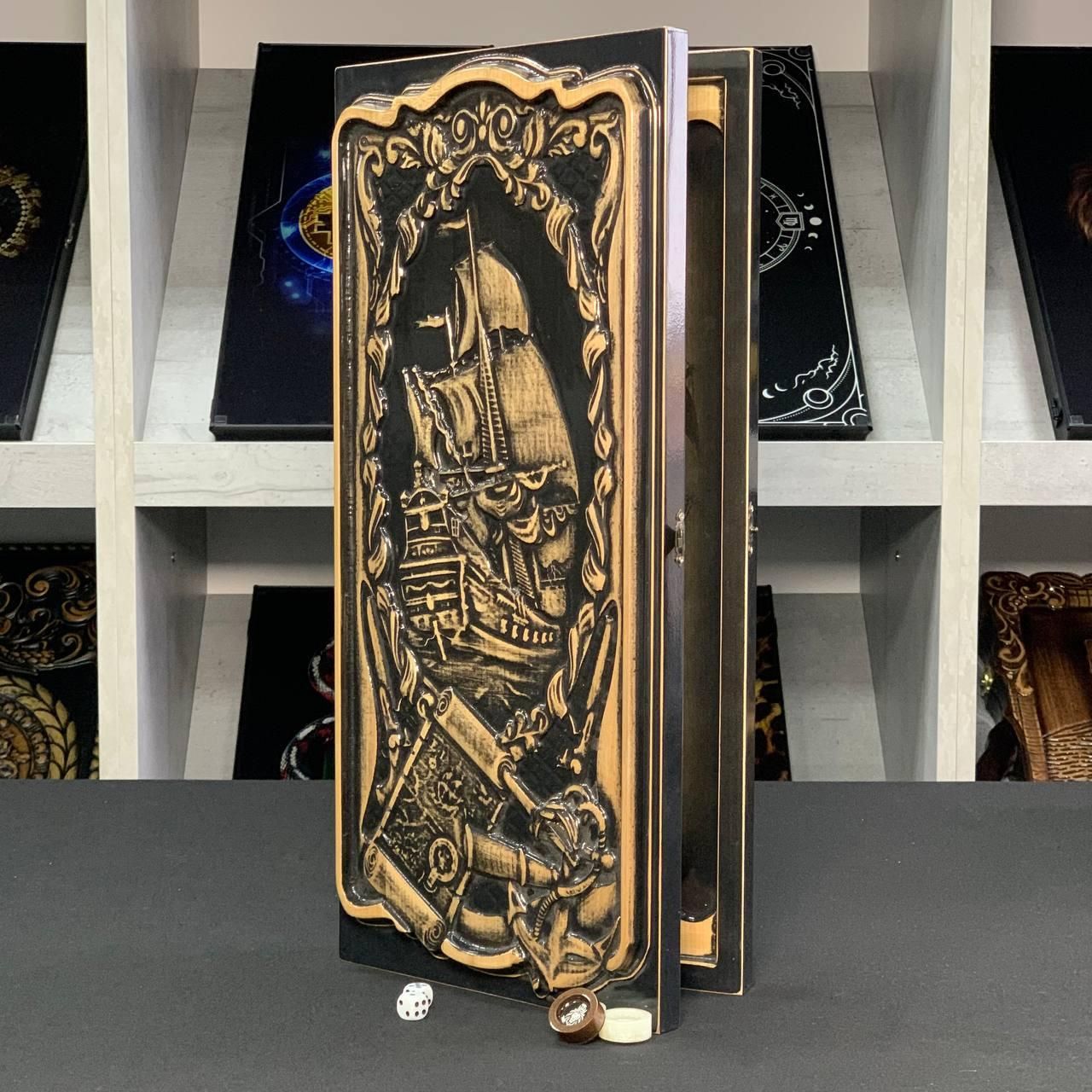 Дерев'яні нарди ручної роботи Корабель 50×23см