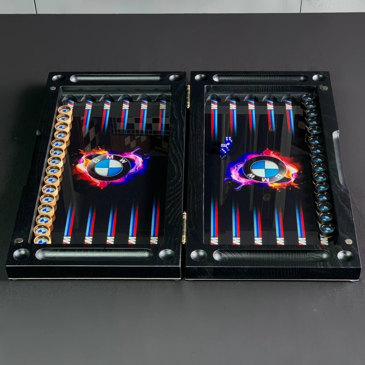 Нарди скляні у поєднанні з деревом BMW 50×24×6см