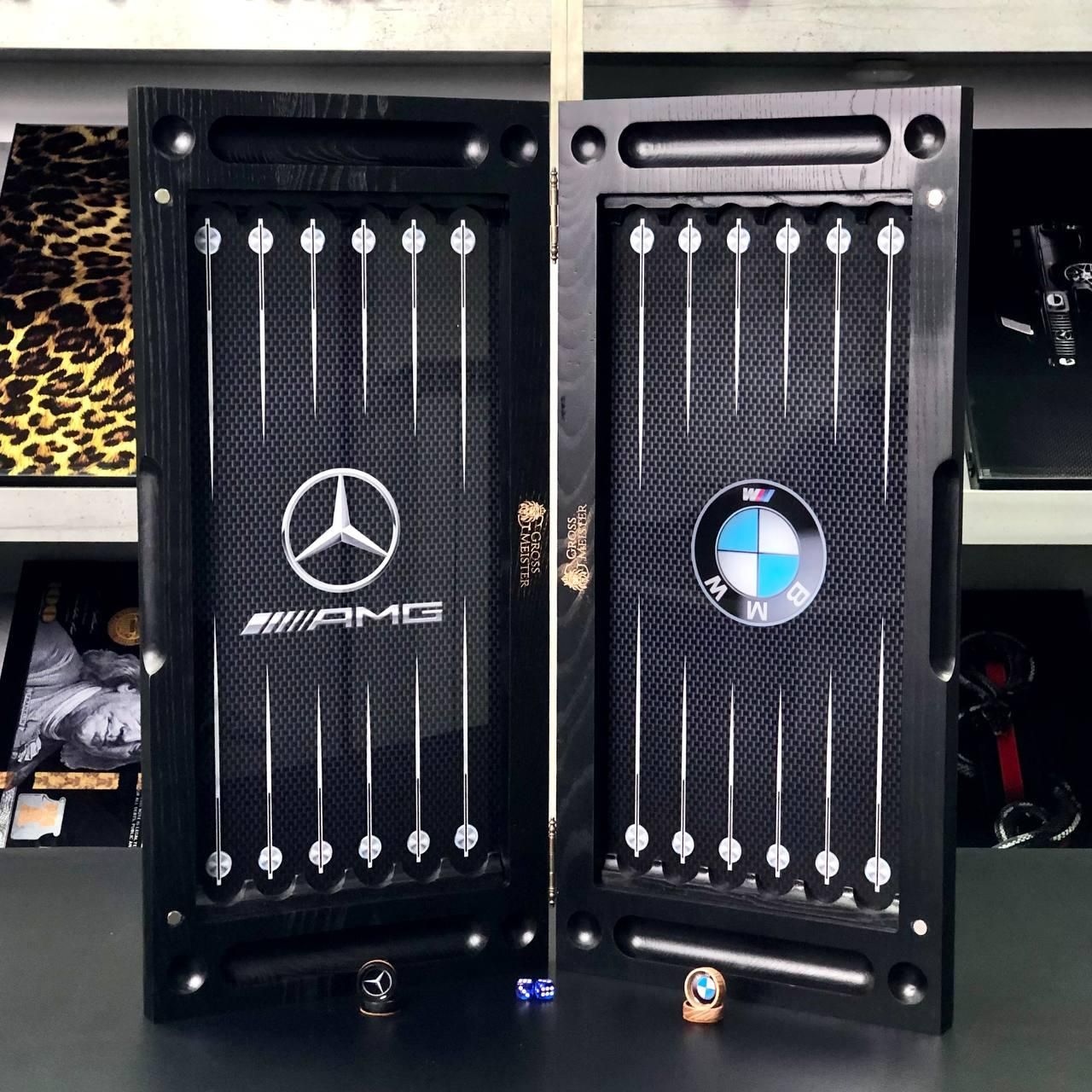 Нарди дерев'яні зі склом "BMW - MERCEDES-BENZ", 60×30×6см, арт. 270036 Ці нарди — не просто настільна гра, а справжній витвір мистецтва, що поєднує класичний дизайн та сучасні матеріали. Виконані з дерева, зі скляним ігровим полем, нарди підходять для тих, хто цінує естетику, стиль та якість. Унікальний малюнок, нанесений за допомогою УФ-друку, додає виробу особливого шарму, а можливість персоналізації дозволяє зробити його абсолютно індивідуальним. Це ідеальний подарунок для близьких або елегантний елемент декору для вашого інтер'єру. Особливості товару: Матеріали преміум-класу: каркас виготовлений з високоякісного дерева, а ігрове поле — зі скла, що надає гри особливої витонченості. Унікальний дизайн: малюнок на поверхні наноситься за допомогою УФ-друку, що гарантує його стійкість до зношування та вигорання. Можливість персоналізації: ви можете додати будь-який малюнок на зовнішню або внутрішню поверхню нард, зробивши цей виріб унікальним. Фішки зі смоли: дерев'яні фішки залиті смолою, що додає їм міцності та збереження естетики на довгі роки. Ідеальний подарунок: нарди стануть чудовим подарунком на будь-яке свято або чудовим доповненням до інтер'єру офісу чи будинку. Вага та розмір: цей набір легко транспортувати завдяки компактним розмірам, а його вага свідчить про надійність і якість використаних матеріалів. Ці нарди — це не тільки настільна гра, але й предмет розкоші, який вражає з першого погляду. Гладке скляне ігрове поле забезпечує комфорт під час гри, а міцні дерев'яні фішки зі смолою створюють приємний тактильний досвід. Завдяки можливості нанесення індивідуального дизайну, цей набір може стати унікальним подарунком або частиною колекції настільних ігор. Технічні характеристики: Параметр Опис Розмір 60×30×6 см Матеріал каркасу Дерево Матеріал ігрового поля Скло Фішки Дерево, залиті смолою Тип друку УФ-друк Вага 8,6кг Можливість персоналізації Так Не втрачайте можливість придбати ексклюзивний набір нард з можливістю персоналізації! Замовляйте прямо зараз і подаруйте собі або близьким справжній витвір мистецтва, який даруватиме радість та естетичне задоволення на довгі роки. Не зупиняйтеся на досягнутому! На нашому сайті представлені й , які зможуть задовольнити будь-які ваші смаки та вподобання. : Це класична гра, яка протягом століть розважає людей всіх віків. : Інтелектуальна гра, яка кине виклик вашому розуму. Аксесуари для настільних ігор: , , та багато іншого, що зробить ваші ігри ще більш комфортними та приємними. Завітайте до нашого і знайдіть ту гру, яка стане вашим новим улюбленим дозвіллям! Залишилися питання? Телефонуйте нам. Наші менеджери завжди на зв'язку і готові відповісти на всі ваші запитання Адреса: Україна м. Стрий, вул. Заньковецької, буд. 2, другий поверх