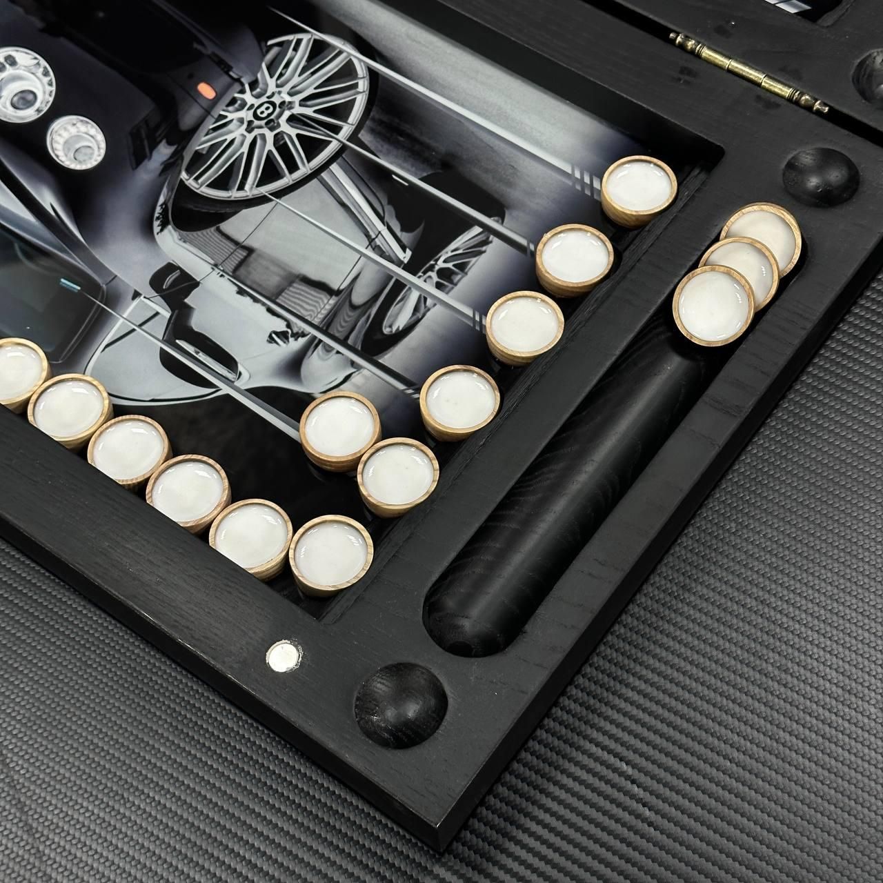 Нарди дерев'яні зі склом "Bentley", 60×30×6см, арт. 270029 Ці нарди — не просто настільна гра, а справжній витвір мистецтва, що поєднує класичний дизайн та сучасні матеріали. Виконані з дерева, зі скляним ігровим полем, нарди підходять для тих, хто цінує естетику, стиль та якість. Унікальний малюнок, нанесений за допомогою УФ-друку, додає виробу особливого шарму, а можливість персоналізації дозволяє зробити його абсолютно індивідуальним. Це ідеальний подарунок для близьких або елегантний елемент декору для вашого інтер'єру. Особливості товару: Матеріали преміум-класу: каркас виготовлений з високоякісного дерева, а ігрове поле — зі скла, що надає гри особливої витонченості. Унікальний дизайн: малюнок на поверхні наноситься за допомогою УФ-друку, що гарантує його стійкість до зношування та вигорання. Можливість персоналізації: ви можете додати будь-який малюнок на зовнішню або внутрішню поверхню нард, зробивши цей виріб унікальним. Фішки зі смоли: дерев'яні фішки залиті смолою, що додає їм міцності та збереження естетики на довгі роки. Ідеальний подарунок: нарди стануть чудовим подарунком на будь-яке свято або чудовим доповненням до інтер'єру офісу чи будинку. Вага та розмір: цей набір легко транспортувати завдяки компактним розмірам, а його вага свідчить про надійність і якість використаних матеріалів. Ці нарди — це не тільки настільна гра, але й предмет розкоші, який вражає з першого погляду. Гладке скляне ігрове поле забезпечує комфорт під час гри, а міцні дерев'яні фішки зі смолою створюють приємний тактильний досвід. Завдяки можливості нанесення індивідуального дизайну, цей набір може стати унікальним подарунком або частиною колекції настільних ігор. Технічні характеристики: Параметр Опис Розмір 60х30х6 см Матеріал каркасу Дерево Матеріал ігрового поля Скло Фішки Дерево, залиті смолою Тип друку УФ-друк Вага 8,9 кг Можливість персоналізації Так Не втрачайте можливість придбати ексклюзивний набір нард з можливістю персоналізації! Замовляйте прямо зараз і подаруйте собі або близьким справжній витвір мистецтва, який даруватиме радість та естетичне задоволення на довгі роки. Не зупиняйтеся на досягнутому! На нашому сайті представлені й , які зможуть задовольнити будь-які ваші смаки та вподобання. : Це класична гра, яка протягом століть розважає людей всіх віків. : Інтелектуальна гра, яка кине виклик вашому розуму. Аксесуари для настільних ігор: , , та багато іншого, що зробить ваші ігри ще більш комфортними та приємними. Завітайте до нашого і знайдіть ту гру, яка стане вашим новим улюбленим дозвіллям! Залишилися питання? Телефонуйте нам. Наші менеджери завжди на зв'язку і готові відповісти на всі ваші запитання Адреса: Україна м. Стрий, вул. Заньковецької, буд. 2, другий поверх