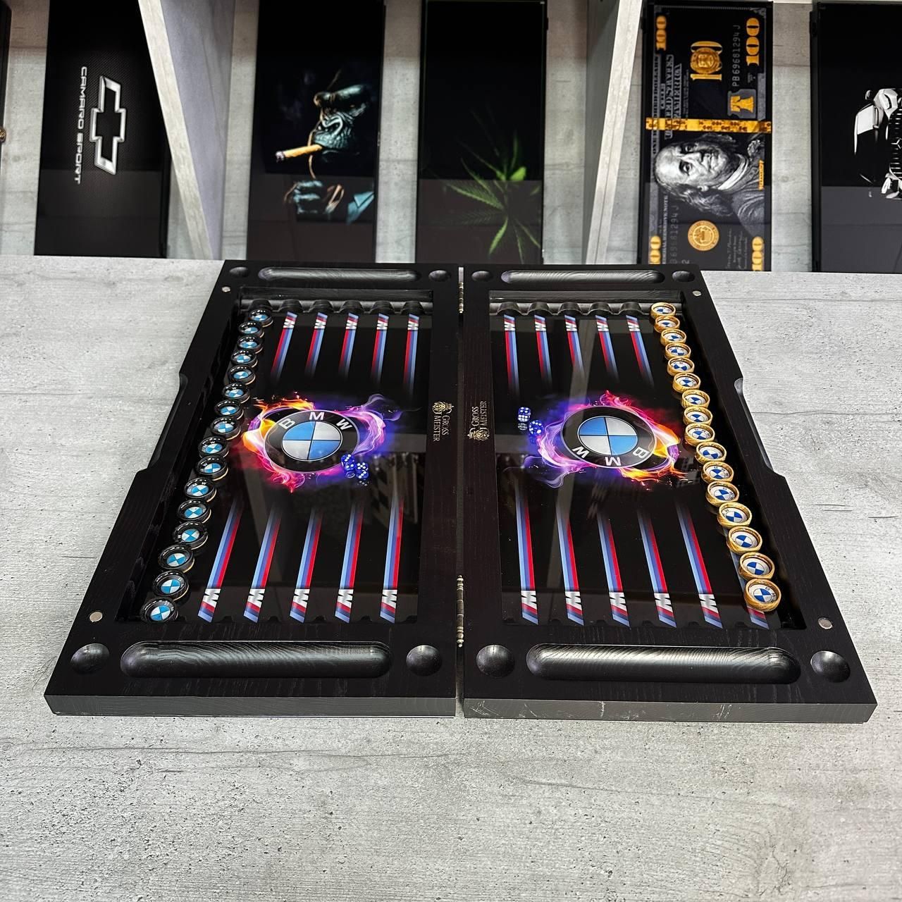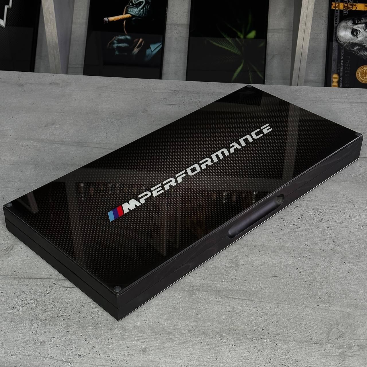 Нарди дерев'яні зі склом "BMW", 64×30×6см, арт. 270015 Ці нарди — не просто настільна гра, а справжній витвір мистецтва, що поєднує класичний дизайн та сучасні матеріали. Виконані з дерева, зі скляним ігровим полем, нарди підходять для тих, хто цінує естетику, стиль та якість. Унікальний малюнок, нанесений за допомогою УФ-друку, додає виробу особливого шарму, а можливість персоналізації дозволяє зробити його абсолютно індивідуальним. Це ідеальний подарунок для близьких або елегантний елемент декору для вашого інтер'єру. Особливості товару: Матеріали преміум-класу: каркас виготовлений з високоякісного дерева, а ігрове поле — зі скла, що надає гри особливої витонченості. Унікальний дизайн: малюнок на поверхні наноситься за допомогою УФ-друку, що гарантує його стійкість до зношування та вигорання. Можливість персоналізації: ви можете додати будь-який малюнок на зовнішню або внутрішню поверхню нард, зробивши цей виріб унікальним. Фішки зі смоли: дерев'яні фішки залиті смолою, що додає їм міцності та збереження естетики на довгі роки. Ідеальний подарунок: нарди стануть чудовим подарунком на будь-яке свято або чудовим доповненням до інтер'єру офісу чи будинку. Вага та розмір: цей набір легко транспортувати завдяки компактним розмірам, а його вага свідчить про надійність і якість використаних матеріалів. Ці нарди — це не тільки настільна гра, але й предмет розкоші, який вражає з першого погляду. Гладке скляне ігрове поле забезпечує комфорт під час гри, а міцні дерев'яні фішки зі смолою створюють приємний тактильний досвід. Завдяки можливості нанесення індивідуального дизайну, цей набір може стати унікальним подарунком або частиною колекції настільних ігор. Технічні характеристики: Параметр Опис Розмір 60х30х6 см Матеріал каркасу Дерево Матеріал ігрового поля Скло Фішки Дерево, залиті смолою Тип друку УФ-друк Вага 8,9 кг Можливість персоналізації Так Не втрачайте можливість придбати ексклюзивний набір нард з можливістю персоналізації! Замовляйте прямо зараз і подаруйте собі або близьким справжній витвір мистецтва, який даруватиме радість та естетичне задоволення на довгі роки. Залишилися питання? Телефонуйте нам. Наші менеджери завжди на зв'язку і готові відповісти на всі ваші запитання Адреса: Україна м. Стрий, вул. Заньковецької, буд. 2, другий поверх