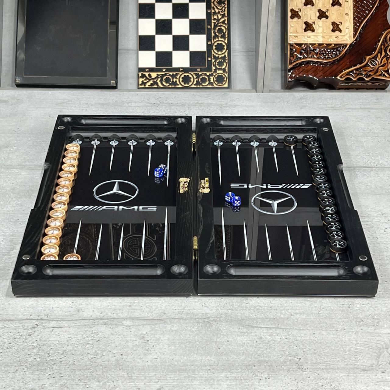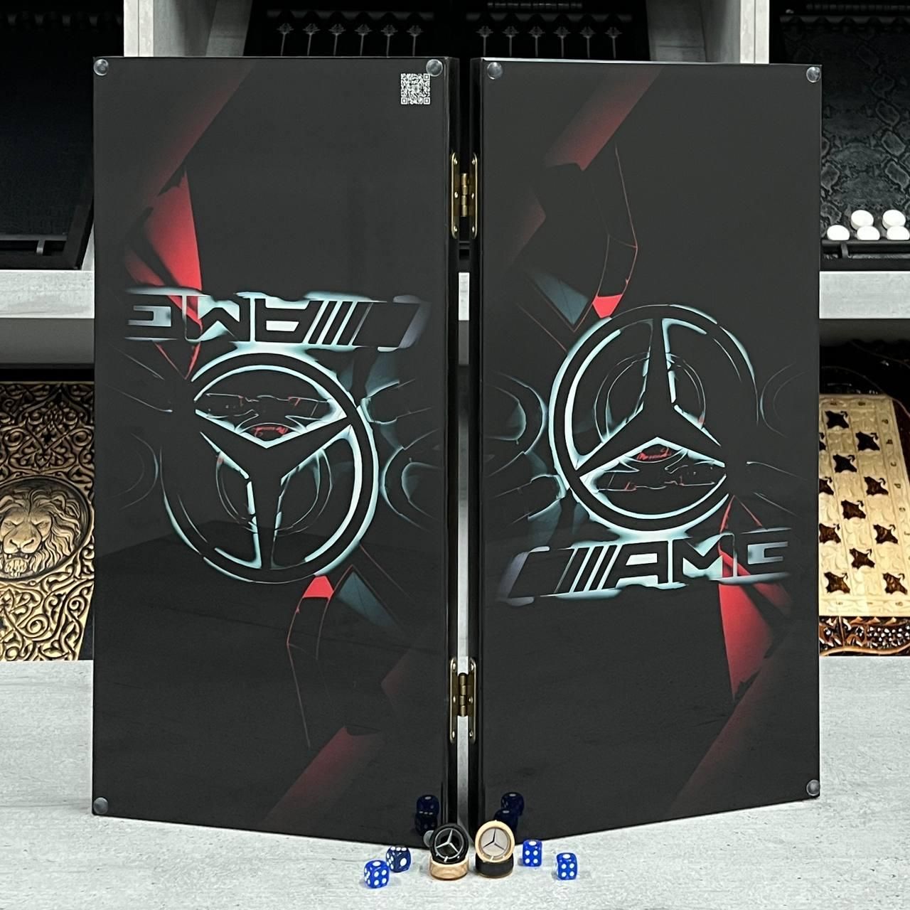 Нарди зі скла та дерава з логотипом Mercedes AMG 50х25см
