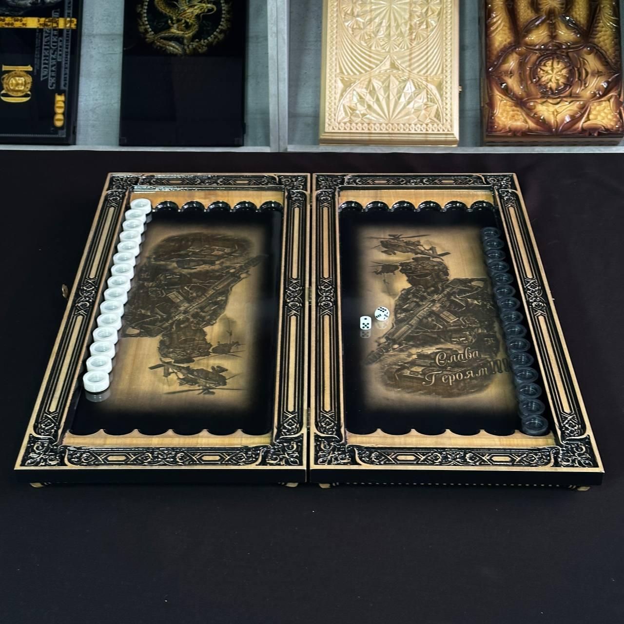 Дерев'яні нарди ручної роботи Візерунок 50×23смДерев'яні нарди ручної роботи Візерунок 50×23см
