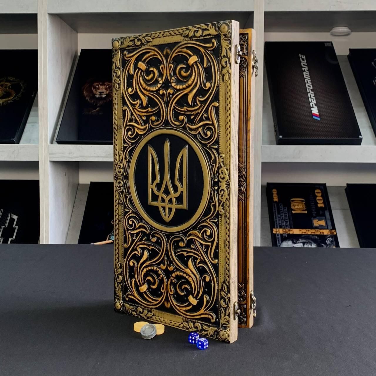 Дерев'яні нарди ручної роботи Тризуб 46×23см