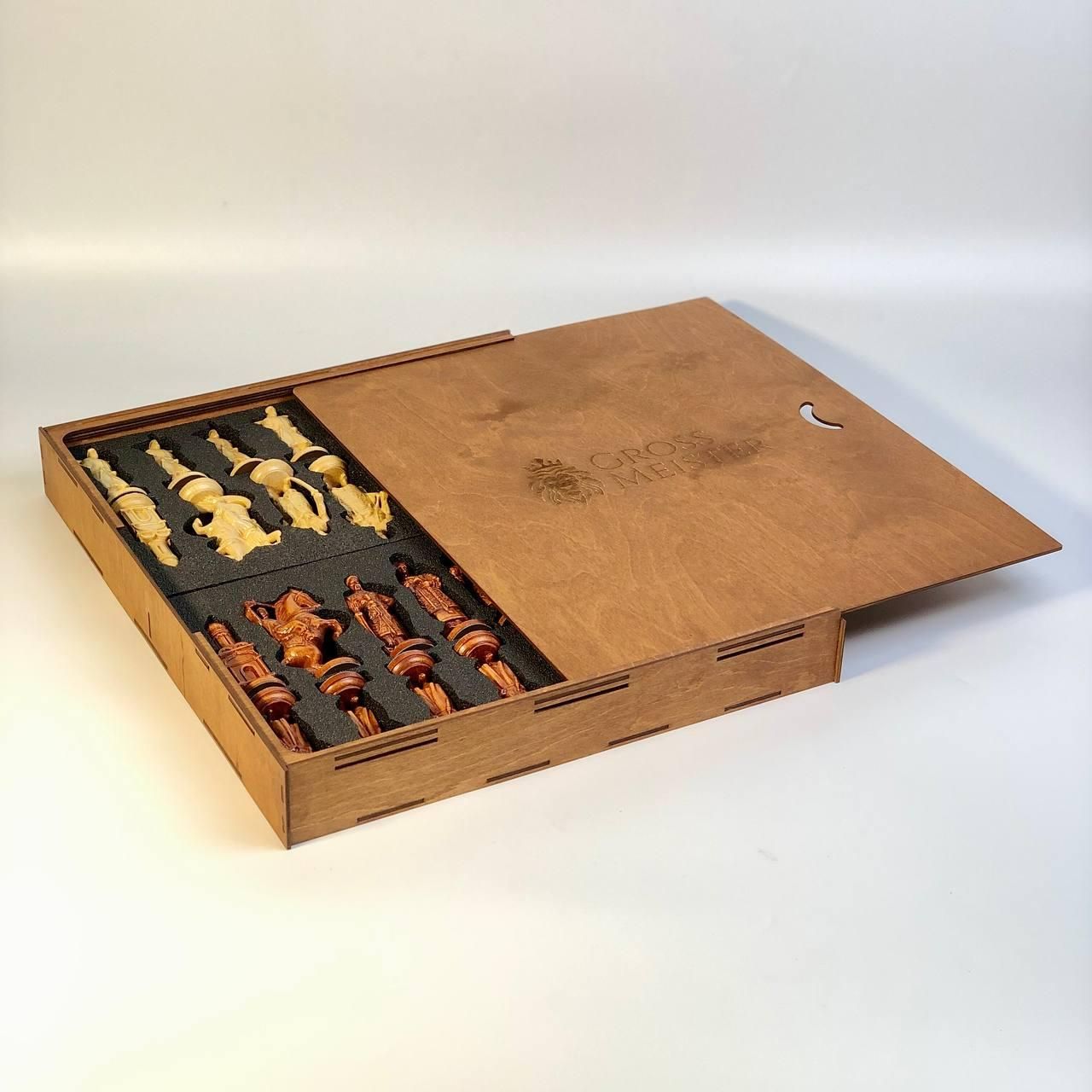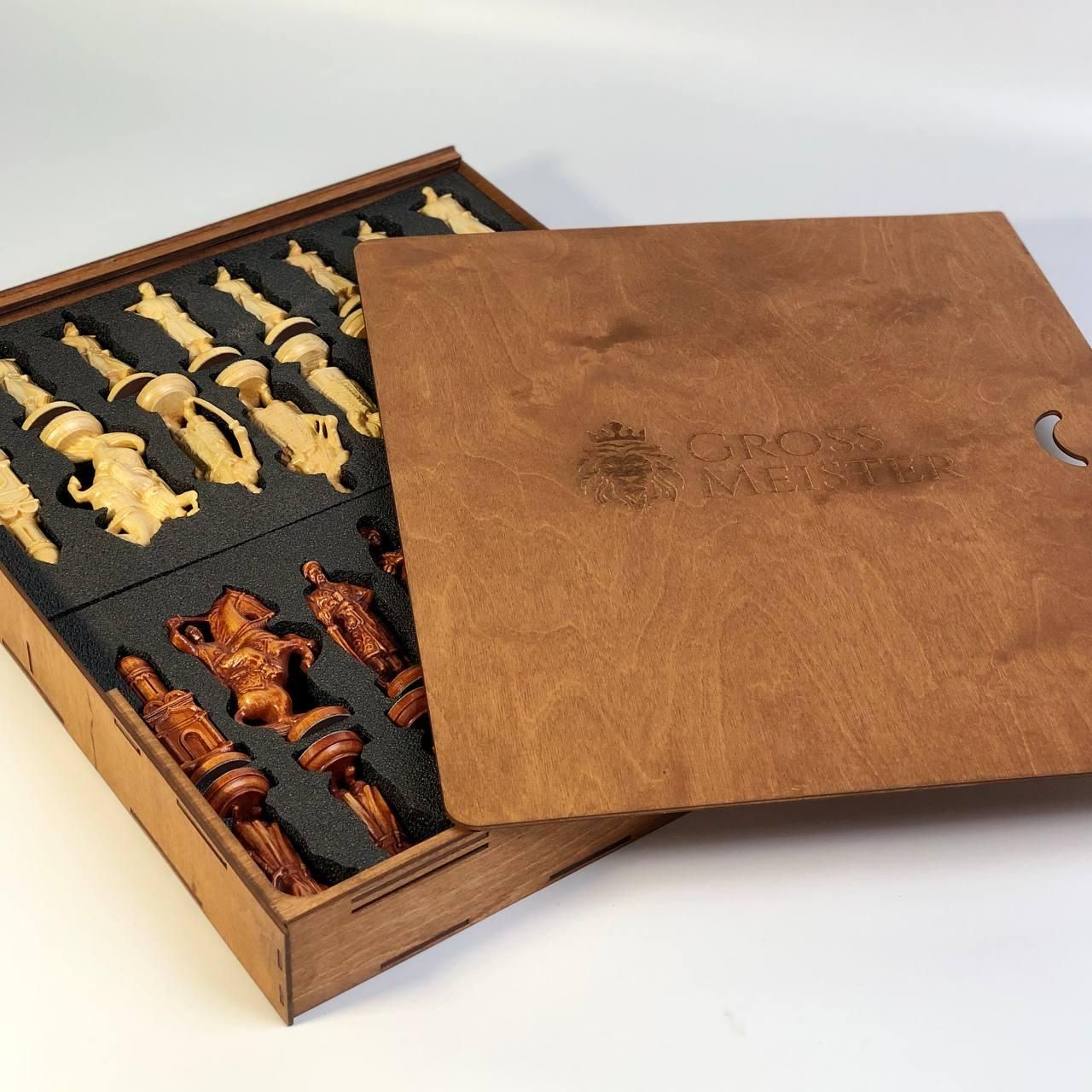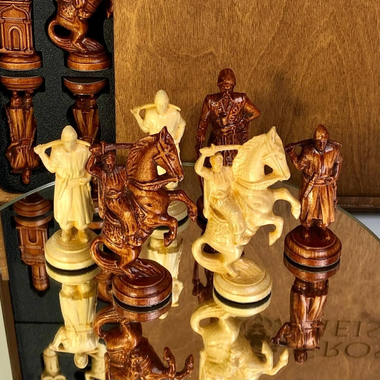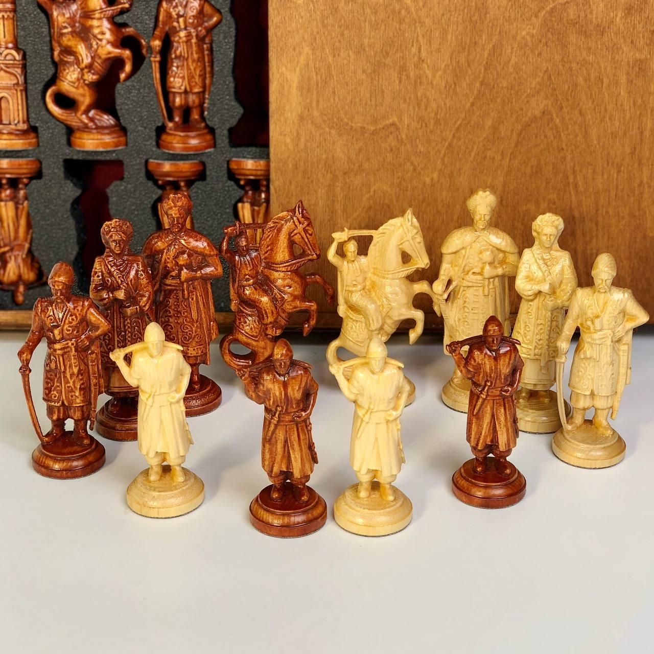 Стилізовані шахові фігури з дерева "Гетьманське військо" в подарунковій коробці Цей комплект шахових фігур з дерева "Гетьманське військо" – це не просто набір для гри, а справжній витвір мистецтва. Виготовлені з високоякісного дерева, ці шахові фігури відрізняються своєю унікальністю та деталізованістю. Кожна фігура стилізована під українських гетьманів та воїнів, що додає гри особливого шарму та історичної атмосфери. Комплект поставляється в елегантній коробці для зберігання, що робить його ідеальним подарунком для цінителів шахів та колекціонерів. Особливості товару Висока якість матеріалів: Виготовлені з натурального дерева, шахові фігури відрізняються своєю міцністю та довговічністю. Унікальний дизайн: Кожна фігура стилізована під українських гетьманів та воїнів, що робить гру ще більш захопливою та цікавою. Подарункова упаковка: Набір постачається в елегантній коробці для зберігання, що робить його ідеальним подарунком. Зручність зберігання: Коробка для зберігання забезпечує збереження фігур та зручність їх транспортування. Ідеальний подарунок: Комплект шахових фігур "Гетьманське військо" стане чудовим подарунком для поціновувачів шахів та історії України. Цей комплект шахових фігур – це чудовий вибір для тих, хто цінує не тільки гру, але й мистецтво. Використання високоякісного дерева забезпечує довговічність та приємні тактильні відчуття під час гри. Стилізовані під гетьманське військо, фігури додають гри особливого шарму та дозволяють зануритися в історичну атмосферу. Елегантна коробка для зберігання не тільки забезпечує збереження фігур, але й робить цей набір відмінним подарунком для близьких та друзів. Технічні характеристики Матеріал: Натуральне дерево Дизайн: Стилізовані під українських гетьманів та воїнів Розміри фігур: Висота короля – 12,5 см, висота пішака – 10 см Вага комплекту: 2,5 кг Упаковка: Подарункова коробка для зберігання Замовляйте комплект шахових фігур "Гетьманське військо" вже зараз і пориньте у світ захоплюючої гри та української історії! Подаруйте собі та своїм близьким унікальний набір, який стане прикрасою будь-якої колекції. Не зупиняйтеся на досягнутому! На нашому сайті представлені , які зможуть задовольнити будь-які ваші смаки та уподобання. : Класична гра, яка вимагає стратегії та везіння. : Інтелектуальна гра, яка кине виклик вашому розуму. : Це класична гра, яка протягом століть розважає людей різного віку. Аксесуари для настільних ігор: фішки, кубики, сумки та багато іншого, що зробить ваші ігри ще більш комфортними та приємними. Загляньте в наш і знайдіть ту гру, яка стане вашим новим улюбленим дозвіллям! Залишилися питання? Телефонуйте нам. Наші менеджери завжди на зв'язку і готові відповісти на всі ваші запитання Адреса: Україна м. Стрий, вул. Заньковецької, буд. 2, другий поверх