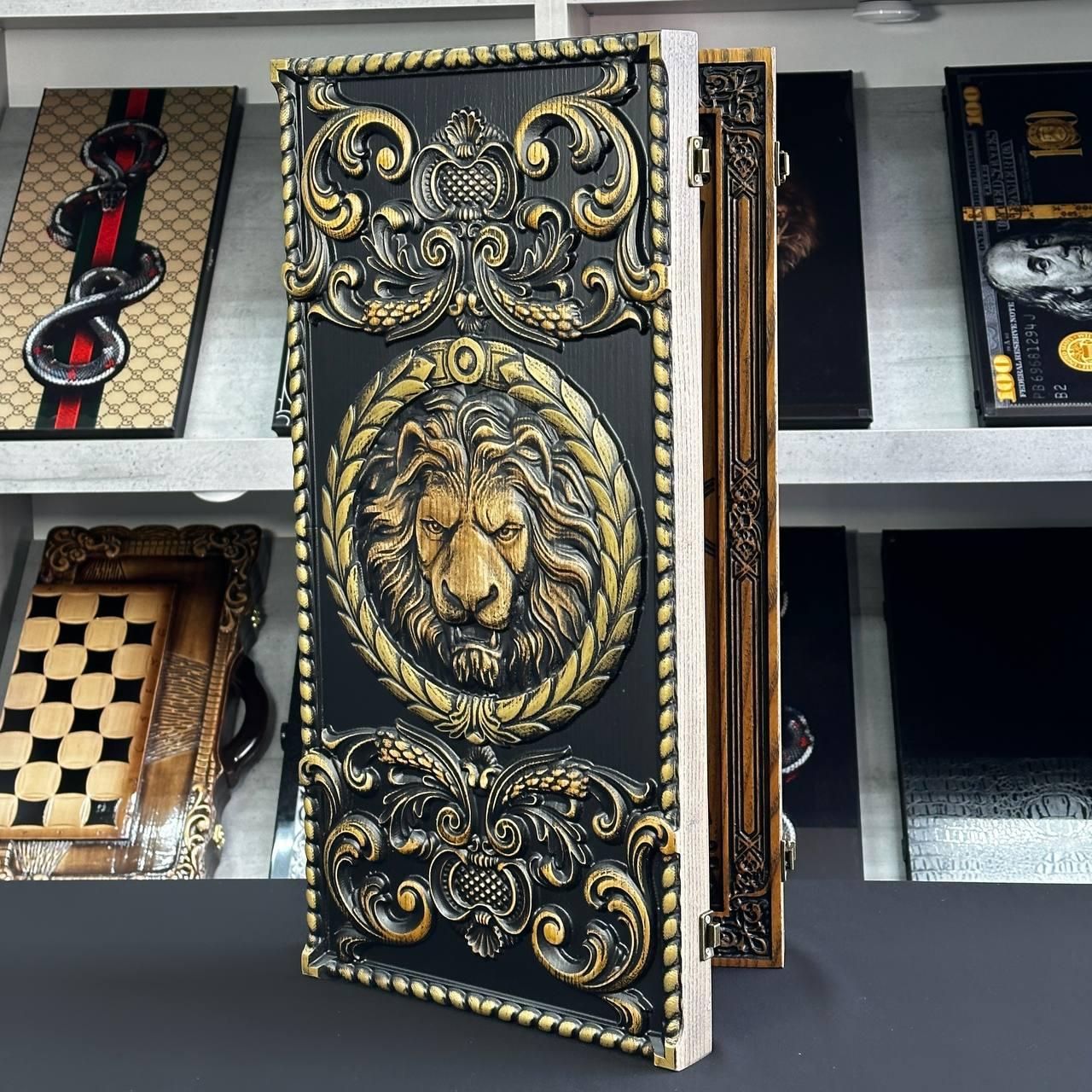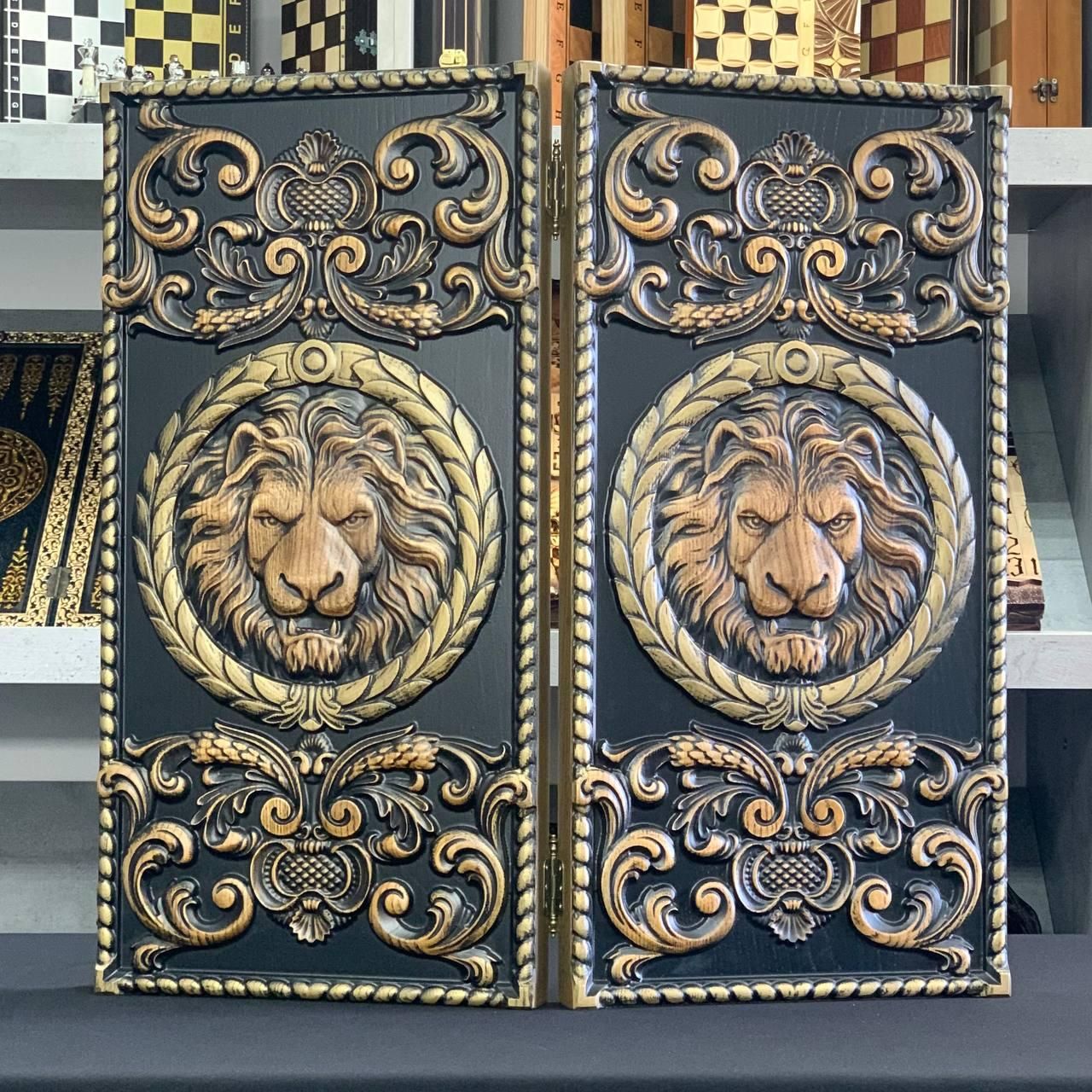 Нарди дерев'яні Лев 64×32×4см ручне різьблення