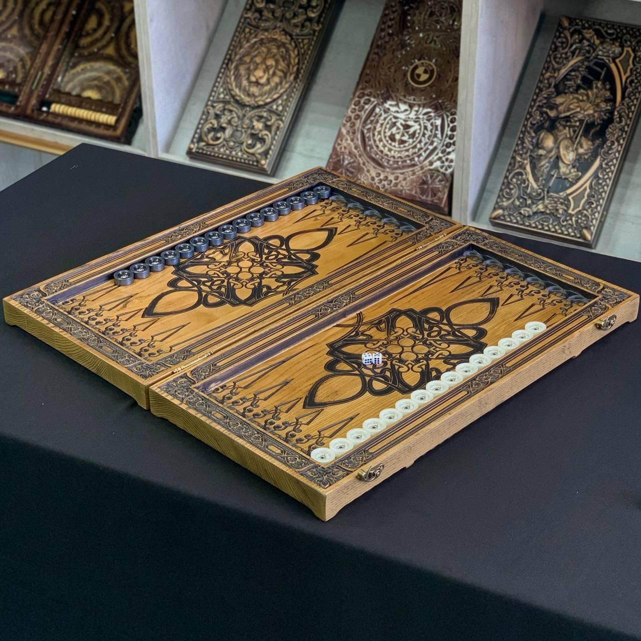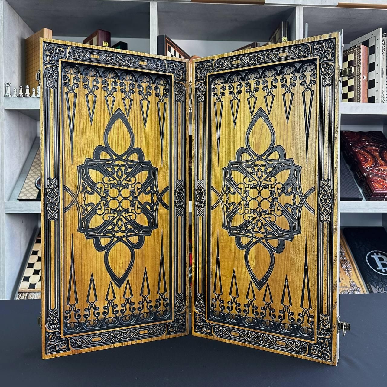 Нарди «Лев — переможець»: Втілення сили, влади та лідерства Шукаєте подарунок, який скаже про статус і силу волі краще за будь-які слова? Нарди ручної роботи «Лев — переможець» — це монументальний виріб, створений для справжніх лідерів. Завдяки значній вазі у 6,750 кг, цей набір відчувається в руках як справжній артефакт, що випромінює надійність та солідність. Чому цей набір вартий вашої уваги: Величний дизайн: Зовнішня панель прикрашена глибоким різьбленням по дереву із зображенням Лева — символу перемоги, мудрості та незламності. Майстерність випалювання: Внутрішнє оформлення виконане у техніці художнього випалювання, що створює неповторний контраст із натуральною текстурою дерева. Масив та міцність: Виготовлені з твердих порід дерева, ці нарди мають ідеальну геометрію та довговічність. Це річ, яка буде служити поколіннями. Ексклюзивні фішки: Набір укомплектований важкими фішками зі смоли, які за тактильними відчуттями нагадують полірований камінь. Для кого цей подарунок? Це ідеальний презент для чоловіка, який звик перемагати: керівника, бізнес-партнера чи голови родини. Дарувати такий набір — це визнання високого статусу отримувача. Технічні характеристики (арт. 190138): Матеріал: Натуральне дерево (масив). Розмір у складеному вигляді: 64×32×6 см. Розмір ігрового поля: 60×56 см (максимальний комфорт гри). Вага: 6,750 кг (екстра-важкі, преміум клас). Фішки: Смола (23 мм). Зари (кубики): 12 мм. ???? Рекомендуємо додати до замовлення: Щоб ваш подарунок був завершеним, а користування нардами — максимально комфортним, зверніть увагу на: : Для безпечного зберігання та зручного транспортування такого масивного набору. ): Виконаних з більярдної кулі або екзотичних матеріалів. ???? Замовте символ вашої перемоги прямо зараз: +380732670070 Залишилися питання? Телефонуйте нам. Наші менеджери завжди на зв'язку і готові відповісти на всі ваші запитання Адреса: Україна м. Стрий, вул. Заньковецької, буд. 2, другий поверх