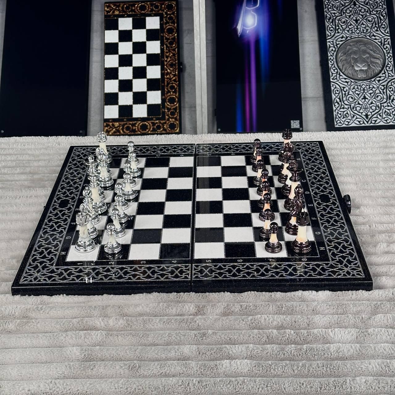 Преміальні шахи з чорного акрилового каменю зі срібним антикварним оздобленням Ідеальний подарунок та розкішний аксесуар інтер’єру Витончені шахи з чорного акрилового каменю зі срібним наповненням антикварною фарбою — це не просто настільна гра, а справжній витвір мистецтва. Вони поєднують в собі класику, статус і глибоку символіку. Всередині — функціональне ігрове поле для нард з рельєфним левом, залитим прозорою ювелірною смолою для максимальної естетики та захисту зображення. Ця модель — ідеальний вибір для тих, хто цінує якість, стиль і індивідуальність. Розміри 60×30×4 см роблять її зручною у користуванні, а дизайн — привабливим як для гри вдома, так і як акцент у кафе, шоурумі або офісі. Особливості товару Шахи ручної роботи з преміум-матеріалів Акриловий камінь з антикварною обробкою Двостороннє використання — шахи + нарди Рельєфне зображення лева — символ сили та гідності Заливка ювелірною смолою — захист і естетика Кастомізація під замовлення — нанесемо будь-яке зображення Статусний подарунок або елемент інтер’єру Ідеально підходить для подарунка чоловікові, татові, другу або партнеру Фігури виготовлені з міцного акрилу — стійкого до подряпин та деформацій. Фішки для гри в нарди також виконані з акрилу, із зображенням лева — що надає комплекту завершеного вигляду. За бажанням клієнта, ми кастомізуємо фігури, фішки або саму основу — додамо логотип, ім’я або інший унікальний візуальний елемент. Технічні характеристики Розміри: 60×30×4 см Матеріал: акриловий камінь, ювелірна смола Колір: чорний з антикварним сріблом Фігури: акрил Фішки: акриловий камінь, з малюнком лева Тип гри: шахи + нарди Кастомізація: під запит Подаруйте стиль, інтелект і статус в одній грі! ???? Замовляйте просто зараз — ???? Кастомізуємо шахи під вас — ідеально для подарунка! Залишилися питання? Телефонуйте нам. Наші менеджери завжди на зв'язку і готові відповісти на всі ваші запитання Адреса: Україна м. Стрий, вул. Заньковецької, буд. 2, другий поверх